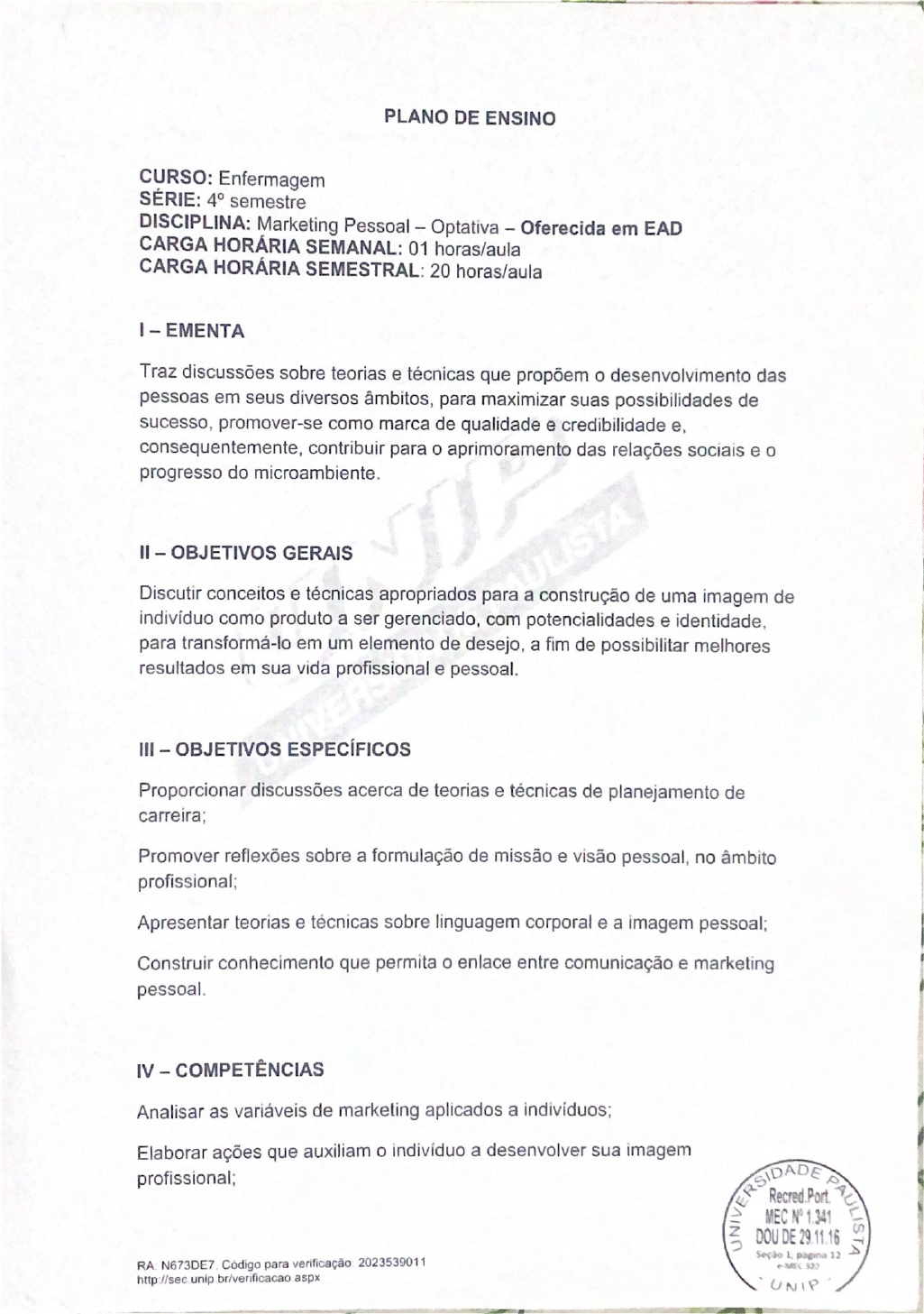 Plano de Ensino de Bioquímica para Estética e Cosmética