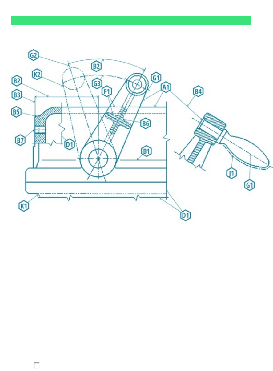 Conteúdo do exercício 1. Pergunta 1 0,1/0,1 Observe a figura a seguir: Fonte: ASSOCIAÇÃO BRASILEIRA DE NORMAS TÉCNICAS. NBR 8403: Aplicação de linhas em desenhos – Tipos de linhas - Larguras das linhas. Rio de Janeiro, 1984. p 3. Considerando a figura apresentada e o conteúdo estudado sobre linhas, analise as afirmativas a seguir. I. De acordo com a norma NBR 8403, a linha A1 deve ser utilizada para arestas visíveis. II. De acordo com a norma NBR 8403, a linha B7 deve ser utilizada para linhas de centro curtas. III. De acordo com a norma NBR 8403, a linha D1 deve ser utilizada para linhas de cotas. IV. De acordo com a norma NBR 8403, a linha B5 deve ser utilizada para hachuras. Está correto o que se afirma em: Ocultar opções de resposta 1. V, F, F, V. 2. F, F, V, V. 3. V, V, F, V. Resposta correta 4. V, V, V, F. 5. F, V, F, V. 2. Pergunta 2 0,1/0,1 A projeção ortográfica é o método de representar a forma exata de um objeto por meio de duas ou mais projeções do objeto sobre planos que, em geral, estão em ângulo reto entre si baixando-se perpendiculares do objeto ao plano. O conjunto das vistas sobre esses planos descreve totalmente o objeto. Considerando essas informações e o conteúdo estudado sobre a projeção ortográfica, analise as afirmativas a seguir e assinale V para a(s) verdadeira(s) e F para a(s) falsa(s). I. ( ) Na representação de uma peça, o número mínimo de vista para a ilustração de um objeto é uma vista. II. ( ) A vista mais importante de uma peça deve ser utilizada como vista frontal, e corresponde à vista que representa a peça na sua posição de utilização. III. ( ) É vedado o uso de vistas fora da posição determinada pelo método, exceto para a vista principal, que pode ser localizada em outras posições. IV. ( ) É recomendado o emprego de grande número de linhas tracejadas, de modo a minimizar o número necessário de vistas. Agora, assinale a alternativa que apresenta a sequência correta: Ocultar opções de resposta 1. V, F, V, F. 2. F, V, F, V. 3. F, F, V, V. 4. F, V, V, F. 5. V, V, F, F. Resposta correta 3. Pergunta 3 0,1/0,1 Um ponto é uma figura geométrica mais simples, que não possui dimensão, ou seja, não possui comprimento, nem largura, nem altura. Um ponto, em um sistema de projeção, pode ser facilmente localizado através de suas três coordenadas: abscissas, cotas e afastamento. Considerando essas informações e o conteúdo estudado sobre sistemas de representação, pode-se afirmar que nos planos de: Ocultar opções de resposta 1. projeção, a distância entre a cota e a extremidade é chamada de linha de terra. 2. projeção, as cotas e as abscissas são, respectivamente, denominadas por afastamentos e épuras. 3. projeção, as alturas são denominadas afastamentos e as distância, abscissa. 4. projeção, as alturas são denominadas cotas e, no plano horizontal de projeção, as distâncias são denominadas afastamentos. Resposta correta 5. projeção, as distâncias são denominadas abscissas, enquanto as alturas são denominadas afastamentos. 4. Pergunta 4 0,1/0,1 Leia o exceto a seguir: “O objeto é representado de tal maneira que permite demonstrar três de suas faces, que correspondem geralmente à frontal, lateral esquerda e superior. As três faces são ligadas entre si, em um só desenho, montadas sobre três eixos, perpendiculares entre si, que servem de suporte às três dimensões (altura, largura e comprimento) e são colocados obliquamente em relação ao plano de projeção.” Fonte: MICELI, M.; FERREIRA, P. Desenho Técnico Básico. Rio de Janeiro: Editora Imperial, 2009. p. 61. Considerando essas informações e o conteúdo estudado sobre perspectiva isométrica, analise as afirmativas a seguir e assinale V para a(s) verdadeira(s) e F para a(s) falsa(s). I. ( ) Na perspectiva isométrica, o observador se encontra a uma distância infinita do objeto e as linhas projetantes convergem para um único ponto. II. ( ) A perspectiva isométrica é a que menos deforma, quando comparada a outras perspectivas, pois mantém a mesma medida de largura, altura e profundidade dos objetos. III. ( ) Na perspectiva isométrica, os eixos isométricos formam um ângulo de 120º entre si. IV. ( ) A perspectiva isométrica, assim como a dimétrica e a trimétrica, é um tipo de perspectiva cônica ou exata. Agora, assinale a alternativa que apresenta a sequência correta: Ocultar opções de resposta 1. F, V, V, F. Resposta correta 2. V, F, V, F. 3. V, F, F, V. 4. F, V, F, V. 5. F, V, V, V. 5. Pergunta 5 0,1/0,1 A norma da ABNT NBR 8403 – Aplicação de linhas em desenho técnicos fixa os tipos de linhas e suas aplicações, escalonamentos, espaçamento entre linhas, larguras, cores, terminação das linhas de chamada e ordem de prioridade de linhas coincidentes. Fonte: ASSOCIAÇÃO BRASILEIRA DE NORMAS TÉCNICAS. NBR 8403: Aplicação de linhas em desenhos – Tipos de linhas - Larguras das linhas. Rio de Janeiro, 1984. p. 2. Considerando essas informações e o conteúdo estudado, pode-se afirmar que a ordem correta de prioridade das linhas, em caso de ocorrência de duas ou mais linhas de diferentes tipos, é: Ocultar opções de resposta 1. linhas de centro; linhas de cota e auxiliar; arestas e contornos não visíveis; arestas e contornos visíveis; linhas de centro de gravidade; superfícies de cortes e seções. 2. arestas e contornos visíveis; linhas de centro; superfícies de cortes e seções; linhas de cota e auxiliar; arestas e contornos não visíveis; linhas de centro de gravidade. 3. arestas e contornos visíveis; arestas e contornos não visíveis; superfícies de cortes e seções; linhas de centro; linhas de centro de gravidade; linhas de cota e auxiliar; Resposta correta 4. linhas de centro; arestas e contornos não visíveis; linhas de cota e auxiliar; linhas de centro de gravidade; superfícies de cortes e seções, arestas e contornos visíveis. 5. arestas e contornos não vi