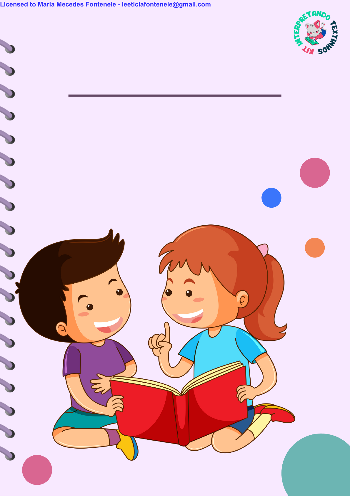 CADERNO 1 ATIVIDADES PARA REFORÇAR A INTERPRETAÇÃO DE TEXTOS Licensed to Maria Mecedes Fontenele - leeticiafontenele@gmail.com NÍVEL 1 Caderno de Leitura e Interpretação de Textos Ensino Fundamental EDITORA GOCLASS ARQUIVO COM PROTEÇÃO CONTRA COMPARTILHAMENTO ILEGAL. A LEI 9.610/98 DE PROTEÇÃO DOS DIREITOS AUTORAIS RESERVA ESTE ARQUIVO PARA UTILIZAÇÃO APENAS PESSOAL. Licensed to Maria Mecedes Fontenele - leeticiafontenele@gmail.com AVISO Arquivo com rastreio anti-compartilhamento! Todo o conteúdo deste arquivo pertence única e exclusivamente ao Grupo Medsi (Instituição Goclass e Camila Medsi). Não compartilhe este material de forma online ou de forma offline (impressa) sem a autorização explícita do produtor. Não coloque em drives ou envie este arquivo via e-mail para terceiros. Arquivos com rastreamento anti-compartilhamento. Sujeito a responder judicialmente por distribuição ilegal de conteúdo com propriedade intelectual privada, Lei 9.279. Utilização: Impressão para uso pessoal (filhos, sobrinhos ou parentes): Utilize à vontade! Impressão para utilização com alunos: Pode utilizar sem fazer alterações nas páginas. Não é permitido revender para alunos. Envio para impressão em gráficas: Permitido a impressão de 1 cópia por vez de cada atividade para utilização pessoal (não é permitido comercialização). Envio para impressão em terceiros (ex: Um colega que tem impressora): Poderá enviar para impressão pessoal, sem comercialização ou distribuição legal. Comercialização ou distribuição para utilização de terceiros: NÃO É PERMITIDO! NÃO COMERCIALIZE NENHUMA PARTE DESTE CONTEÚDO OU DISTRIBUA PARA UTILIZAÇÃO DE TERCEIROS. Licensed to Maria Mecedes Fontenele - leeticiafontenele@gmail.com TADEU E ELIANA VÃO PARA A ESCOLA. DOLI VÊ OS MENINOS E LATE. ELA QUER IR COM OS MENINOS À AULA. TADEU DIZ: - DOLI, CÃES NÃO VÃO À ESCOLA. ELIANA FICOU COM PENA, POR ISSO PEGA A SUA CADELA E A LEVA PARA DENTRO DE CASA. DOLI SOBE NA JANELA E FICA LÁ ATÉ OS MENINOS VOLTAREM DA ESCOLA. ATIVIDADE 1 NOME: _______________________________________________________ DATA: __/__/_____ COMO ESTOU ME SENTINDO? 1 1 - LEIA O TEXTO: GRAÇA BOQUET 2) ESCREVA UM TÍTULO PARA A HISTÓRIA QUE VOCÊ LEU. Licensed to Maria Mecedes Fontenele - leeticiafontenele@gmail.com ATIVIDADE 2 NOME: _______________________________________________________ DATA: __/__/_____ 2 1) O QUE AS CRIANÇAS ESTÃO FAZENDO NO PARQUE? 2) ESCOLHA UM NOME PARA AS CRIANÇAS E PARA O CACHORRO: OBSERVE A CENA E RESPONDA AS PERGUNTAS: COMO ESTOU ME SENTINDO? Licensed to Maria Mecedes Fontenele - leeticiafontenele@gmail.com O MACACO ESTAVA BRINCANDO COM A BOLA. A BOLA BATEU NO PÉ MACACO E CAIU NO MATO. O MACACO PULOU E DISSE: - EU PEGO VOCÊ, BOLA MALUCA! O MACACO DEU UM PETELECO NA BOLA. A BOLA CAIU NA CAUDA DO GATO E ROLOU DE NOVO PARA O MATO. ATIVIDADE 3 NOME: _______________________________________________________ DATA: __/__/_____ 3 A BOLA MALUCA A) A BOLA BATEU NO PÉ DO: B) O QUE O MACACO FEZ? C) A BOLA ROLOU DE NOVO PARA O: GATO RATO MACACO PEGOU A BOLA GUARDOU A BOLA DEU UM PETELECO NA BOLA LAGO MATO BOSQUE COMO ESTOU ME SENTINDO? Licensed to Maria Mecedes Fontenele - leeticiafontenele@gmail.com 3 ATIVIDADE 4 NOME: _______________________________________________________ DATA: __/__/_____ 4 A ABELHA LILI A) QUAL É O TÍTULO DO TEXTO? B) LILI É UMA? C) ONDE LILI VOA? LILI É UMA LINDA ABELHINHA. LILI VOA, VOA PELO JARDIM. ELA COLHE O NÉCTAR DAS FLORES. LILI LEVA O NÉCTAR PARA A COLMEIA. SUAS IRMÃS TRANSFORMAM O NÉCTAR EM UM DELICIOSO MEL. LILI É UMA ABELHA MUITO TRABALHADEIRA. KÁTIA TEIXEIRA LAGARTA BORBOLETA ABELHA CIGARRA COMO ESTOU ME SENTINDO? Licensed to Maria Mecedes Fontenele - leeticiafontenele@gmail.com 3 O SAPO SABINO ERA SABIDO E SAPECA. PULAVA NO LAGO E TOCAVA RABECA. ATIVIDADE 5 NOME: _______________________________________________________ DATA: __/__/_____ 5 O SAPO SABINO LEIA O TEXTO E: C) COMPLETE O TEXTO COM AS PALAVRAS QUE FALTAM: O _________________ SABINO A) CIRCULE AS PALAVRAS QUE RIMAM. B) CIRCULE AS PALAVRAS INICIADAS COM S. ERA SABIDO E SAPECA. PULAVA NO _________________ E TOCAVA __________________ COMO ESTOU ME SENTINDO? Licensed to Maria Mecedes Fontenele - leeticiafontenele@gmail.com 3 O GATO, O RATO E O PATO. COM A BOLA NA BEIRA DO RIO CHAMARAM O BOTO RENATO COM UM SONORO ASSOBIO. ATIVIDADE 6 NOME: _______________________________________________________ DATA: __/__/_____ 6 LEIA O TEXTO: A) CIRCULE OS ANIMAIS QUE APARECEM NO TEXTO: NA BEIRA DO LAGO ISABEL CRISTINA S. SOARES B) ONDE ESTAVAM OS ANIMAIS? NA BEIRA DO RIO NA BEIRA DA ESTRADA C) QUAL É O NOME DO BOTO? COMO ESTOU ME SENTINDO? Licensed to Maria Mecedes Fontenele - leeticiafontenele@gmail.com 3 FOFO É O CÃO FIFO É O PAPAGAIO, O PAPAGAIO BICOU O CÃO. FOFO LATIU: AU... AU... AU... FIFO VOOU E REPETIU: AU... AU... AU... ATIVIDADE 7 NOME: _______________________________________________________ DATA: __/__/_____ 7 O CÃO E O PAPAGAIO A) ESCREVA O NOME DOS PERSONAGENS: ISABEL CRISTINA S. SOARES CÃO: PAPAGAIO: B) O QUE FEZ O PAPAGAIO? ELE BEIJOU O FOFO ELE BICOU O FOFO C) O QUE FOFO FEZ? FOFO LATIU FOFO RIU COMO ESTOU ME SENTINDO? Licensed to Maria Mecedes Fontenele - leeticiafontenele@gmail.com 3 BETO TEM UMA BOLA. BETO ADORA JOGAR COM SEUS AMIGOS. BETO CHUTA A BOLA. A BOLA ROLA E VAI DIRETO PARA O GOL. ATIVIDADE 8 NOME: _______________________________________________________ DATA: __/__/_____ 8 A BOLA DE BETO 1) QUAL É O TÍTULO DO TEXTO? 2) O QUE BETO TEM? KÁTIA TEIXEIRA 3) O QUE BETO ADORA FAZER? COMO ESTOU ME SENTINDO? Licensed to Maria Mecedes Fontenele - leeticiafontenele@gmail.com 3 3) TATAU VIVE NA CASA DE: TATAU É UM RATO MUITO LEVADO. ELE VIVE NA CASA DA MALU. TATAU VIVE NO BURACO DA PAREDE, E QUANDO MALU DORME, TATAU SAI PELA CASA. TATAU RÓI TUDO O QUE ENCONTRA PELO CAMINHO. ETA, RATO LEVADO! ATIVIDADE 9 NOME: _______________________________________________________ DATA: __/__/__
