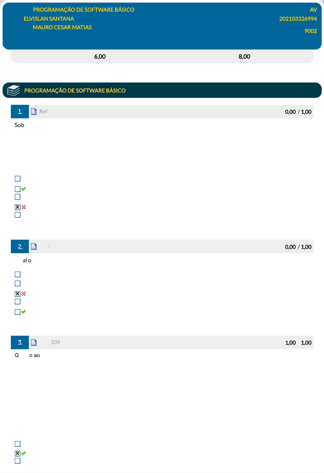 Avaliação: 6,00 pts Nota SIA: 8,00 pts