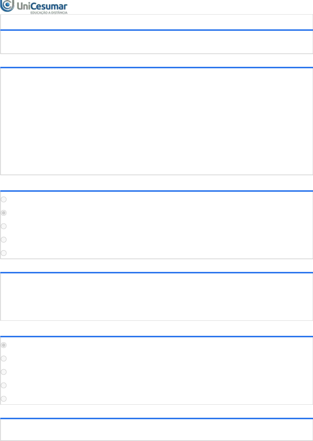 PROJETO DE ENSINO - AE 1 - A literatura como ferramenta de aquisição da leitura - 51/2023 Período:27/02/2023 08:00 a 28/04/2023 23:59 (Horário de Brasília) Status:ABERTO Gabarito:Gabarito será liberado no dia 29/04/2023 00:00 (Horário de Brasília) 1ª QUESTÃO Sabe-se que o ato de contar histórias para as crianças é muito importante. Por isso, é evidente que o professor, ao planejar a sua aula envolvendo a contação de história, deve ter alguns cuidados. Sobre esse assunto, considere (V) para as afirmativas Verdadeiras e (F) para as Falsas: I. É importante organizar um ambiente para os momentos de leitura. II. O ambiente e o contato com os livros são importantes, contudo, o professor não deve se preocupar com a faixa etária da criança em relação a escolha do livro. III. Os livros devem estar ao alcance das crianças para que possam manusear, folhear, tocar e sentir. IV. É importante que o professor leia antecipadamente a história para que se adapte o vocabulário, caso alguma palavra seja desconhecida pela criança. Identifique a sequência correta nas alternativas que seguem: ALTERNATIVAS F, V, V, V. V, F, V, V. V, V, F, V. F, V, V, F. V, V, V, V. 2ª QUESTÃO Utilizar a literatura infantil como uma forma de ensinar, além de ser prazeroso, possibilita o conhecimento de outras realidades, amplia e desenvolve o conhecimento a respeito do mundo e de si mesmo. Dessa forma, para que o aluno crie o hábito e o gosto pela leitura, algumas ações podem ser utilizadas. Sobre esse assunto, analise as afirmações que seguem e assinale a correta. ALTERNATIVAS Contar histórias para crianças se faz necessário desde a educação infantil, na escola. Nas escolas, a utilização da literatura infantil não contribui para despertar o gosto pela leitura. Somente a escola pode proporcionar momentos de leitura para impulsionar o seu apreço. Os professores não precisam gostar de ler para passar aos futuros leitores uma boa imagem da leitura. No ambiente escolar, o professor deve deixar sempre o aluno escolher o livro do seu interesse. 3ª QUESTÃO Sobre a história da literatura infantil, assinale a alternativa que evidencia esse entendimento corretamente: ALTERNATIVAS Os livros destinados para as crianças sempre foram produzidos. As crianças devem ter acesso a todos os livros, independente da sua idade. Somente no século XVIII que houve a preocupação em produzir livros para as crianças. Para os psicólogos, a escolha do livro não interfere no processo ensino e aprendizagem das crianças. Para os estudiosos, não há necessidade de produzir livros destinados às crianças, visto que diminuiria o alcance a elas. 4ª QUESTÃO Sabe-se da importância do professor em oferecer livros aos seus alunos para que se possa despertar o interesse pela leitura objetivando a formação de leitores competentes. Dessa forma, avalie as afirmações que seguem: I. O professor tem o papel fundamental na mediação, pois, ao indicar livros a seus alunos, estará despertando a preferência do seu alunado. II. Para formar leitores competentes, é importante que o professor utilize diferentes práticas de contação de histórias. III. Várias são as práticas de contação de histórias utilizadas pelo professor, pois são atrativas, criativas e dinâmicas e as crianças adoram. IV. As práticas de contação de histórias podem ser utilizadas apenas a partir do Ensino Fundamental, pois os alunos dessa faixa etária não estão preparados para ouvi-las e não apresentam discernimento para compreendê-las. É correto o que se afirma em: ALTERNATIVAS I e III, apenas. I e IV, apenas. II e IV, apenas. I, II e III, apenas. I, II, III e IV. 5ª QUESTÃO Contar histórias é importante para a formação de qualquer criança. Nesse sentido, ela necessita ouvir muitas, pois escutá-las é o início da aprendizagem e a maneira para que ela seja um leitor assíduo e tenha um caminho infinito de descobertas e de compreensão do mundo. De acordo com as contribuições dessa atividade para o desenvolvimento da criança, analise as afirmativas que seguem: I. Desenvolve a aquisição linguística da criança de maneira progressiva, tanto na oralidade quanto na escrita. II. Amplia as possibilidades de aprendizagem e proporciona a interatividade com a história. III. A contação de história deve ser trabalhada para preencher o tempo ocioso da criança. IV. Estimula a imaginação, desenvolve o intelecto e tornam claras as emoções. É correto o que se afirma em: ALTERNATIVAS I e III, apenas. I e IV, apenas. I, II, e IV, apenas. II, III e IV, apenas. I, II, III e IV.