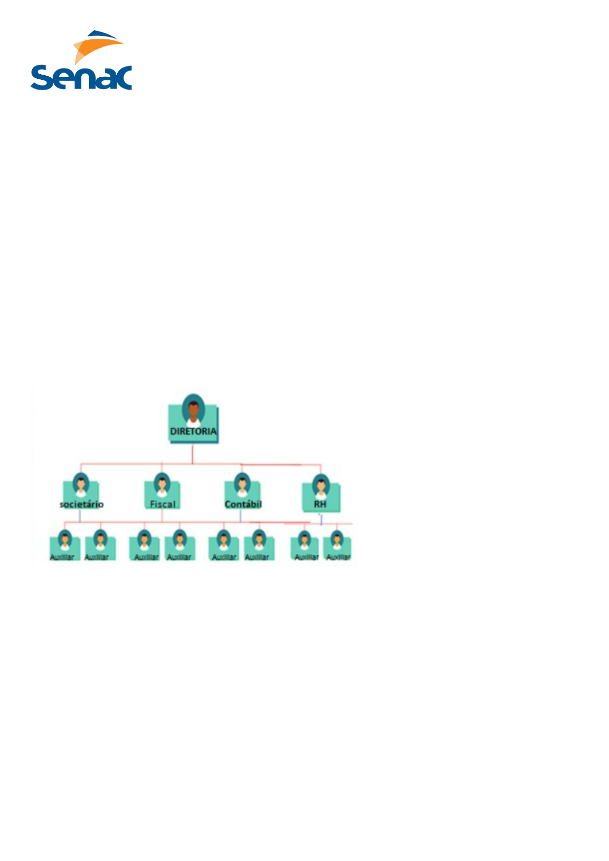 TCO - Unidades Curriculares - Apoiar as atividades relativas aos processos contábeis no planejamento organizacional (660008761C) Atividade 1 Contexto Você foi contratado para atuar como auxiliar técnico em uma empresa de contabilidade. Após os alinhamentos realizados sobre a empresa, nos quais foram apresentados a cultura organizacional e o planejamento estratégico, entre outras informações, seu gestor apresentou também o organograma para que você saiba quais são os setores que fazem parte da organização. Para que você conheça um pouco da documentação que é movimentada no escritório, seu gestor solicitou que você identifique os setores responsáveis (societário, fiscal, contábil e recursos humanos – RH) para cada documento a seguir: - Contrato social - Folha de pagamento - Guia de ICMS (apuração) - Extratos bancários - Atestado médico admissional - Distrato (contrato social de extinção de sociedade) - SPED Fiscal (Sistema Público de Escrituração Digital) - Comprovante de pagamento de títulos e duplicatas a fornecedores - Documentos dos sócios - Rescisões (funcionários) - Extratos de cartões de crédito - Declarações fiscais Atividade Observe o organograma apresentado, identifique o setor responsável por cada um dos documentos citados e preencha a tabela. Setor: Documentos: Societário Contrato Social Societário Documentos dos sócios Societário Distrato Fiscal Guia de ICMS (apuração) Fiscal SPDE Fiscal Fiscal Declarações Fiscais RH Folha de Pagamento Contábil Extratos Bancário Contábil Comprovante de pagamentos de títulos e duplicatas a fornecedores Contábil Extrato de cartão de crédito RH Atestado médico admissional RH Rescisões