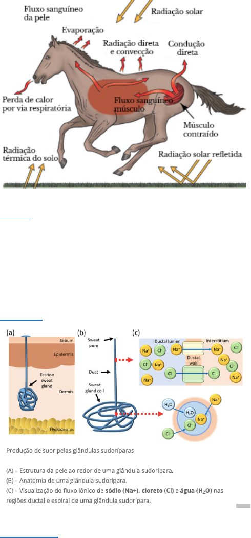 Considerações gerais • Pele e pelos • Manto de revestimento Þ Termorregulação Þ Frio e calor Þ Desidratação – prevenção Þ Contaminações externas – barreira imunológica Camadas da pele • Epiderme – camada mais externa • Derme Þ Artérias, veias, capilares, vasos linfáticos, glândulas e folículo piloso (tecido conjuntivo denso) • Hipoderme Þ Presença do músculo cutâneo • Pelos • Cascos • Glândulas sebáceas, sudoríparas e mamárias Þ Sudoríparas = distribuídas por todo o corpo, alta capacidade de sudorese, sistema de resfriamento Þ Quanto mais condicionado o cavalo, menor a produção de suor Observações de avaliação • Animais com pouca distribuição de melanina = maior predisposição a desenvolver dermatopatias • Animais com mais melanina absorvem mais calor • Quanto mais brilhoso e fino o pelo, mais bem tratado o animal está sendo Anidrose termogênica • Falha no mecanismo de sudorese • Alteração funcional das glândulas sudoríparas • Baixa capacidade responsiva a adrenalina ou epinefrina • Receptores b2-adrenérgicos (b2AR) – adrenalina ou epinefrina se ligam aos receptores (nessa doença os receptores não conseguem se ligar) Mecanismos de resfriamento • Principal = evaporação ou suor • Respiração Causas 3 possíveis fatores • Bloqueio na ligação de epinefrina e receptor • Obstrução de glândulas sudoríparas • Aclimatação mal realizada Patogenia Sinais clínicos • Dispneia • Baixa sudorese após o exercício • Pescoço e entre as coisas – geralmente não suam muito nesses locais • Abaixo da sela / forro = suam bastante • Taquicardia • Taquipneia • Hipertermia (41 a 42ºC) • Alterações cutâneas Þ Pele ressecada Þ Escamosa Þ Sem elasticidade Afecções de pele e músculos - equinos Þ Devido a baixa incidência de água no interstício Diagnóstico • Avaliação clínica Þ Animal em repouso = avalia TR, FC e FR Þ Faz exercícios com o animal e após 30 minutos de repouso Þ Em animais saudáveis, os parâmetros vitais avaliados tendem a diminuir Þ Animais com anidrose termogênica = baixa na FC e FR (pouca), mas a TR permanece em 40 a 42ºC • Obs.: pode estar associado ao hipotireoidismo (sinais clínicos semelhantes) • Epidemiologia (fatores genéticos, local onde o cavalo está) • Exames complementares Þ Hemograma Þ Bioquímico (função renal, hepática, dosagem de minerais (Cl e Na) e dosagem hormonal – T3, T4 e TSH livre) • Administrar epinefrina ou agonistas b2- adrenérgicos e observar se existe a presença ou ausência de suor no local da aplicação Þ Em torno de 1ug/mL a 5ug/mL Þ Se o cavalo suar, ele não possui anidrose termogênica Þ Se não suar = anidrose termogênica Prognóstico = reservado a bom Tratamento • Tratamento sintomático • Complexos vitamínicos (B, C e E) – principalmente em animais com anemia, para estimular imunidade e antioxidantes • Levotiroxina 10mg/animal/dia – em casos de hipotireoidismo associado • Iodo 0,1mg/kg • Caseína iodada 5 a 10mg/kg • Extrato de tireoide 2mg/kg • Eletrolíticos e terapia de suporte (aclimatação) • Tratamento longo • Em torno de 30 dias de tratamento para o animal voltar a suar Contusões Trauma direto na pele sem que haja comprometimento dela, ou seja, é uma lesão fechada • 1º grau Þ Equimose Þ Mancha roxa sobre a pele • 2º grau Þ Hematoma Þ Presença de secreção sanguinolenta • 3º e 4º grau Þ Grande comprometimento tecidual Þ Presença de necrose e gangrena Obs.: dependendo do grau, evolui para a cura espontânea. Como também pode evoluir para infecção e supuração formando uma ferida aberta Tratamento • Equimose Þ Crioterapia, 10 minutos 2x ao dia Þ Massagem com pomadas anti- inflamatórias, BID • Hematomas Þ Drenagem após uma semana Após a drenagem Þ Tratamento da Ferida – soro fisiológico com soluções antissépticas Þ Pomada a base de ATB Þ AINEs e ATB de suporte (Flunixin 1,1mg/kg e penicilina – até 5 dias no máximo o flunixin e penicilina por no mínimo 7 dias) Þ Soro antitetânico • Grandes distensões Þ Tratamento cirúrgico (punço-incisão) Þ AINEs e ATB de suporte Þ Soro antitetânico Obs.: locais próximos a articulações podem levar a artrites sépticas • Sempre observar se o ceroma tem ligação com a capsula articular antes de drenar o conteúdo Feridas • Ferida é toda e qualquer lesão, produzida em sua maioria por traumas, levando o afastamento dos tecidos lesados e presença d solução de continuidade Classificação Quanto aos planos atingidos • Superficial • Profunda Quanto ao tipo de lesão • Perfurantes – prognóstico ruim quando expõe alças intestinais • Incisas • Contusas – ocorre por materiais não perfurocortantes • Associadas Quanto a presença de microrganismos • Assépticas • Contaminadas • Infectadas – crônicas Outras • Substâncias químicas • Radiação • Origens térmicas Obs.: em contaminações da cavidade torácica geralmente não tem tratamento Sinais clínicos • Variam!!! Fenômenos primários • Locais Þ Hemorragia e dor • Distantes Þ Trombose e impotência funcional motora • Gerais Þ Hipertermia Þ Hemorragia Þ Choque (grandes lacerações) Fenômenos secundários • Fatores depressores da cicatrização ou estimuladores (granulação exuberante) – quando está de forma assimétrica com a pele • Lesões que possuem pouca inervação e muita vascularização Fase 1 = • Sangramento • Contração Fase 2 = • Rosa claro • Pode usar o açúcar na cicatrização até essa fase Fase 3 = • Rosa pálido Tratamento por 1ª intenção • Não contaminadas • Com até 6h • Sutura dos tecidos lesados • Simples ou captonada Þ Interrompido simples Þ Wolf captonado em regiões de alta tensão (nylon 0 + equipo estéril) = membros Þ Importante sempre fazer bandagens – bandagem de Robert Jones • Fio absorvível 
