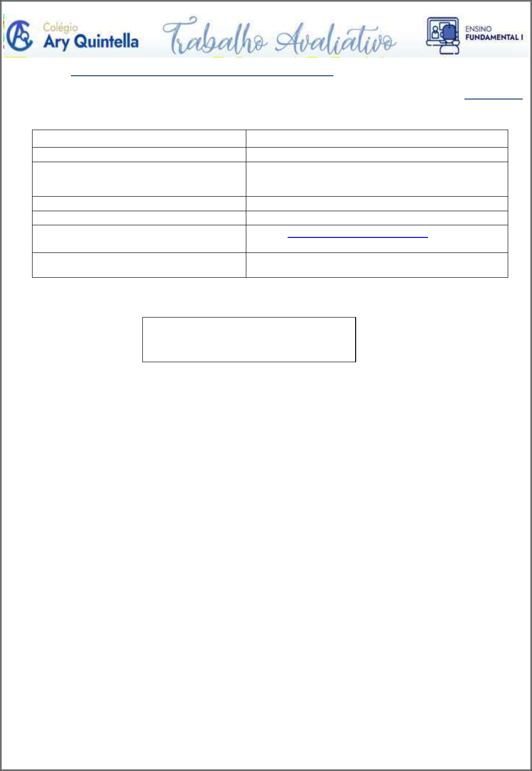 1 Nome: Turma: ( ) 501A ( ) 501B Nota: QUADRO DE INFORMAÇÕES IMPORTANTES DISCIPLINA Matemática Quantidade de Questões 12 Unidade(s) Temática(s) a ser(em) consultada(s) para a realização da Atividade Problemas+ Porcentagens+ Termômetro + Arme e efetue. Data que foi postado o trabalho 03/12/2021 Data limite para entrega do trabalho 03/12/2021 até as 20h E-mail para onde deve ser enviado o trabalho Turma: 501A-claudia5anoef@gmail.com Turma: 501B-deborah5anoef@gmail.com OBSERVAÇOES Procure entregar o trabalho no dia limite postado. No 1- Em um feirão, Juarez aproveitou as promoções e comprou: Qual é o troco de Juarez, sabendo que ele levou apenas uma nota de R$ 100,00? (2,5 pts.) a) R$ 34,82 b) R$ 65,18 c) R$ 83,62 d) R$ 49,80 e) R$ 51,50 Espaço para seus cálculos: 2- Uma empresa utiliza um índice de massa corporal inventado por ela própria, no qual divide por dois a soma entre altura e peso dos funcionários. Qual é o índice de massa corporal de Rhuan, sabendo que sua altura é 1,78 m e seu peso é 72,3 kg? (2,5 pts.) a) 74,08 b) 31,15 c) 37,04 d) 37,4 e) 37 Espaço para seus cálculos: 07 Agendas que custaram R$ 1,32; 04 Canetas que custaram R$ 0,26; 45 Lapiseiras a R$ 1,22. 2 3- Leonardo produz em sua sorveteria 16.800 picolés que foram distribuídos igualmente entre as 8 sorveterias pela cidade. Quantos picolés cada sorveteria recebeu? (2,5 pts.) a)1400 b)2800 c) 2100 d) 2325 Espaço para seus cálculos: 4- Se um supermercado está vendendo 6 garrafas de suco de pêssego por R$25,20, qual será o preço de 8 garrafas desse suco caso essa promoção se mantenha? (2,5 pts.) a) 33,60. b) 36,60. c) 30,60. d) 35,60. Espaço para seus cálculos: 5-Complete: ( 5 pts.) O _______________________ é um instrumento usado para medir a temperatura. O componente químico existente dentro do termômetro é o _______________________. 6- Calcule as expressões numéricas abaixo: (10 pts.) a ) 45 + (25 x 2) – 80 = b) 32 ÷ 4 + ( 8 x 2) = 3 c) 212 + ( 45 - 13) x 2= d) 72 ÷ 9 + 45 x 3= e) 63 ÷ 9 + 28 ÷ 7 + 36 ÷ 4 = 7- Para fazer um bolo de aniversário, a mãe de Juliana gastou 254 reais na compra dos ingredientes. Ela pagou com três cédulas de 100 reais. Qual foi o troco da mãe de Juliana? (5 pts.) Sentença Matemática: Cálculos: Resposta: ___________________________________________________________________ 8- Minha prima tem 8 anos. Estamos no mês de novembro de 2021 e ela completa sua nova idade em Fevereiro. Minha prima tem: (5 pts.) ( ) aproximadamente 9 anos. ( ) aproximadamente 8 anos. 9- Qual o nome da moeda usada em nosso país? Real (5 pts.) ___________________________________________________________________________________ 10- Calcule as porcentagens: (12 pts.) a) 25% de 120= b) 30% de 180= c) 50% de 90= d) 80% de 100= 4 e) 15% de 130= f) 17% de 34= 11- Na lanchonete foi produzido 200 lanches pela manhã e a tarde foi de 80% da produção da manhã e todos foram vendidos a R$10,00 cada lanche até o final do dia. Quantos lanches foram vendidos? (8 pts.) A) ( ) 360 B) ( ) 400 C) ( ) 500 D) 220 12- Arme e efetue com bastante atenção: (10 pts.- 2,5 cada) a) 4569 + 23 + 7= b) 12036 – 5909= c) 4629 ÷ 8= d) 1303 x 17=