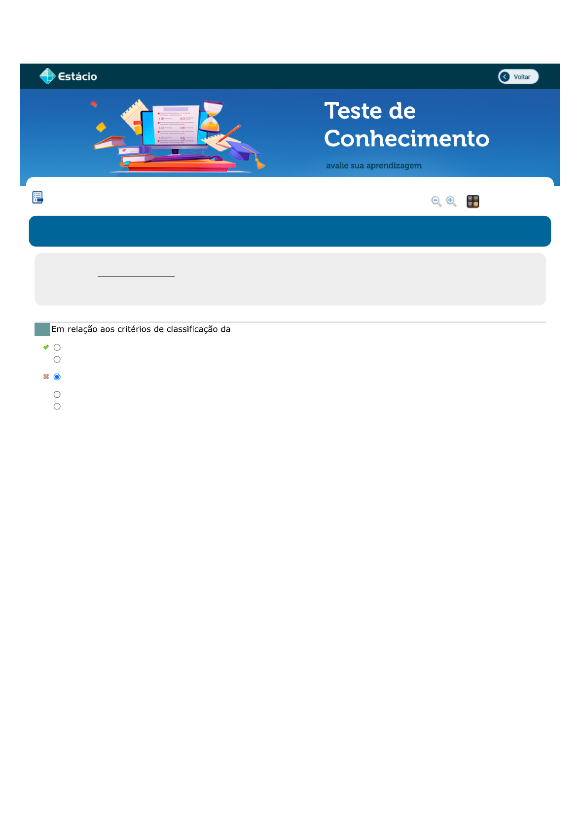 Impresso por Thaís Félix, E-mail thaisfelixpozo@hotmail.com para uso pessoal e privado. Este material pode ser protegido por direitos autorais e não pode ser reproduzido ou repassado para terceiros. 19/03/2023, 08:05:55 05/03/2022 10:44 Estácio: Alunos https://simulado.estacio.br/alunos/ 1/5 Em relação aos critérios de classificação da síndrome metabólica adotados pela OMS, assinale a alternativa correta: NUTRIÇÃO MATERNO INFANTIL Lupa Calc. SDE4573_A5_202003460842_V1 Aluno: Matr.: JOÃO ANDRÉ VIANA DA SILVA 202003460842 Disc.: /NUTRIÇÃO MATERNO INF 2022.1 - F (G) EX Prezado (a) Aluno(a), Você fará agora seu ! Lembre-se que este exercício é opcional, mas não valerá ponto para sua avaliação. O mesmo será composto de questões de múltiplaTESTE DE CONHECIMENTO escolha. Após responde cada questão, você terá acesso ao gabarito comentado e/ou à explicação da mesma. Aproveite para se familiarizar com este modelo de questões que será usado na sua AV e AVS. 1. IMC ≥ P97 + triglicérides ≥ 150. IMC< P97 + pressão arterial ≥ P90. IMC ≥ P97 + triglicérides ≥ 110. IMC ≤ P97 + glicemia de jejum ≥ 100 + hiperinsulinemia. IMC ≥ P97 + HDL > 35. Impresso por Thaís Félix, E-mail thaisfelixpozo@hotmail.com para uso pessoal e privado. Este material pode ser protegido por direitos autorais e não pode ser reproduzido ou repassado para terceiros. 19/03/2023, 08:05:55 05/03/2022 10:44 Estácio: Alunos https://simulado.estacio.br/alunos/ 2/5 Correlacione as colunas abaixo e marque a alternativa correta em relação aos métodos de avaliação dietética: 1. Consumo atual 2. Consumo habitual ( ) recordatório de 24 horas ( ) questionário de frequência de consumo alimentar ( ) história alimentar ( ) registro alimentar Explicação: Valores limites de normalidade para os sinais considerados para o diagnóstico da síndrome metabólica em crianças e adolescentes de acordo com diferentes critérios utilizados 2. Impresso por Thaís Félix, E-mail thaisfelixpozo@hotmail.com para uso pessoal e privado. Este material pode ser protegido por direitos autorais e não pode ser reproduzido ou repassado para terceiros. 19/03/2023, 08:05:55 05/03/2022 10:44 Estácio: Alunos https://simulado.estacio.br/alunos/ 3/5 (SESA/ES, 2013) A tabela abaixo apresenta os percentis de IMC de adolescentes do sexo feminino, utilizado para a classificação do estado nutricional, de acordo com as orientações do Ministério da Saúde. Considerando uma adolescente de 17 anos de idade, com 46 Kg de massa corporal e 170 cm de altura, assinale a opção correta com base nas informações da tabela. 2,2,1,1. 1,1,2,2. 2,1,1,2. 1,2,2,1. 1,2,1,2. Explicação: Recordatório de 24 horas: Relato da quantidade de todos os alimentos e bebidas consumidos ao longo de 24 horas. Caracteriza o consumo atual. Registro alimentar: O entrevistado anota em um formulário, no momento do consumo, todos os alimentos e bebidas consumidos ao longo do dia, por um período de 1 a 7 dias. Caracteriza o consumo atual. Questionário de frequência de consumo alimentar (QFCA): Consiste em uma lista de alimentos com uma sessão de respostas sobre a frequência de consumo habitual de alimentos ou grupos de alimentos, durante um período pré-determinado. História alimentar: Informações retrospectivas sobre consumo e hábitos alimentares durante o ciclo da vida. 3. Um aumento de 10% na massa corporal da adolescente não provocaria nenhuma alteração no diagnóstico nutricional em questão. O diagnóstico é de baixo peso, pois o resultado se encontra abaixo do percentil 5 de classificação do IMC. O diagnóstico seria de eutrofia, caso a adolescente tivesse 16 anos de idade. Impresso por Thaís Félix, E-mail thaisfelixpozo@hotmail.com para uso pessoal e privado. Este material pode ser protegido por direitos autorais e não pode ser reproduzido ou repassado para terceiros. 19/03/2023, 08:05:55 05/03/2022 10:44 Estácio: Alunos https://simulado.estacio.br/alunos/ 4/5 Para estimar a estatura de uma adolescente com paralisia cerebral é necessário aferir a seguinte medida: O diagnóstico pode ser de eutrofia, uma vez que a estatura indica provavelmente alta compleição corporal. O diagnóstico será de baixo peso, apenas se o resultado estiver abaixo do percentil 3 de classificação do IMC, não apresentado na tabela. Explicação: O diagnóstico é de baixo peso, pois o resultado do IMC 15,91 Kg/m2 se encontra abaixo do percentil 5 de classificação do IMC. São utilizados os índices IMC por idade (IMC/ I) e altura por idade (A/I) para a avaliação nutricional, de acordo com a idade e o sexo, em percentis ou escore Z. Os pontos de corte e a classificação se encontram na tabela abaixo: Tabela 3: Classificação do estado nutricional de adolescentes para cada índice antropométrico. Valores Críticos Índices Antropométricos IMC para a idade Estatura para a idade < Percentil 0,1 < Escore z -3 Magreza acentuada Muito baixa estatura para a idade ≥ Percentil 0,1 e < Percentil 3 ≥ Escore z -3 e < Escore z -2 Magreza Baixa estatura para a idade ≥ Percentil 3 e < Percentil 15 ≥ Escore z -2 e < Escore z -1 Eutrofia Estatura adequada para a idade ≥ Percentil 15 e ≤ Percentil 85 ≥ Escore z -1 e ≤ Escore z +1 > Percentil 85 e ≤ Percentil 97 > Escore z +1 e ≤ Escore z + 2 Sobrepeso > Percentil 97 e ≤ Percentil 99,9 > Escore z +2 e ≤ Escore z + 3 Obesidade > Percentil 99,9 > Escore z +3 Obesidade grave Fonte: Adaptado de World Health Organization, 2006. 4. Cirdunferência do quadril. Circunferência da panturrilha. Hemienvergadura do braço. Circunferência abdominal. Impresso por Thaís Félix, E-mail thaisfelixpozo@hotmail.com para uso pessoal e privado. Este material pode ser protegido por direitos autorais e não pode ser reproduzido ou repassado para terceiros. 19/03/2023, 08:05:55 05/03/2022 10:44 Estácio: Alunos https://simulado.estacio.br/alunos/ 5/5 Altura do joelho. Explicação: Devido 