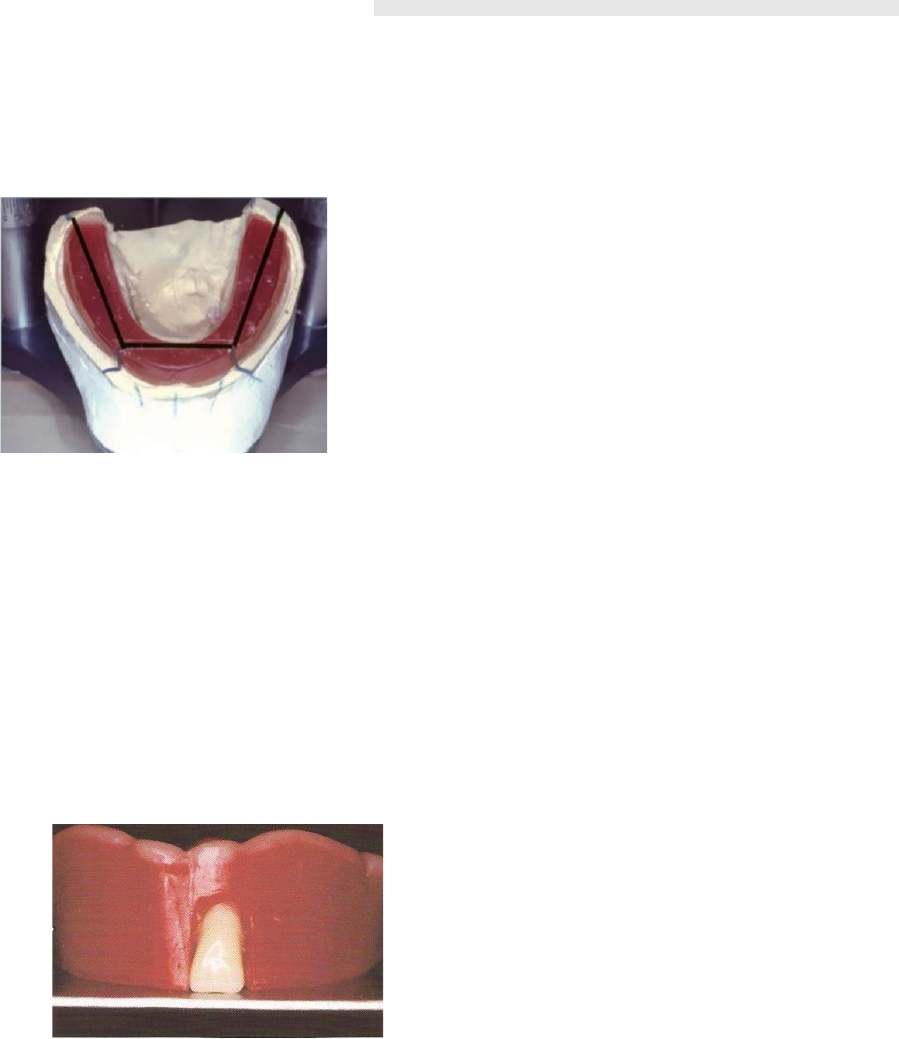 Amanda G. Montagem dos dentes artificiais em prótese total A referência para montar os dentes superiores é o plano inferior. - Transferência da marcação do centro da papila piriforme para a área posterior do modelo - Marcação do alinhamento da crista do rebordo na região anterior do modelo, linha de esforço mastigatório ou linha de Pound - Transferência da linha de esforço mastigatório, da crista do rebordo para a superficie oclusal do plano inferior - Os planos de orientação devem estar montados no ASA, em DVO e ROC Basicamente existem duas técnicas para montagem dos dentes artificiais em PT: 1. Técnica da janela: remover a porção de cera correspondente ao dente a ser montado – desvantagem: a contração da cera que removida é maior, ao colocar o adjacente os antigos se movem, é preciso montar em cera nova que tenha elasticidade 2. Técnica do recorte do rolete (técnica limpa): recortar o rolete na altura da linha alta do sorriso de um dos lados (hemi arco) · Arranjo dos dentes anteriores superiores Incisivo central superior: - Superficie mesial tangenciando a linha mediana e o eixo axial de sua coroa, ligeiramente convergindo no sentido cérvico-incisal - A superfície incisal deverá tocar a borda por vestibular do arco de oclusão inferior Canino superior: - Colo cervical por vestibular ligeiramente mais vestibularizado (mais saliente) - A ponta voltada para dentro e tocando o arco de oclusão inferior - Ligeira giroversão deixando a face vestibular menos aparente e mostrando mais a face mesial do dente Altura do plano oclusal: terço superior da papila retromolar Os dentes posteriores devem estar em curva ascendente e os anteriores tangencial a linha seco úmida · Montagem: - Cortar o plano de orientação superior na linha média até a linha alta do sorriso para a posterior - Pequeno rolete de cera sobre a base na crista do rebordo - Dente 21, colo na linha alta do sorriso, face mesial na linha média, borda incisal tangencia e contorna o plano inferior - Dente 22, colo na linha alta do sorriso, face mesial na distal do 21, borda incisal do dente 22 acompanha a vestibular do plano inferior - Canino posicionado acompanhando a curvatura do plano inferior e ligeiramente inclinado para distal - 1º pré-molar posicionado, as duas cúspides tocam no plano. Nos posteriores quem manda é a linha de Pound (cúspide palatina em cima dela) - Posicionamento palatinizado do 2º pré-molar, as duas cúspides tocam o plano inferior - A partir dos pré-molares a montagem fica mais palatinizada - As cúspides palatinas de todos os dentes posteriores tocam o plano inferior - Os dentes anteriores ficam ligeiramente distalizados, os posteriores perpendiculares ao plano inferior - A montagem do lado oposto segue a mesma sequência já descrita - Com todos os dentes montados, observar ao fundo o corredor bucal preservado · Ceroplastia: - Toda a vestibular é preenchida com cera 7 plastificada, desde o fundo do vestibulo cobrindo o colo dos dentes - Iniciar a escultura da cera na altura do colo dos dentes - Fazer cortes semicirculares do ponto de contato até o colo espátula lecron num ângulo de 45º - Iniciar a escultura da base vestibular do enceramento com triângulos invertidos delimitando as bossas e as fossas · Montagem dos dentes inferiores: - Para montar os dentes inferiores devemos seguir uma relação oclusal de 2:1 - Recortar o plano inferior a partir da linha média e seguir para posterior até a papila piriforme - Os planos devem estar posicionados no ASA, com o pino incisal em zero - O incisivo central 31 segue o alinhamento mesial e contata o 1/3 incisal da face palatina do superior 21 - Relação de oclusão: 2 dentes inferiores para 1 dente superior - A montagem dos dentes inferiores segue o direcionamento dos dentes superiores e não do plano inferior - O canino fica com o colo ligeiramente distalizado. A cúspide fica entre o lateral e o canino superior - O 1º pré-molar segue o alinhamento do canino e oclui entre a distal do canino e o 1º pré-molar superior - Os dentes posteriores são montados seguindo o mesmo alinhamento e padrão oclusal - A cera do lado oposto é removida, verifica-se a oclusão e o posicionamento do pino incisal - Antecipar a montagem do 1º molar 46. Os outros dentes deverão se articular no espaço restante