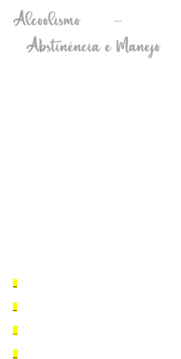 1 Khilver Doanne Sousa Soares Material restrito, favor não reproduzir nem distribuir sua posse!!! Nenhum serviço de impressão e xerox pode redistribuir este material a outros clientes!!! Alcoolismo – Abstinência e Manejo Ao contrário de outras drogas, o consumo de álcool em baixas doses – especialmente vinho – parece diminuir o risco de doença cardiovascular. O etanol atua potencializando a ação do GABA, neurotransmissor inibitório no sistema nervoso central, e bloqueando os receptores NMDA de glutamato, neurotransmissor excitatório. Além disso, inibe a gliconeogênese, predispondo ao risco de hipoglicemias. Álcool no SNC ativa o GABA, é depressor; inativa os receptores NMDA (glutamato ex.), piora ainda mais a depressão do SNC; rebaixamento do nível de consciência Indivíduos dependentes de álcool precisam de grande quantidade diária para o funcionamento adequado, se não o fazem, surgem os sintomas de abstinência. Antigas atividades prazerosas, compromissos sociais ou do trabalho perdem prioridade – a vida passa a girar em torno do hábito de beber. Há um questionário para identificar - CAGE: C – Cut down: você já tentou diminuir ou cortar a bebida? A – Anoyed: Você já ficou incomodado ou irritado com outros porque criticaram seu jeito de beber? G – Guilty: Você já se sentiu culpado por causa do seu jeito de beber? E – Eye-opener: Você já teve que beber para aliviar os nervos ou reduzir os efeitos de uma ressaca? Se o paciente tem 2 desses pontos presentes, o teste é positivo para transtorno alcoólico. Ou ainda o questionário AUDIT. Utiliza dez questões, com pontuações específicas para cada resposta. Interpretação: consumo de baixo risco até 7 pontos; uso de risco de 8 a 15 pontos; uso nocivo 16 a 19 pontos; provável dependência 20 ou mais pontos. Perguntas: 1. Com que frequência você consome bebidas alcoólicas? Nunca – zero ponto. Mensalmente ou menos – um ponto. De 2 a 4 vezes por mês – dois pontos. De 2 a 3 vezes por semana – três pontos. 4 ou mais vezes por semana – quatro pontos. 2. Quantas doses alcoólicas você consome tipicamente ao beber? 0 ou 1 – zero ponto. 2 ou 3 – um ponto. 4 ou 5 – dois pontos. 6 ou 7 – três pontos. 8 ou mais – quatro pontos. 3. Com que frequência você consome cinco ou mais doses de uma vez? Nunca – zero ponto. Menos de uma vez por mês – um ponto. Mensalmente – dois pontos. Semanalmente – três pontos. Todos ou quase todos os dias – quatro pontos. 4. Quantas vezes ao longo dos últimos doze meses você achou que não conseguiria parar de beber uma vez tendo começado? Nunca – zero ponto. Menos de uma vez por mês – um ponto. Mensalmente – dois pontos. Semanalmente – três pontos. Todos ou quase todos os dias – quatro pontos. 5. Quantas vezes ao longo dos últimos doze meses você, por causa do álcool, não conseguiu fazer o que era esperado de você? Nunca – zero ponto. Menos de uma vez por mês – um ponto. Mensalmente – dois pontos. Semanalmente – três pontos. 2 Khilver Doanne Sousa Soares Material restrito, favor não reproduzir nem distribuir sua posse!!! Nenhum serviço de impressão e xerox pode redistribuir este material a outros clientes!!! Todos ou quase todos os dias – quatro pontos. 6. Quantas vezes ao longo dos últimos doze meses você precisou beber pela manhã̃ para poder se sentir bem ao longo do dia após ter bebido bastante no dia anterior? Nunca – zero ponto. Menos de uma vez por mês – um ponto. Mensalmente – dois pontos. Semanalmente – três pontos. Todos ou quase todos os dias – quatro pontos. 7. Quantas vezes ao longo dos últimos doze meses você se sentiu culpado ou com remorso depois de ter bebido? Nunca – zero ponto. Menos de uma vez por mês – um ponto. Mensalmente – dois pontos. Semanalmente – três pontos. Todos ou quase todos os dias – quatro pontos. 8. Quantas vezes ao longo dos últimos doze meses você foi incapaz de lembrar o que aconteceu devido à bebida? Nunca – zero ponto. Menos de uma vez por mês – um ponto. Mensalmente – dois pontos. Semanalmente – três pontos. Todos ou quase todos os dias – quatro pontos. 9. Você já̃ causou ferimentos ou prejuízos a você mesmo ou a outra pessoa após ter bebido? Não – zero ponto. Sim, mas não nos últimos doze meses – dois pontos. Sim, nos últimos doze meses – quatro pontos. 10. Algum parente, amigo ou médico já̃ se preocupou com o fato de você beber ou sugeriu que você parasse? Não – zero ponto. Sim, mas não nos últimos doze meses – dois pontos. Sim, nos últimos doze meses – quatro pontos. Transtorno por Uso de Álcool – DSM-V Tem 12 meses de duração; deve ter sofrimento clinicamente significativo. ABSTINÊNCIA (depois de 4 a 12 hrs sem álcool: sintomas!), TOLERÂNCIA (mais álcool com menos efeitos com quantidades habituais de álcool), FISSURA (vontade de beber, negligencia as outras atividades familiares/trabalho/etc. tudo para saciar o vício) o paciente pode ter 1 ou as 3 acima Intoxicação Aguda Os sinais e os sintomas da intoxicação alcoólica caracterizam-se por níveis crescentes de depressão do sistema nervoso central. Inicialmente, há sintomas de euforia leve, evoluindo para tontura, ataxia e incoordenação motora, passando por confusão, desorientação e atingindo graus variáveis de disartria, anestesia, podendo chegar ao estupor, coma, depressão respiratória e morte. O desenvolvimento de tolerância, a velocidade da ingestão, o consumo de alimentos e alguns fatores ambientais são capazes de interferir nessa relação. Síndrome de Abstinência O sinal mais precoce e mais clássico da abstinência é representado pelos tremores. Os sintomas leves, como ansiedade, irritabilidade, insônia e tremor, costumam aparecer mais precocemente, cerca de 24 a 36 horas após a interrupção do uso. Já os sintomas mais graves costumam surgir cerca de três a quatro dias depois da abstin