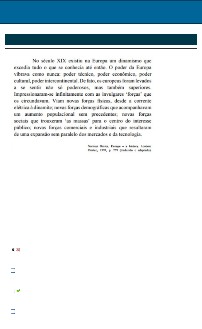 I. CORRETO: Durante o século XIX, na América Latina, o imperialismo europeu se deu sob a forma de controle econômico sobre países independentes menos desenvolvidos. Por sua vez, na África, durante o século XIX, o imperialismo europeu utilizou, principalmente, uma outra forma de domínio: o colonialismo. Esse último domínio era exercido sobre territórios dependentes (colônias), a níveis militar, político, econômico, cultural e racial, diferenciando, assim, do ocorrido, nesse período, na América Latina.