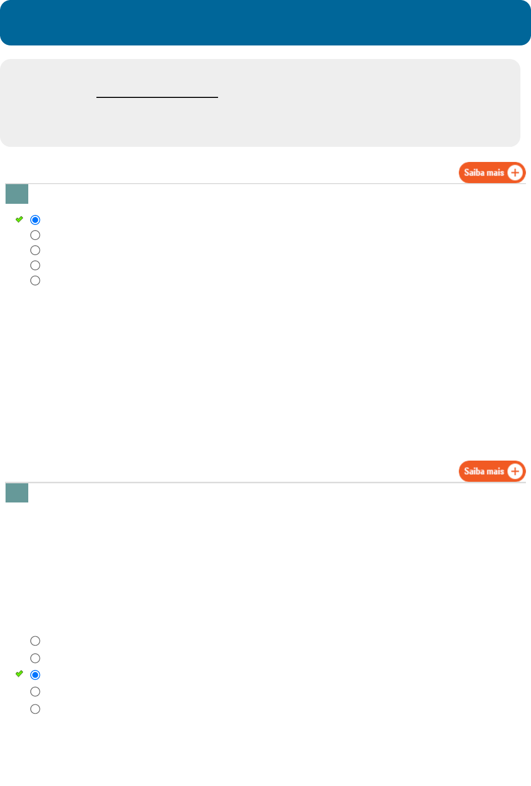 (UFPA) Em fevereiro de 1909, Marinetti publicou na Europa um manifesto cujas idéias desencadearam o: (http://www.singularsantoandre.com.br). Leia o poema Irene do céu, de Manuel Bandeira. Irene preta /Irene boa /Irene sempre de bom humor./Imagino Irene entrando no céu:/- Licença, meu branco!/E São Pedro bonachão:/- Entra, Irene. Você não precisa pedir licença. No texto, o poeta sugere: I. A possibilidade de redenção do excluído diante da morte./II. O orgulho e prepotência da preta ao chegar ao céu./III. A inautenticidade da atitude humilde de Irene./IV. A simplicidade e a força humanizadora de Irene. Estão corretas apenas as afirmativas: LITERATURA BRASILE 2023.1 EAD (G) / EX Prezado (a) Aluno(a), Você fará agora seu TESTE DE CONHECIMENTO! Lembre-se que este exercício é opcional, mas não valerá ponto para sua avaliação. O mesmo será composto de questões de múltipla escolha. Após responde cada questão, você terá acesso ao gabarito comentado e/ou à explicação da mesma. Aproveite para se familiarizar com este modelo de questões que será usado na sua AV e AVS. 1. Futurismo Dadaísmo Romantismo Surrealismo Parnasianismo Explicação: "Escrito por Filippo Tommaso Marinetti e publicado no jornal francês "Le Figaro", em Fevereiro de 1909, o Manifesto Futurista inaugurou um dos mais importantes movimentos artísticos do século XX. Tendo por base os desenvolvimentos tecnológicos de finais do século XIX, a pintura futurista apostava muitas vezes na sobreposição de imagens, imprimindo dinamismo à cena representada. As figuras ameçavam escapar do seu contorno, exaltava-se a velocidade e a força numa tentativa de representar o movimento e, com isso, inaugurava-se uma nova crença estética no seio das artes." (https://entrelinhas.livejournal.com/53219.html) 2. III e IV I e II. I e IV. II, III e IV I e III Explicação: I. A possibilidade de redenção do excluído diante da morte. javascript:duvidas('2951771','7306','1','7552110','1'); javascript:duvidas('130675','7306','2','7552110','2'); (http://www.singularsantoandre.com.br). Macunaíma, perdido e sem dinheiro na cidade de São Paulo, escreve uma carta para as guerreiras do Mato Virgem. Sobre essa carta, assinale a alternativa correta. A poesia modernista sobretudo a da primeira fase (1922-1928): A personagem "Irene" é uma criada, mas quando morrer não precisará pedir para entrar no céu, pois já fez jus a ele. Alternativa correta. II. O orgulho e prepotência da preta ao chegar ao céu. Irene pede licença para entrar no céu. Essa não é uma atitude orgulhosa ou prepotente. Alternativa errada. III. A inautenticidade da atitude humilde de Irene. A atitude de Irene não é afetada; ela é autêntica, simples e boa. Alternativa errada IV. A simplicidade e a força humanizadora de Irene. Alternativa correta. Irene é descrita como uma pessoa simples e boa, alguém que mereceria o céu. Gabarito Comentado 3. A Carta pràs Icamiabas, diferentemente dos demais capítulos, é elaborada em linguagem erudita, visto que nela está implícita uma crítica à linguagem portuguesa européia. A Carta para as Icamiabas é elaborada em linguagem informal, como os demais capítulos da obra, a fim de inovar a língua brasileira. A Carta para as Icamiabas é elaborada em linguagem erudita, seguindo o estilo dos demais capítulos, visto que o autor se inspira no vernáculo português. A Carta pràs Icamiabas é elaborada em linguagem informal, como os demais capítulos da obra, a fim de ilustrar a influência portuguesa na língua brasileir A Carta pràs Icamiabas é elaborada em linguagem formal, como os demais capítulos da obra, a fim de ilustrar a linguagem erudita do protagonista. Explicação: ¿A Carta pras Icamiabas desempenhava uma função importante na estrutura da obra; por isso tomou-a como um capítulo autônomo e ornamental, como pura exibição de virtuosismo lingüístico, quando era na verdade um comentário satírico da escolha desastrada do herói que acaba de preferir a portuguesa às filhas de Vei¿ (Souza, Gilda de Mello e. O tupi e o alaúde: uma interpretação de Macunaíma. São Paulo: Duas Cidades; Ed. 34, 2003. P. 76) Gabarito Comentado 4. faz uma síntese dos pressupostos poéticos que norteavam a linguagem parnasiano- simbolista. enriquece e dinamiza a linguagem, inspirando-se na sintaxe clássica. javascript:duvidas('130682','7306','3','7552110','3'); javascript:duvidas('130665','7306','4','7552110','4'); Latentamente o que segue: "Se por Modernismo entende-se algo mais que um conjunto de experiências de linguagem; se a literatura que se escreveu sob o seu signo representou também uma crítica global à estrutura mental das velhas gerações e um esforço de penetrar mais fundo na realidade brasileira (...)" (Alfredo Bosi, História Concisa da Literatura Brasileira, 1994, p. 332). Interpretando as afirmações do importante crítico e historiador da literatura acima citado, é possível afirmar que o Modernismo: Pneumotórax - Manuel Bandeira Febre, hemop�se, dispnéia e suores noturnos. A vida inteira que podia ter sido e que não foi. Tosse, tosse, tosse. incentiva a pesquisa formal com base nas conquistas parnasianas, a ela anteriores. confere ao nível coloquial da fala brasileira a categoria de valor literário. retoma os ideais neoclássicos de beleza Explicação: "1ª Fase: de 1922 a 1930, conhecida com fase heroica, porque apresentava a necessidade de romper as fórmulas tradicionais, chocar o público e divulgar novas ideias. Na poesia: ¿ Emprego do verso livre, porque o poeta respeita apenas sua inspiração, prega a liberdade de criação e não se importa com regras e modelos; ¿ Livre associação de ideias, com aparente falta de lógica por causa da utilização de imagens que vêm livremente à mente; ¿ Atitude combativa e irreverente relacionada com valores considerados falsos; ¿ Valorização do cotidiano e do fato comum, pois tudo pode ser poetizado; ¿ Incorpo