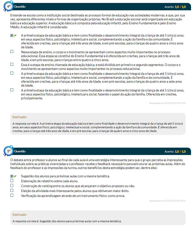 Questão 5 A Educação Básica, segundo a Lei n. 9.394/96 (Lei de Diretrizes e Bases da Educação Nacional – LDBEN), é um direito fundamental que tem como
