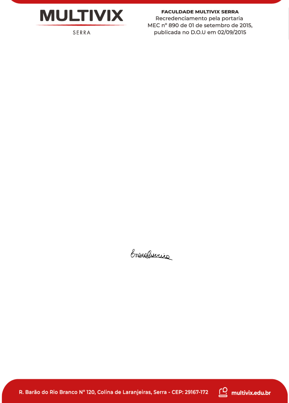 CARTA DE APRESENTAÇÃO DO ESTAGIÁRIO A Faculdade Multivix Serra acredita que a formação de seus alunos deve conjugar, desde o princípio, momentos de discussão teórica e momentos de vivências e experimentações das práticas cotidianas das escolas, dos sujeitos que nela convivem todos os dias – alunos, professores, funcionários não docentes e comunidade mais ampla, favorecendo uma percepção mais completa da dinâmica do processo educativo. Assim, a Faculdade encaminha para estágio na __________________________________________________________________o aluno_______________________________________________________________ do_____º PERÍODO do Curso de Administração regularmente matriculado nesta instituição de ensino, sob a matrícula nº__________________ . O regime da Faculdade Multivix Serra é semestral e a carga horária total do Estágio em questão é de 100 horas no período conforme Matriz Curricular Vigente. Enara Gonçalves Ferreira Coordenação de Cursos DECLARAÇÃO DE ACEITE DO ESTAGIÁRIO Declaro, para fins de comprovação junto à Coordenação de Estágio do Curso de Administração da Faculdade Multivix Serra, que o (a) aluno (a)_____________________________________________________________ regularmente matriculado sob a matricula nº ______________, no semestre letivo de 2023/1 desta Instituição, foi aceito como estagiário (a). ______________,_______________de ______________ de 2023 _____________________________________________________ Assinatura do responsável e carimbo da Instituição FICHA DE ESTÁGIO SUPERVISIONADO ACOMPANHAMENTO MENSAL Estagiário (a):_____________________________________________________________ Semestre:_______________Nº de Matrícula: ________________Curso: Cidade: Período do Estágio: Professor do Estágio: Raiany Angeli Santana Data Horário Atividades Assinatura do Supervisor Inicio Término Total de Horas no semestre:________ _______________/ES, _____/_____/______ Assinatura da (o)estagiária(o):__________________________________________________________ Assinatura do (a) Supervisor (a) de campo: _______________________________________________ (todos os documentos deverão ser assinados e carimbados pelo Supervisor de Campo)