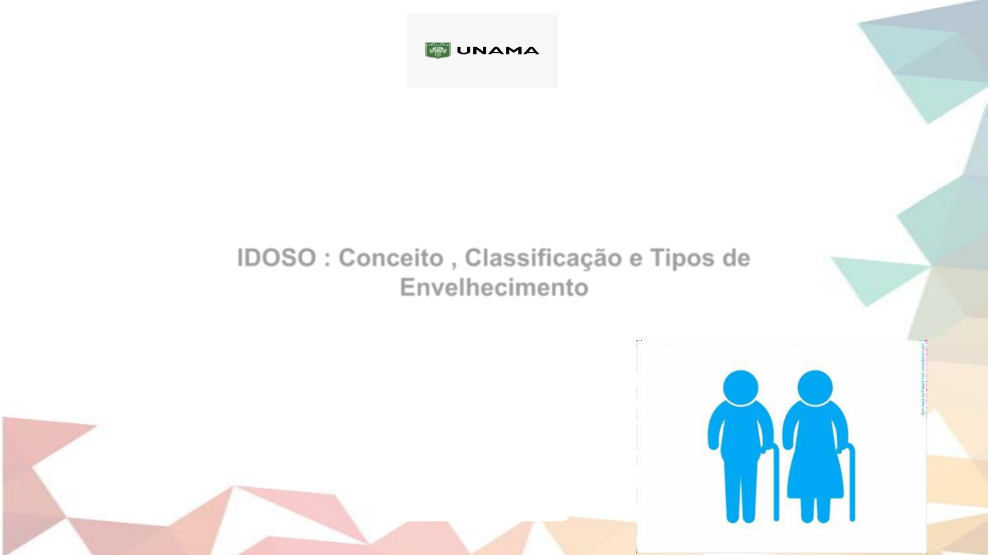 CENTRO UNIVERSITÁRIO DA AMAZÔNIA (UNAMA) - GRUPO SER EDUCACIONAL COORDENAÇÃO DO CURSO DE ENFERMAGEM CURSO DE BACHARELADO EM ENFERMAGEM IDOSO : Conceito , Classificação e Tipos de Envelhecimento Prof.ª Enf.ª Thaianna Imbiriba. SANTARÉM - PA Fevereiro de 2023 GERIATRIA ❖Geriatria :É o ramo da Medicina que lida com os aspectos fisiológicos e psicológicos do envelhecimento bem como com o diagnóstico e tratamento das doenças que afetam aos idosos”. ❖Geriatria Preventiva: Tem como objetivo a prevenção de doenças geriátricas , mantendo a qualidade de vida e prevenindo a dependência funcional .¹; Filho et al (2015)¹; 2 GERONTOLOGIA É a ciência que estuda o processo de envelhecimento humano, não apenas em seus aspectos clínicos e biológicos ,mas também as condições psicológicas , sociais , econômicas e históricas em que esse processo se dá ¹; Definida como um conjunto de conhecimentos construídos num longo processo de estudos e pesquisas por profissionais de diferentes disciplinas. Mendes (2014)¹ O IDOSO ❖Feminização da velhice¹; ❖Desa – ONU : Entre idosos , 65% são mulheres ²; ❖Solidão ; ❖Busca do contato social e do desenvolvimento de novas capacidades e realizações. pessoais. FIGURA 1 4 Sousa (2015)¹; Mendes (2014)²; FONTE:https://www.bing.com.Disponível em 14 de Jan. de 2019. CLASSIFICAÇÃO DE IDOSO • A Política Nacional de Saúde da Pessoa Idosa (PNSPI), Lei nº 8. 842, de 4 de janeiro de 1994, e o estatuto do Idoso, Lei nº 10.741 ,de 1º de outubro de 2003, define Idoso pessoas com 60 anos ou mais. • A Organização Mundial da Saúde (OMS) (2002) define o idoso a partir da idade cronológica: • Em países em desenvolvimento com 60 anos ou mais. • Em países desenvolvidos 65 anos ou mais. • É preciso investigar cada população considerando-se a situação socioeconômica, a cultura a que pertence, a religião que pratica, as atividades disponíveis, as regionalidades e, principalmente, a individualidade de cada idoso a respeito do seu próprio envelhecimento. 6 Qualidade de Vida ❖ Para aqueles que envelhecem, muito mais do que apenas a ausência de doenças, a qualidade de vida deve refletir a manutenção da autonomia, ou seja, da capacidade de determinação e execução dos próprios desígnios. Pereira et al (2018)¹. 7 FIGURA 7 FONTE: Arquivo pessoal.ESFDII. Outubro Rosa na Comunidade 08 de Outubro de 2018. ERROS QUE DEVEM SER EVITADOS • 1 ERRO : Considerar que todas as alterações que ocorrem com a pessoa idosa sejam decorrentes de seu envelhecimento natural ; • 2 ERRO : Tratar o envelhecimento natural como doença a partir de realização de exames e tratamentos desnecessários; Brasil (2006)¹ O QUE É ENVELHECIMENTO? 1.Conceito Simplista É o processo pelo qual o jovem se transforma em idoso; 2.Conceito Biológico Fenômenos que levam à redução da capacidade de adaptação a sobrecargas funcionais; 3.Conceito Cronológico - 60 anos ou mais (países em desenvolvimento) - 65 anos ou mais (países desenvolvidos) - Maior de 85 anos -very old (idoso frágil) ENVELHECIMENTO • A Organização Pan-Americana de Saúde (OPAS) define como "um processo sequencial, individual, acumulativo, irreversível, universal, não patológico, deterioração de um organismo maduro, próprio a todos os membros de uma espécie, de maneira que o tempo o torne menos capaz de fazer frente ao estresse do meio-ambiente e, portanto, aumente sua possibilidade de morte”.(BRASIL 2016) ENVELHECIMENTO ❖Processo natural ¹; ❖Imaginário social ²; 11 Brasil (2017)¹; Guerra et al (2010) ²; ; ENVELHECIMENTO • Conjunto de alterações que ocorrem progressivamente na vida adulta e , com frequência , mas não sempre , reduzem a viabilidade do individuo¹. • Alterações normais do envelhecimento : senescência e senilidade. FONTE:https://www.google.com:Acesso em22deJan.de201 Fatores Determinantes do Processo de Envelhecimento FATORES PSICOSSOCIAIS BASE GENÉTICA ENVELHECIMENTO DO ORGANISMO ALTERAÇÕES CELULARES REDUÇÃO DA CAPACIDADE DE MANUTENÇÃO DO EQUILÍBRIO HOMEOSTÁTICO MAIOR PREDISPOSIÇÃO DOENÇAS FATORES EXTRÍNSECOS (ESTILO VIDA) FATORES AMBIENTAIS ALTERAÇÕES FUNCIONAIS ALTERAÇÕES MOLECULARES PAPALÉO NETTO; BRITO, 2001. 13 A PROMOÇÃO DO ENVELHECIMENTO BEM- SUCEDIDO • Ações Preventivas : 1. Primárias ( aquelas que evitam o aparecimento de doenças ); 2. Secundárias ( diagnostico precoce de doença); 3. Terciárias ( aquelas que evitam a piora funcional , uma vez a doença já instalada). TIPOS DE ENVELHECIMENTO ❑Processo de envelhecimento : Processo dinâmico, progressivo e irreversível, caracterizado por diversas manifestações nos campos biológicos, psíquicos e sociais. ❑O envelhecimento é um processo multidimensional, no qual destacam-se as dimensões biológica, cronológica , funcional , social e psicológica. Dimensão Biológica: Em termos biológicos, o envelhecimento compreende os processos de transformação do organismo que ocorrem após a maturação sexual e que implicam a diminuição gradual da probabilidade de sobrevivência. No entanto, o envelhecimento e o desenvolvimento são processos que coexistem ao longo do ciclo vital. A idade cronológica é uma informação que não diz muito sobre o real envelhecimento humano, embora seja um parâmetro importante para o planejamento de políticas de atenção ao idoso ou para a gestão de serviços. A única característica importante a ser destacada em relação ao processo de envelhecimento humano é a heterogeneidade. Ou seja, cada indivíduo envelhece de maneira própria, pois se trata de um processo multifatorial. Dimensão Funcional: A Capacidade funcional é o principal indicador da capacidade adaptativa do ser humano. Sua determinação nos informa sobre a idade ou o envelhecimento funcional do indivíduo e isso não depende da idade cronológica. Ou seja, existem pessoas jovens cronologicamente e bastante envelhecidas f