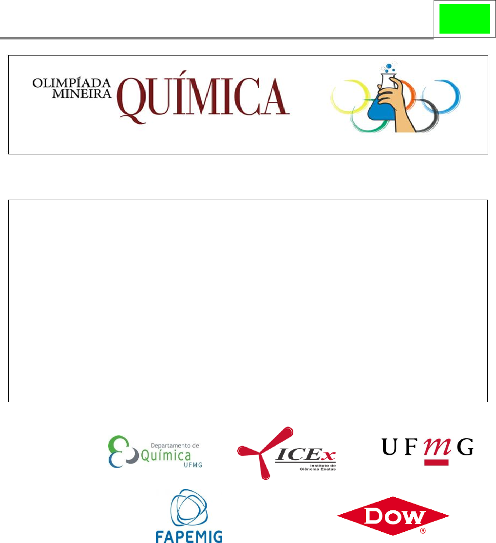 OMQ 2020: Questões A . 1 Instruções: 1 – Esta prova contém 25 (vinte e cinco) questões de múltipla escolha e 4 (quatro) questões discursivas. 2 – O tempo de duração da prova é de 2 (duas) horas. 3 – O sistema abrirá às 13:00 h e fechará às 15:00 h. 4 – É importante que você tenha disponível para realização da prova: Tabela Periódica, lápis, caneta, borracha, papel. Não será necessário enviar nenhum material escaneado, todas as questões devem ser respondidas no sistema. 5 – Não é necessário apresentar o detalhamento dos cálculos nas questões discursivas, apenas a resposta final. Realização: Apoio: OMQ 2020: Questões A . 2 Questões de Múltipla Escolha Questão 1. Analise as afirmações a seguir sobre o modelo atômico de Bohr. I. Utilizando o modelo atômico de Bohr é possível explicar o espectro de linhas do átomo de lítio. II. No modelo de Bohr, o elétron tem energia quantizada. III. Segundo o modelo de Bohr, os elétrons estão em órbitas estacionárias, e por isso não perdem e nem ganham energia ao girarem em torno do núcleo. IV. No modelo de Bohr, o elétron libera energia ao passar de uma órbita mais interna para uma órbita mais externa. O número de afirmações VERDADEIRAS é: a) uma. b) duas. c) três. d) quatro. Questão 2. Considere a seguinte situação: “Um elétron de um átomo de hidrogênio é excitado do estado fundamental até o quinto estado excitado.” Em relação a essa situação, analise as afirmações a seguir. I. O quinto estado excitado corresponde ao quinto estado estacionário de energia (n = 5). II. Retirar um elétron presente no quinto estado excitado requer menos energia que para retirar um elétron do terceiro estado excitado. III. O comprimento de onda da radiação emitida quando o elétron decai do quinto estado excitado para o estado fundamental é menor que quando o elétron decai do terceiro estado excitado para o estado fundamental. IV. O maior comprimento de onda do fóton capaz de retirar um elétron que está no quinto estado estacionário (n = 5) no átomo de hidrogênio não é capaz de retirar o elétron do estado fundamental (n = 1). Em relação a essas afirmações, é adequado inferir que: a) I e IV estão corretas. b) II, III e IV estão corretas. c) I, II e III estão corretas. d) todas estão corretas. Questão 3. Indique a alternativa que melhor completa a seguinte afirmação: “Dos compostos listados nas alternativas, ______ possui a menor separação interiônica.” a) SrBr2 b) RbCl c) KF d) CsI OMQ 2020: Questões A . 3 Questão 4. Indique a alternativa que apresenta, para a série isoeletrônica de espécies químicas, a ordem crescente de raio. a) Ca2+ < K+ < Ar < Cl- b) Ca2+ < K+ < Cl- < Ar c) K+ < Ca2+ < Ar < Cl- d) Ca2+ < Ar < K+ < Cl- Questão 5. As curvas representadas de A a D, na figura abaixo, correspondem às energias de ionização de elementos do terceiro período da tabela periódica. Indique a alternativa que representa a curva correspondente às energias de ionização do elemento alumínio. a) D b) C c) B d) A Questão 6. O sulfeto de sódio, Na2S, é utilizado em curtumes para remover o pelo das peles. Este é o motivo do cheiro desagradável dos curtumes. Ele é preparado de acordo com a seguinte equação química (não balanceada): x Na2SO4(s) + y C(s) → z Na2S(s) + w CO(g) Considere que sejam misturados 15,00 g de Na2SO4 e 7,50 g de C para produção de sulfeto de sódio. Baseado nessas informações, é INCORRETO afirmar que: a) são obtidos 8,24 g de Na2S, caso a reação tenha rendimento de 100%. b) o Na2SO4 é o reagente limitante. c) os menores coeficientes estequiométricos inteiros para a equação correspondem a x = 1; y = 4; z = 1 e w = 4. d) o carbono foi adicionado com excesso percentual de aproximadamente 68%. OMQ 2020: Questões A . 4 Questão 7. Considere as seguintes moléculas: (a) CO2 (b) OF2 (c) CBr4 (d) CH2Cl2 (e) HCN Sobre essas moléculas as afirmações a seguir são feitas. I. As moléculas (a) e (b) são não polares. II. A molécula (b) tem geometria angular. III. A molécula (c) é não polar e tem geometria tetraédrica. IV. As moléculas (d) e (e) são polares. V. A molécula (e) tem geometria linear. Em relação a essas afirmações é CORRETO inferir que: a) I, II e V são falsas. b) II, III, IV e V são falsas. c) III e IV são falsas. d) apenas I é falsa. Questão 8. O conhecimento sobre o ângulo de ligação das moléculas é importante para o entendimento das propriedades das substâncias formadas por essas moléculas. Analise as afirmações a seguir. I) Sabendo que as moléculas BF3 e SO3 apresentam geometria trigonal plana, pode-se afirmar que os ângulos de ligação são de 120°. II) O íon H3O + tem arranjo tetraédrico e os ângulos de ligação são menores que 109,5º. III) O íon SCN- apresenta ângulo de ligação de 180º. IV) O ângulo de ligação no CS2 é igual ao do NO2. Em relação a essas afirmações, indique o número de afirmações INCORRETAS: a) uma. b) duas. c) três. d) quatro. Questão 9. O gráfico abaixo apresenta duas curvas de energia potencial, A e B, que descrevem a formação da ligação química entre dois átomos (enxofre e oxigênio) para diferentes moléculas. OMQ 2020: Questões A . 5 Assinale a alternativa que contenha moléculas cuja ligação possa ser representada pelas curvas A e B, respectivamente: a) SO2 e SO3. b) SO2 e H2SO4. c) SO3 2− e SO3. d) SO3 2− e H2SO4. Questão 10. Os fertilizantes nitrogenados químicos são divididos em quatro classes. Uma delas contém o fosfato monoamônico [MAP, di-hidrogenofosfato de amônio] e o fosfato diamônico [DAP, hidrogenofosfato de amônio]. Em um determinado terreno foram utilizados 200 kg de MAP e 300 kg de DAP para fazer a fertilização do solo. Indique a quantidade de substância (mol) usada de nitrogênio para adubação do terreno. a) 6.282 b) 4.010 c) 8.020 d) 5.749 Questão 11. A platina (Pt) e o ouro (Au) s