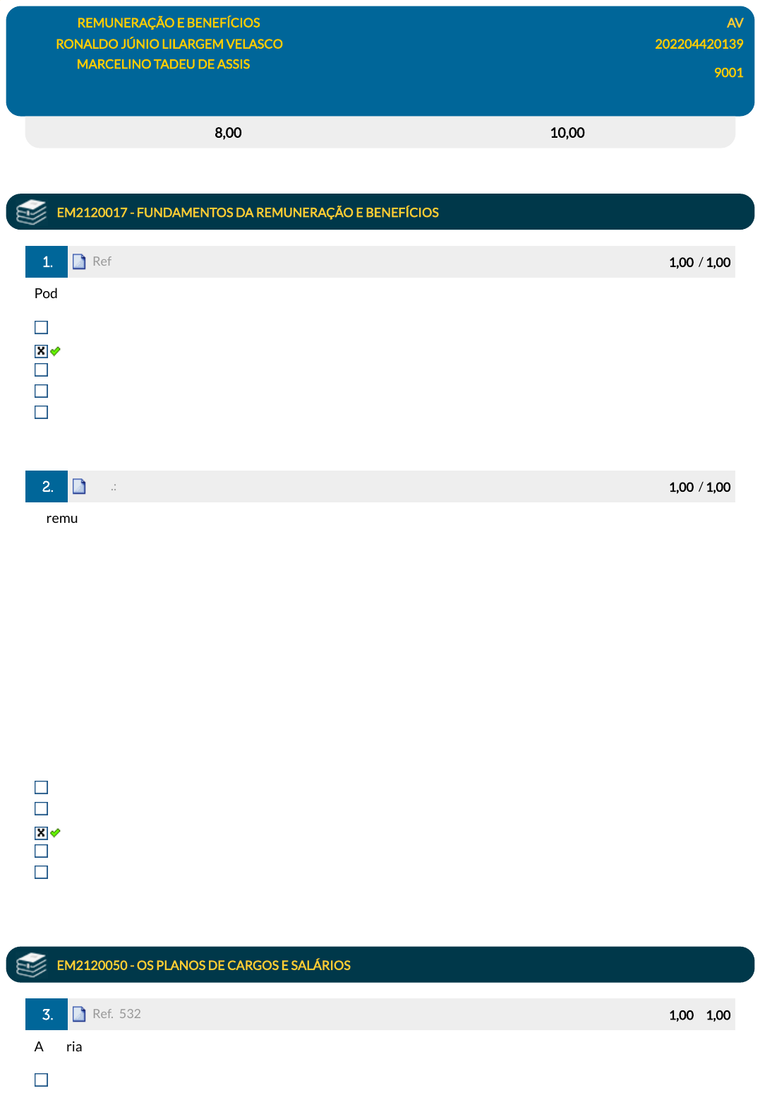 Disciplina: REMUNERAÇÃO E BENEFÍCIOS AV