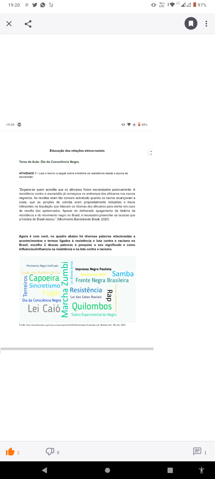 História e Cultura Afro-Brasileira AVALIAÇAO ON LINE ESAB
