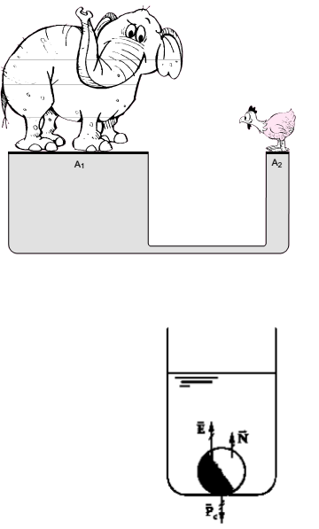 UNIVERSIDADE FEDERAL DO OESTE DO PARÁ - UFOPA Data:____/____/____ Professor: Raphael Tapajós Nome:______________________________________ Exercício de Revisão – Hidrostática e Hidrodinâmica 1. Uma piscina de profundidade 5 m está completamente cheia de água, cuja massa específica é de 1 g/cm3, num local onde g = 10 m/s2 e a pressão atmosférica de 105 N/m2. Calcule a pressão que o fundo da piscina suporta. 2. Se o mercúrio usado na experiência de Torricelli for substituído por água, vamos determinar a nova altura da coluna. 3. Quando tomamos refrigerante por um canudo, aspiramos o líquido e esse sobe até a boca. Explique por que o líquido sobe. 4. Uma prensa hidráulica em equilíbrio recebe a ação de uma força de intensidade de 20 N no êmbolo menor. Calcule o peso de um corpo que deve ser colocado no êmbolo maior, para que a prensa fique em equilíbrio, sabendo que os êmbolos são cilíndricos, de raios de base 2 cm e 10 cm. 5. Um elefante e uma galinha estão equilibrados sobre um elevador hidráulico, conforme mostra a figura. a) Sendo o peso do elefante 16.000 N e o da galinha 20N, calcule qual deve ser a relação entre as áreas das superfícies sobre a qual eles estão, isto é, quanto vale A1/A2? b) Suponha que a área onde está apoiada a galinha (A2) seja 10 cm2. Qual deverá ser a área onde está o elefante (A1)? 6. Uma esfera de massa 10 kg e volume 2.000 cm3 está submersa, como mostra a figura, num líquido de massa específica 2 g/cm3, num local onde g = 10 m/s2. Calcule: a) a intensidade do empuxo recebido pela esfera; b) a intensidade da força normal entre a esfera e o fundo do recipiente. 7. As dimensões de um tijolo são aproximadamente 5x10x20 cm, e a sua massa 1.500g a) Calcule o seu volume, seu peso e sua densidade. b) Calcule a pressão que ele exerce sobre uma mesa, quando está apoiado em cada uma de suas três faces. 8. O raio da aorta é cerca de 1,0 cm e o sangue flui através dela com velocidade de 30,0 cm/s. Calcule a velocidade média do sangue nos capilares dado que cada capilar tem um diâmetro interno de cerca de 8.10-4 cm e que existem literalmente bilhões deles, de modo que a área de secção transversal total dos capilares é de cerca de 2.000 cm2.