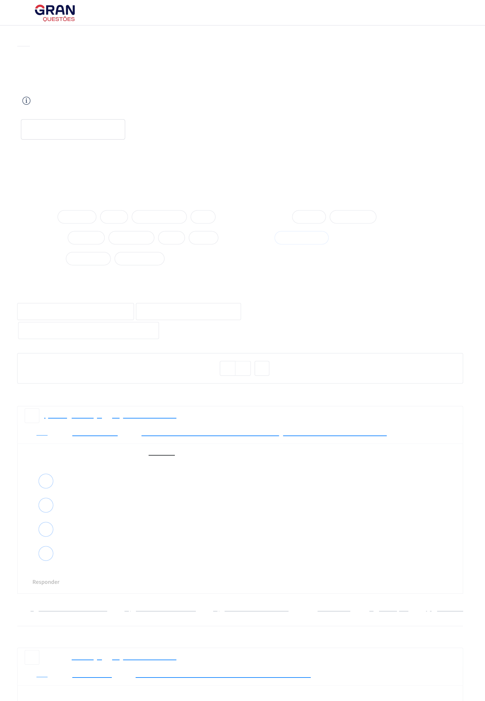 02/04/2023, 14:17 Questões de Concurso sobre Diagnóstico em Endodontia de 2023 | Gran Questões https://questoes.grancursosonline.com.br/questoes-de-concursos/odontologia-diagnostico-em-endodontia?psafe_param=1&utm_medium=ppc&utm_campaign=&utm_term=&gclid=Cj0KCQjwz6ShBhCMARIsAH9A0q… 1/2 Filtros Salvos Comentários: Minhas questões: Tipo de questão: Incluir questões: Questões: Filtro simplificado Questões Todas as questões Disciplinas Odontologia Assuntos Diagnóstico em Endodontia Limpar filtro Salvar filtro Filtrar questões 154 questões encontradas Gerar simulado Questões por página 1 Q2454075 Odontologia Diagnóstico em Endodontia Ano: 2022 Banca: Instituto ACCESS Prova: Instituto ACCESS - Prefeitura de Ouro Branco - Cirurgião Dentista - Área Endodontista - 2022 Com relação à reabsorção radicular interna, é incorreto afirmar que A ocorre posteriormente ao clareamento de dentes não vitais. B o traumatismo pode ser reconhecido como um fator de início para a reabsorção interna. C se caracteriza pelo alargamento em forma oval do espaço do canal radicular. D geralmente é assintomática. 2 Q2563626 Odontologia Diagnóstico em Endodontia Ano: 2022 Banca: Instituto AOCP Prova: Instituto AOCP - PM GO - Oficial Dentista - Área Endodontia - 2022 Paciente do sexo masculino, 33 anos de idade, apresentou-se com dor intensa no dente 24 durante a mastigação. Ao exame clínico, apresentava dor à percussão Início Questões» Questões de Concurso sobre Diagnóstico em Endodontia Pesquisar 1 Disciplina 1 Assunto Banca Instituição Cargo Ano Carreira Área de formação Escolaridade Dificuldade Professores Alunos Meus Comentários Vídeo Resolvidas Não resolvidas Certas Erradas Certo e errado Múltipla escolha Anuladas Desatualizadas Todas as questões 20 Mais recentes Comentário do Professor Comentário em Vídeo Comentários de Alunos 1 Marcadores Anotações Estatística Responder https://questoes.grancursosonline.com.br/questoes-de-concursos/odontologia/2454075 https://questoes.grancursosonline.com.br/odontologia https://questoes.grancursosonline.com.br/odontologia-diagnostico-em-endodontia https://questoes.grancursosonline.com.br/concursos/2022 https://questoes.grancursosonline.com.br/concursos/instituto-access https://questoes.grancursosonline.com.br/prova/prefeitura-de-ouro-branco-mg-2022-instituto-access-cirurgiao-dentista-area-endodontista https://questoes.grancursosonline.com.br/odontologia https://questoes.grancursosonline.com.br/odontologia-diagnostico-em-endodontia https://questoes.grancursosonline.com.br/concursos/2022 https://questoes.grancursosonline.com.br/concursos/instituto-aocp https://questoes.grancursosonline.com.br/prova/pm-go-go-2022-instituto-aocp-oficial-dentista-area-endodontia https://questoes.grancursosonline.com.br/ https://questoes.grancursosonline.com.br/questoes-de-concursos/odontologia-diagnostico-em-endodontia#comentario-do-professor https://questoes.grancursosonline.com.br/questoes-de-concursos/odontologia-diagnostico-em-endodontia#comentario-em-video https://questoes.grancursosonline.com.br/questoes-de-concursos/odontologia-diagnostico-em-endodontia#comentarios-de-alunos https://questoes.grancursosonline.com.br/questoes-de-concursos/odontologia-diagnostico-em-endodontia#marcadores https://questoes.grancursosonline.com.br/questoes-de-concursos/odontologia-diagnostico-em-endodontia#anotacoes https://questoes.grancursosonline.com.br/questoes-de-concursos/odontologia-diagnostico-em-endodontia#estatisticas https://questoes.grancursosonline.com.br/ 02/04/2023, 14:17 Questões de Concurso sobre Diagnóstico em Endodontia de 2023 | Gran Questões https://questoes.grancursosonline.com.br/questoes-de-concursos/odontologia-diagnostico-em-endodontia?psafe_param=1&utm_medium=ppc&utm_campaign=&utm_term=&gclid=Cj0KCQjwz6ShBhCMARIsAH9A0q… 2/2 GERAR SIMULADO Digite o nome do seu simulado Nome do simulado Quantos minutos em média para resolver cada questão? Ilimitado 1 min 2 min 3 min 4 min 5 min 6 min 7 min 8 min 9 min 10 min Quantidade de questões 154 Gerar simulado