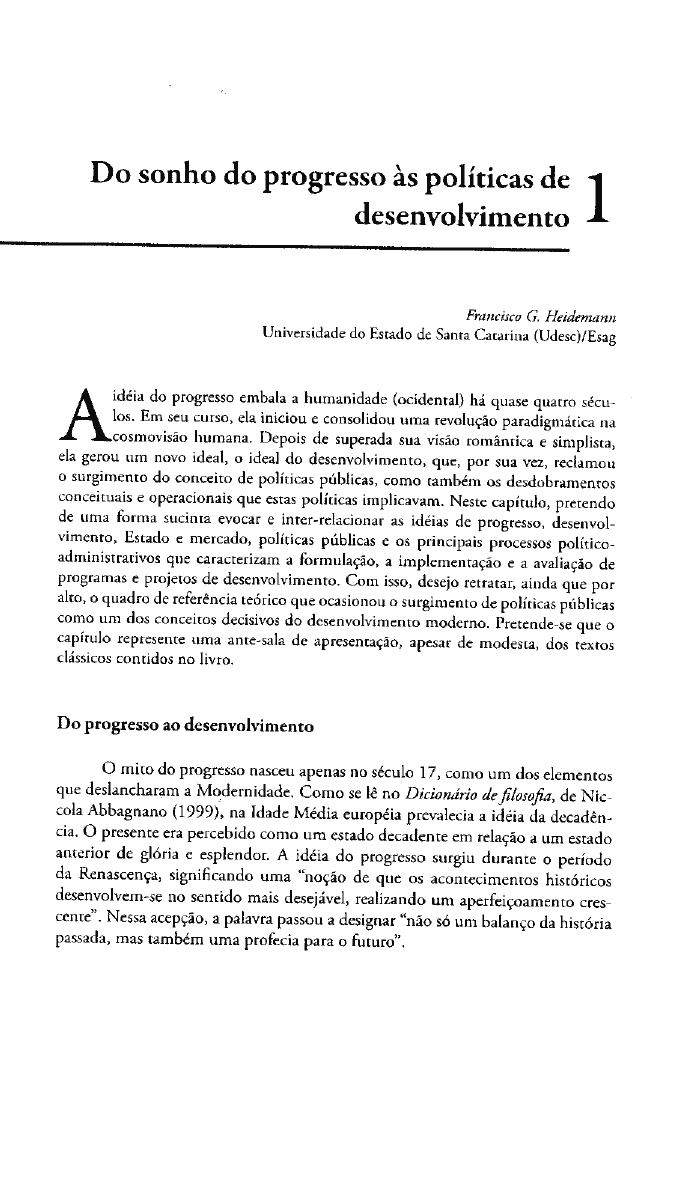 Do sonho do progresso às políticas de desenvolvimento – Francisco G. Heidemann, Capítulo 1 do livro Políticas Públicas e Desenvolvimento – Bases Epistemológicas e modelos de análise. Francisco G. Heidemann e José Francisco Salm, organizadores, Brasília: Editora Universidade de Brasília, 2009 Page 1 Page 2 Page 3 Page 4 Page 5 Page 6 Page 7 Page 8 Page 9