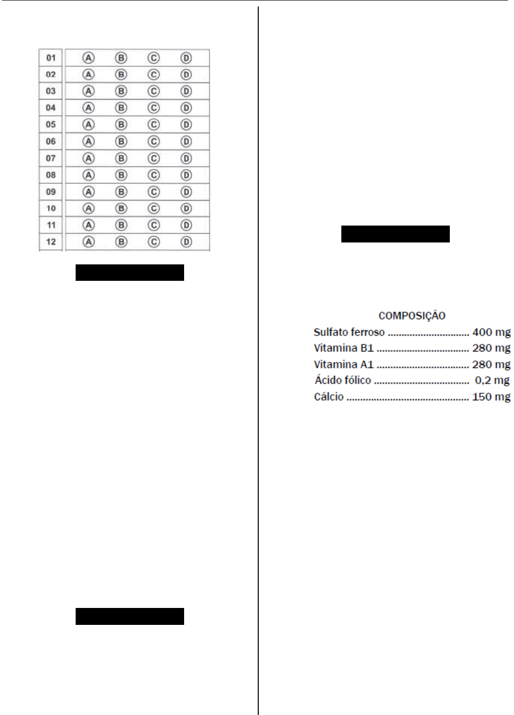 Simulado 02 – 5º Ano Língua Portuguesa 1 Escola: _____________________________ Prof. _______________________________ Nome: _____________________________ D1 ––––––––– QUESTÃO 01 –––––––––– Leia o texto abaixo. O disfarce dos bichos Você já tentou pegar um galhinho seco e ele virou bicho, abriu asas e voou? Se isso aconteceu é porque o graveto era um inseto conhecido como “bicho-pau”. Ele é tão parecido com o galhinho, que pode ser confundido com o graveto. Existem lagartas que se parecem com raminhos de plantas. E há grilos que imitam folhas. Muitos animais ficam com a cor e a forma dos lugares em que estão. Eles fazem isso para se defender dos inimigos ou capturar outros bichos que servem de alimento. Esses truques são chamados de mimetismo, isto é, imitação. O cientista inglês Henry Walter Bates foi quem descobriu o mimetismo. Ele passou 11 anos na selva amazônica estudando os animais. MAVIAEL MONTEIRO, José. Bichos que usam disfarces para defesa. FOLHINHA, 6 NOV. 1993. O bicho-pau se parece com: (A) florzinha seca. (B) folhinha verde. (C) galinho seco. (D) raminho de planta. D6 ––––––––– QUESTÃO 02 –––––––––– Leia o texto abaixo. A Boneca Guilhermina Esta é a minha boneca, a Guilhermina. Ela é uma boneca muito bonita, que faz xixi e cocô. Ela é muito boazinha também. Faz tudo o que eu mando. Na hora de dormir, reclama um pouco. Mas depois que pega no sono, dorme a noite inteira! Às vezes ela acorda no meio da noite e diz que está com sede. Daí eu dou água para ela. Daí ela faz xixi e eu troco a fralda dela. Então eu ponho a Guilhermina dentro do armário, de castigo. Mas quando ela chora, eu não agüento. Eu vou até lá e pego a minha boneca no colo. A Guilhermina é a boneca mais bonita da rua. MUILAERT, A. A boneca Guilhermina. In: __ As reportagensde Penélope. São Paulo: Companhia das Letrinhas, 1997. p. 17. Coleção Castelo Rá-Tim-Bum – vol. 8. O texto trata, PRINCIPALMENTE, (A) das aventuras de uma menina. (B) das brincadeiras de uma boneca. (C) de uma boneca muito especial. (D) do dia-a-dia de uma menina. D1 ––––––––– QUESTÃO 03 –––––––––– Leia o texto abaixo. Bula de remédio VITAMINA COMPRIMIDOS embalagens com 50 comprimidos INFORMAÇÕES AO PACIENTE O Produto, quando conservado em locais frescos e bem ventilados, tem validade de 12 meses. É conveniente que o médico seja avisado de qualquer efeito colateral. INDICAÇÕES No tratamento das anemias. CONTRA-INDICAÇÕES Não deve ser tomado durante a gravidez. EFEITOS COLATERAIS Pode causar vômito e tontura em pacientes sensíveis ao ácido fólico da fórmula. POSOLOGIA Adultos: um comprimido duas vezes ao dia. Crianças: um comprimido uma vez ao dia. LABORATÓRIO INFARMA S.A. Responsável - Dr. R. Dias Fonseca Simulado 02 – 5º Ano Língua Portuguesa 2 CÓCCO, Maria Fernandes; HAILER, Marco Antônio. Alp Novo: análise, linguagem e pensamento. São Paulo:FTD, 1999.v.2.p.184. No texto, a palavra COMPOSIÇÃO indica: (A) as situações contra-indicadas do remédio. (B) as vitaminas que fazem falta ao homem. (C) os elementos que formam o remédio. (D) os produtos que causam anemias. D4 ––––––––– QUESTÃO 04 –––––––––– Leia o texto abaixo. Talita Talita tinha a mania de dar nomes de gente aos objetos da casa, e tinham de ser nomes que rimassem. Assim, por exemplo, a mesa, para Talita, era Dona Teresa, a poltrona era Vó Gordona, o armário era o Doutor Mário. A escada era Dona Ada, a escrivaninha era Tia Sinhazinha, a lavadora era Prima Dora, e assim por diante. Os pais de Talita achavam graça e topavam a brincadeira. Então, podiam-se ouvir conversas tipo como esta: — Filhinha, quer trazer o jornal que está em cima da Tia Sinhazinha! — É pra já, papai. Espere sentado na Vó Gordona, que eu vou num pé e volto noutro. Ou então: — Que amolação, Prima Dora está entupida, não lava nada! Precisa chamar o mecânico. — Ainda bem que tem roupa limpa dentro do Doutor Mário, né mamãe? E todos riam. BELINKY, Tatiana. A operação do Tio nofre: uma história policial. São Paulo: Ática, 1985. A mania de Talita de dar nome de gente aos objetos da casa demonstra que ela é: (A) curiosa. (B) exagerada. (C) estudiosa. (D) criativa. D11 ––––––––– QUESTÃO 05 –––––––––– Leia o texto abaixo. A raposa e as uvas Num dia quente de verão, a raposa passeava por um pomar. Com sede e calor, sua atenção foi capturada por um cacho de uvas. “Que delícia”, pensou a raposa, “era disso que eu precisava para adoçar a minha boca”. E, de um salto, a raposa tentou, sem sucesso, alcançar as uvas. Exausta e frustrada, a raposa afastou-se da videira, dizendo: “Aposto que estas uvas estão verdes.” Esta fábula ensina que algumas pessoas quando não conseguem o que querem, culpam as circunstâncias. (http://www1.uol.com.br/crianca/fabulas/n oflash/raposa. htm) A frase que expressa uma opinião é: (A) “a raposa passeava por um pomar.” (ℓ. 1-2). (B) “sua atenção foi capturada por um cacho de uvas.” (ℓ. 2-3). (C) “a raposa afastou-se da videira” (ℓ. 7-8) (D) “aposto que estas uvas estão verdes” (ℓ. 9-10). D9 ––––––––– QUESTÃO 06 –––––––––– Leia o texto abaixo. EVA FURNARI EVA FURNARI - Uma das principais figuras da literatura para crianças. Eva Furnari nasceu em Roma (Itália) em 1948 e chegou ao Brasil em 1950, radicando-se em São Paulo. Desde muito jovem, sua atração eram os livros de estampas e não causa estranhamento algum imaginá-la envolvida com cores, lápis e pincéis, desenhando mundos e personagens para habitá-los... Suas habilidades criativas encaminharam- na, primeiramente, ao universo das Artes Plásticas expondo, em 1971, desenhos e pinturas na Associação dos Amigos do Museu de Arte Moderna, em uma mostra indivi