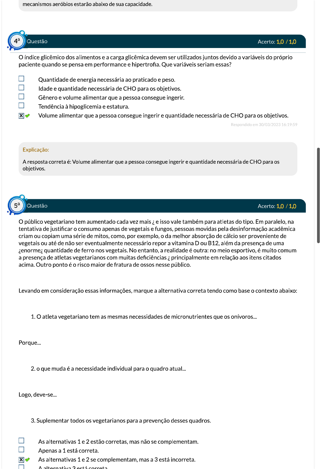 As refeições antes do exercício devem corresponder aos seguintes objetivos:I- Estabilizar o açúcar no sangue; II- Aumentar levemente as reservas de gl