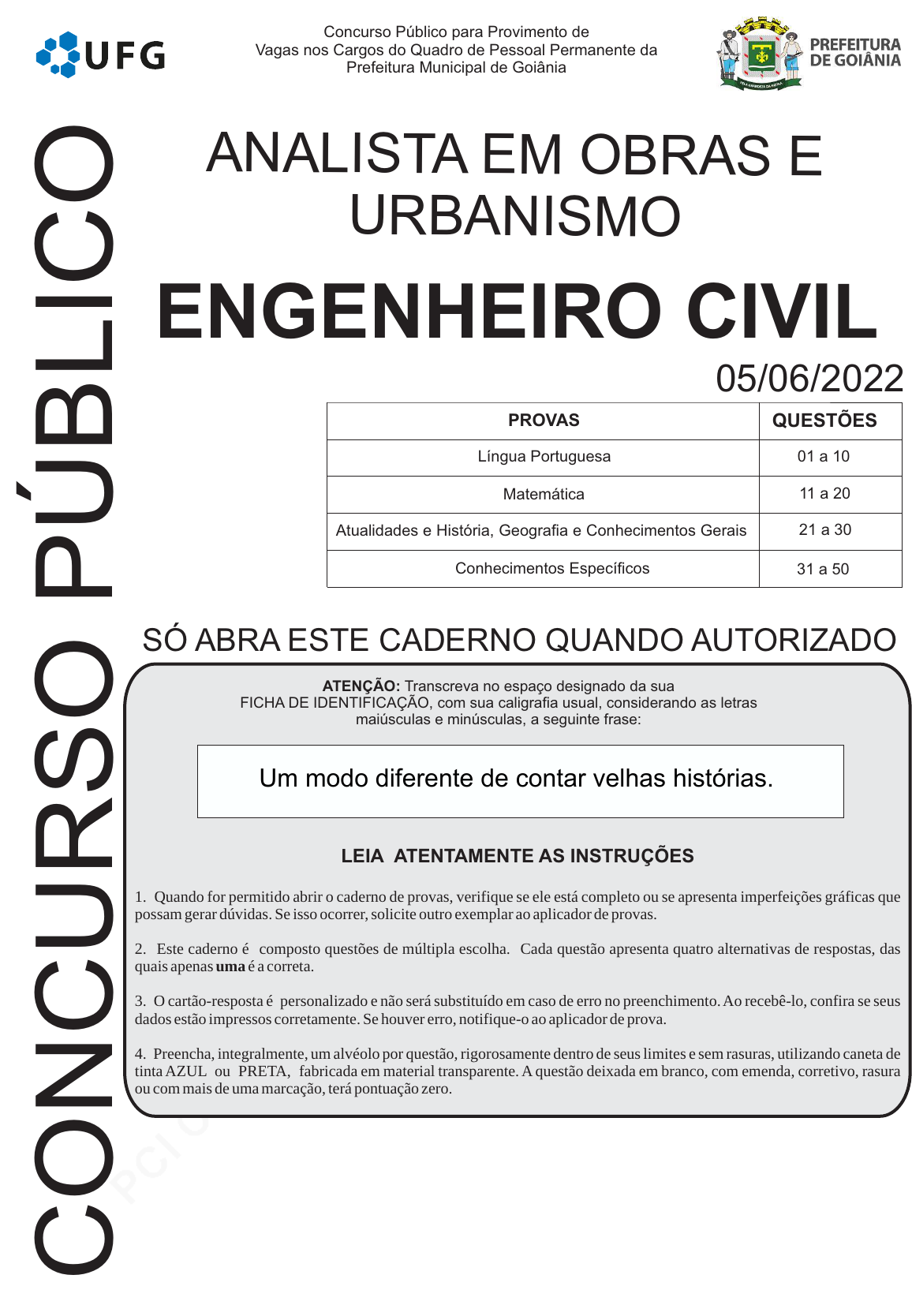 pcimarkpci MDAwMDowMDAwOjAwMDA6MDAwMDowMDAwOmZmZmY6MmRlMTo3ODAw:TW9uLCAwMyBBcHIgMjAyMyAyMToxMzowNyAtMDMwMA== www.pciconcursos.com.br C O N C U R S O P Ú B L IC O Concurso Público para Provimento de Vagas nos Cargos do Quadro de Pessoal Permanente da Prefeitura Municipal de Goiânia ANALISTA EM OBRAS E URBANISMO SÓ ABRA ESTE CADERNO QUANDO AUTORIZADO LEIA ATENTAMENTE AS INSTRUÇÕES 1. Quando for permitido abrir o caderno de provas, verifique se ele está completo ou se apresenta imperfeições gráficas que possam gerar dúvidas. Se isso ocorrer, solicite outro exemplar ao aplicador de provas. 2. Este caderno é composto questões de múltipla escolha. Cada questão apresenta quatro alternativas de respostas, das quais apenas uma é a correta. 3. O cartão-resposta é personalizado e não será substituído em caso de erro no preenchimento. Ao recebê-lo, confira se seus dados estão impressos corretamente. Se houver erro, notifique-o ao aplicador de prova. 4. Preencha, integralmente, um alvéolo por questão, rigorosamente dentro de seus limites e sem rasuras, utilizando caneta de tinta AZUL ou PRETA, fabricada em material transparente. A questão deixada em branco, com emenda, corretivo, rasura ou com mais de uma marcação, terá pontuação zero. ATENÇÃO: Transcreva no espaço designado da sua FICHA DE IDENTIFICAÇÃO, com sua caligrafia usual, considerando as letras maiúsculas e minúsculas, a seguinte frase: 05/06/2022 PROVAS QUESTÕES Língua Portuguesa 01 a 10 Atualidades e História, Geografia e Conhecimentos Gerais 11 a 20Matemática 21 a 30 Conhecimentos Específicos 31 a 50 ENGENHEIRO CIVIL Um modo diferente de contar velhas histórias. pcimarkpci MDAwMDowMDAwOjAwMDA6MDAwMDowMDAwOmZmZmY6MmRlMTo3ODAw:TW9uLCAwMyBBcHIgMjAyMyAyMToxMzowNyAtMDMwMA== www.pciconcursos.com.br UFG/CS CONCURSO PÚBLICO PREFEITURA DE GOIÂNIA/2022 Leia o Texto I a seguir para responder às questões de 01 a 07. Texto I Notícias falsas: os “novos vetores” A proliferação de notícias falsas (“fake news”) está contribuindo tanto quanto os insetos para o retrocesso no combate a velhas e novas epidemias. Segundo uma pesquisa realizada este ano pelo Ibope, sob encomenda da Sociedade Brasileira de Imunizações (SBIm), em parceria com a rede de mobilização social Avaaz, dois terços dos brasileiros acreditam em ao menos uma afirmação imprecisa sobre vacinação. Intitulado “As Fake News estão nos deixando doentes?”, o estudo teve como objetivo investigar a associação entre a desinformação e a queda nas coberturas vacinais verificadas nos últimos anos. O Ibope entrevistou cerca de duas mil pessoas acima de 16 anos, em todos os estados e no Distrito Federal e revelou o peso da ignorância e de informações falsas para o avanço de novas e antigas epidemias. “Esse é de fato um fenômeno novo com o qual temos que aprender a lidar”, constata a professora Celina Turchi. Apesar disso, a pesquisadora da Fiocruz-PE acredita na efetividade da divulgação constante de informações sobre as formas de prevenção e controle das doenças infecciosas transmitidas por vetores, como parte das estratégias de controle de criadouros de mosquitos. “Creio que a população, em geral, compreende mensagens como a importância da manutenção de vasos sem água, tampar vasilhames, colocar garrafas e pneus em posição que não possibilite o acúmulo de água, e tenta manter esse tipo de proteção, particularmente durante as epidemias”. “É um fato complicado, talvez estejamos chegando próximos ao Admirável Mundo Novo, de Aldous Huxley”, comentou a professora Selma Jeronimo sobre as notícias falsas que têm levado pessoas a desacreditarem a ciência e medidas como a vacinação. No entanto, ela que é também presidente da Sociedade Brasileira de Bioquímica (SBBq) se diz otimista e pontua que as pessoas que não acreditam na ciência, na verdade, são minoria. “A ciência está para ficar, nunca tivemos tanta sobrevida para cânceres como hoje”. Jeronimo disse que tem esperança porque há hoje, no mundo, inteligência suficiente para identificar os problemas. “A gente só escuta quem grita. Essa onda de ‘fake news’ é porque uma minoria está gritando mais”. “As fake news confundem a sociedade, prejudicando a tomada de decisão no nível individual e mesmo no coletivo”, diz o professor Wilson Savino. Para combater as notícias falsas, afirma o pesquisador da Fiocruz, é preciso “um ministério de ciência e tecnologia forte, com recursos muito mais importantes que os atuais, que permitam avanços importantes, de base científica e tecnológica, que serão entregues à sociedade, visando à melhoria de vida das pessoas”. Além disso, a longo prazo, políticas de ciência e tecnologia precisam estar associadas a uma educação forte nos seus diversos níveis, com a formação de pensamento crítico, tão importante no desenvolvimento de qualquer sociedade. “Os custos gerados por tais políticas são mínimos comparados aos benefícios para a sociedade”, conclui Savino. Disponível em: <http://jcnoticias.jornaldaciencia.org.br/wp- content/uploads/2019/12/JC_787.pdf>. Acesso em: 23 mar. 2020. (Adaptado). ▬ QUESTÃO 01 ▬▬▬▬▬▬▬▬▬▬▬▬▬▬▬▬▬▬ O caráter inusitado da tese defendida no texto está no fato de que (A) reconhece uma porção majoritária da população como principal responsável pela falta de cumprimento de recomendações sanitárias oficiais. (B) reforça a necessidade de substituição de hábitos sanitários tradicionais por outros veiculados em redes sociais mais atualizadas. (C) atribui a uma prática de comunicação contemporânea força disseminadora de doenças equivalente aos mecanismos biológicos. (D) requer dos cientistas uma atitude mais incisiva no combate às novas epidemias com base na opinião da sociedade civil compartilhada em plataformas virtuais. ▬ QUESTÃO 02 ▬▬▬▬▬▬▬▬▬▬▬