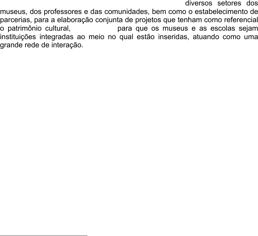 MUSEU E EDUCAÇÃO: conceitos e métodos1 Maria Célia T. Moura Santos2 Resumo Este texto apresenta reflexões embasadas nos conceitos de educação e de processo museológico, considerando-os como suporte para as sugestões que são apresentadas no sentido de motivar e estimular as práticas museológica e educativa, que tenham como produto a construção do conhecimento. É destacada a importância da participação ativa dos diversos setores dos museus, dos professores e das comunidades, bem como o estabelecimento de parcerias, para a elaboração conjunta de projetos que tenham como referencial o patrimônio cultural, contribuindo para que os museus e as escolas sejam instituições integradas ao meio no qual estão inseridas, atuando como uma grande rede de interação. Abstract This paper presents reflections based on the conceptions of education and the museological process, both considered as a support for the suggestions presented here in order to stimulate its practice with the aim of improving knowledge production. It is pointed out the importance of the participation of all the museum staff, teachers and community in elaborating projects together based on the cultural heritage, thus bringing contribution for the integration of museums and schools in the environment in which they are and should work as a big web of interaction. Palavras-chave Museu, escola, educação, patrimônio cultural, museologia, processo museológico, processo educativo. Apresentação Para desenvolvimento do tema, achei por bem lançar um olhar para além dos problemas cotidianos dos nossos museus e das nossas escolas, impregnados da burocracia que sufoca e da falta de estrutura para o desenvolvimento dos 1 Artigo extraído do texto produzido para aula inaugural – 2001, do Curso de Especialização em Museologia do Museu de Arqueologia e Etnologia da USP, proferida na abertura do Simpósio Internacional “Museu e Educação: conceitos e métodos”, realizado no período de 20 a 25 de agosto. 2 * Profa. Aposentada da Universidade Federal da Bahia – Curso de Museologia, Museóloga, Mestre e Doutora em Educação.Atualmente ministra aulas nos Cursos de Especialização em Museologia do MAE/USP e do Museu Antropológico da Faculdade de Ciências Humanas e Filosofia da Universidade Federal de Goiás, no Curso de Especialização em Arte-Educação em Instituições Culturais da Universidade Federal do Amapá e no Mestrado em Museologia Social da Universidade Lusófona de Humanidades e Tecnologias, Lisboa-Portugal. elisa Realce elisa Realce 2 trabalhos. Não que os considere menos importantes! Ponderei que já estamos cansados de “bater na mesma tecla”, causando até um certo esgotamento. Já levamos um bom tempo constatando, avaliando, chorando as nossas mágoas; agora, considero que é mais urgente do que nunca tomar como referencial os diagnósticos já realizados e, com o embasamento necessário, buscar outras estratégias de ação. Optei, também, por fugir das discussões, até certo ponto já esgotadas, da aplicação de métodos e técnicas a, b, c ou d, que em nosso campo de atuação são denominados de educação patrimonial, visitas monitoradas, visitas de estudo, etc., evitando realizar uma análise que se esgota na aplicação da técnica pela técnica. Considero que os métodos e as técnicas a serem utilizados em projetos a serem desenvolvidos pelos museus e pelas escolas, devem ser apoiados nas concepções de educação, de museologia e de museus adotadas pelos sujeitos sociais envolvidos no planejamento e na execução dos mesmos, devendo, pois, ser adaptados aos diferentes contextos, aos anseios e expectativas dos diversos grupos com os quais estejamos atuando, sendo repensados constantemente, modificados e enriquecidos com a nossa criatividade, com a nossa capacidade de ousar, realizando um processo constante de ação e de reflexão, no qual teoria e prática estejam sempre em interação. Achei por bem, portanto, apresentar as minhas reflexões sobre o tema a partir da abordagem dos conceitos de educação e processo museológico, ressaltando a relação entre os dois, para, em seguida, apontar algumas possibilidades de aplicação dos mesmos, nos museus e em outros contextos. Por considerar que os museus são instituições que devem ser alimentadas pela aplicação do processo museológico, portanto, como ação e reflexão, incluindo teoria e prática, optei por centrar a nossa análise no processo que irá embasar as ações museológicas, compreendidas como ações educativas, passíveis de serem aplicadas no interior do museu ou fora dele, conforme salientado anteriormente. Ressalto, entretanto, que os referencias aqui apresentados são considerados, por mim, como “temporários”, ou seja, indicam uma constante necessidade de adaptação e de renovação. A Relação entre a Educação e o Processo Museológico A educação, neste trabalho, está sendo considerada como um processo. O termo processo, que também será utilizado quando da discussão da aplicação das ações museológicas, está sendo considerado em sua origem latina, ou seja: ação de avançar, atividade reflexiva que tem como objetivo alcançar o conhecimento de algo3, seqüência de estados de um sistema que se transforma. Assim, educação significa reflexão constante, pensamento crítico, criativo e ação transformadora do sujeito e do mundo; atividade social e cultural, historico-socialmente condicionada. A educação, portanto, está sendo compreendida como “processo de formação da competência humana, com 3 Japiassú, Hilton. Dicionário Básico de Filosofia / Hilton Japiassú, Danilo Marcondes. Rio de Janeiro: Jorge Zahar Ed.,1996. elisa Sublinhado elisa Sublinhado elisa Sublinhado elisa Sublinhado elisa Realce 3 qualidade formal e política, encontrando no conhecimento inovador a alavanca principal da intervenção ética” (Demo, 1996, p.1). A Museologia e a Educação, considerada
