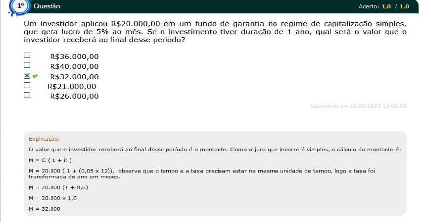 SIMULADO MATEMÁTICA EMPRESARIAL TESTE DE CONHECIMENTO MATEMÁTICA EMPRESARIAL