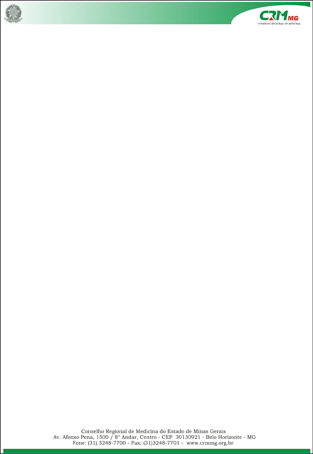 RESOLUÇÃO PLENÁRIA RP Nº 334/2011 (Minas Gerais: Diário de Executivo, Legislativo e Publicações de Terceiros, Belo Horizonte, Cad. 3, p. 3-4, 05 fev. 2012.) O Plenário do Conselho Regional de Medicina do Estado de Minas Gerais, no uso das atribuições que lhe confere o art. 15, alínea “e”, da Lei 3.268, de 30 de setembro de 1957; Resolve aprovar o seguinte REGIMENTO INTERNO DO CONSELHO REGIONAL DE MEDICINA DO ESTADO DE MINAS GERAIS CAPÍTULO I DA CONCEITUAÇÃO, CAMPO DE ATUAÇÃO E NATUREZA JURÍDICA Art. 1º O Conselho Regional de Medicina do Estado de Minas Gerais, (CRMMG), com sede em Belo Horizonte, e jurisdição em todo o Estado de Minas Gerais, constitui autarquia federal, dotada de personalidade jurídica de direito público, com autonomia administrativa e financeira, nos termos da lei n.º 3.268, de 30 de setembro de 1957, regulamentada pelo decreto 44.045, de 19 de julho de 1958. Art. 2º O CRMMG é órgão normatizador, supervisor, fiscalizador, disciplinador e julgador da atividade profissional médica em todo o Estado de Minas Gerais. Parágrafo único. Cabe ao CRMMG zelar, por todos os meios ao seu alcance, pelo perfeito desempenho ético da medicina, por adequadas condições de trabalho, pela valorização do profissional médico e pelo bom conceito da profissão e dos que a exercem legalmente e de acordo com os preceitos do Código de Ética Médica vigente. Art. 3º A atuação do CRMMG abrange todo o trabalho individual e institucional, público e privado, inclusive toda a hierarquia médica que preste, direta ou indiretamente, assistência à saúde. Parágrafo único. Incluem-se no campo de atuação referido neste artigo as competências para autorizar ou suspender, no todo ou em parte, o exercício da atividade, bem como fiscalizar os serviços e ações prestados por pessoas físicas ou jurídicas, nos termos da lei. CAPÍTULO II Competência do CRMMG Art. 4º Compete ao CRMMG: I) deliberar sobre a inscrição e/ou cancelamento no quadro do Conselho dos médicos e pessoas jurídicas que se dediquem ao exercício da Medicina na sua jurisdição; II) manter atualizado o registro dos médicos e pessoas jurídicas, legalmente habilitados, com exercício no Estado de Minas Gerais; III) fiscalizar o exercício profissional de pessoa física e as atividades de pessoas jurídicas de direito público ou privado; IV) conhecer, apreciar e decidir os assuntos atinentes à ética profissional, impondo, quando cabíveis, as penalidades previstas em lei; V) organizar e aprovar o seu regimento interno, a ser enviado ao CFM para aprovação; VI) expedir carteira profissional e cartão de identidade de médico; VII) zelar pelo bom conceito da profissão, pela autonomia do CRMMG e pelo livre exercício legal da Medicina, pela harmonia da classe, bem como pelos direitos dos médicos, respeitados os princípios e diretrizes contidos no presente Regimento; VIII) exercer os atos de jurisdição que por lei lhes sejam atribuídos; IX) representar ao Conselho Federal de Medicina sobre providências necessárias para a regularidade dos serviços e da fiscalização do exercício da profissão; X) promover a eleição de seus Conselheiros e do representante do Estado de Minas Gerais, junto ao Conselho Federal de Medicina, e respectivos suplentes; XI) eleger sua diretoria, na forma estabelecida neste Regimento; XII) determinar aos estabelecimentos de saúde à criação das comissões de ética, na sua jurisdição, observadas as resoluções específicas do CRMMG e CFM. XIII) criar câmaras, comissões e demais instâncias; XIV) criar delegacias regionais, seccionais e representações, com atribuições definidas em Resolução CFM nº 1.367/93; XV) publicar relatórios anuais de seus trabalhos; XVI) requisitar a órgãos da Administração Pública e de instituições privadas, quaisquer documentos, peças, inclusive processuais, ou informações necessárias à instrução de processos ético- profissionais ou sindicâncias; XVII) expedir normas e resoluções para o pleno cumprimento do Código de Ética Médica e o desempenho legal da Medicina em sua jurisdição; XVIII) preservar, zelar e manter o seu patrimônio, bem como autorizar compras; XIX) designar representantes para participar de instituições e órgãos colegiados, quando e onde couber; XX) realizar estudos, pesquisas, assessoria, debates e eventos visando o aperfeiçoamento da ética, do ensino e da prática médica; XXI) aprovar seu orçamento, fiscalizar a aplicação da receita, apreciar o relatório anual e deliberar sobre o balanço e as contas de sua Diretoria, para posterior encaminhamento ao Conselho Federal de Medicina; XXII) fiscalizar a publicidade médica; XXIII) registrar títulos de especialista; XXIV) representar a categoria médica perante os poderes constituídos nas matérias de sua competência; XXV) visar à promoção, proteção e recuperação da saúde dos cidadãos; XXVI) apoiar o desenvolvimento da profissão, da dignidade dos que a exercem e a defesa das dignas condições de trabalho; XXVII) atuar solidariamente com o sistema educacional tanto na promoção e controle da qualidade quanto no aprimoramento permanente da formação médica e atualização técnico-científica, em especial quanto aos aspectos éticos; XXVIII) atuar concorrentemente e articuladamente com o sistema de Vigilância Sanitária, visando ao efetivo controle das condições do exercício da medicina; XXIX) enfatizar a função pedagógica das ações fiscalizadoras, do processo judicante e das medidas disciplinares; XXX) promover articulações com as entidades profissionais que atuam no campo da saúde ou que concorram para ela; XXXI – promover articulações com as entidades representativas dos médicos, visando o fortalecimento da categoria. CAPÍTULO III Da Composição do CRMMG Art. 5º O CRMMG é composto de 21 (vinte e um) Conselheiros efetivos e igual número de suplentes. § 1º Dos membros efetivo