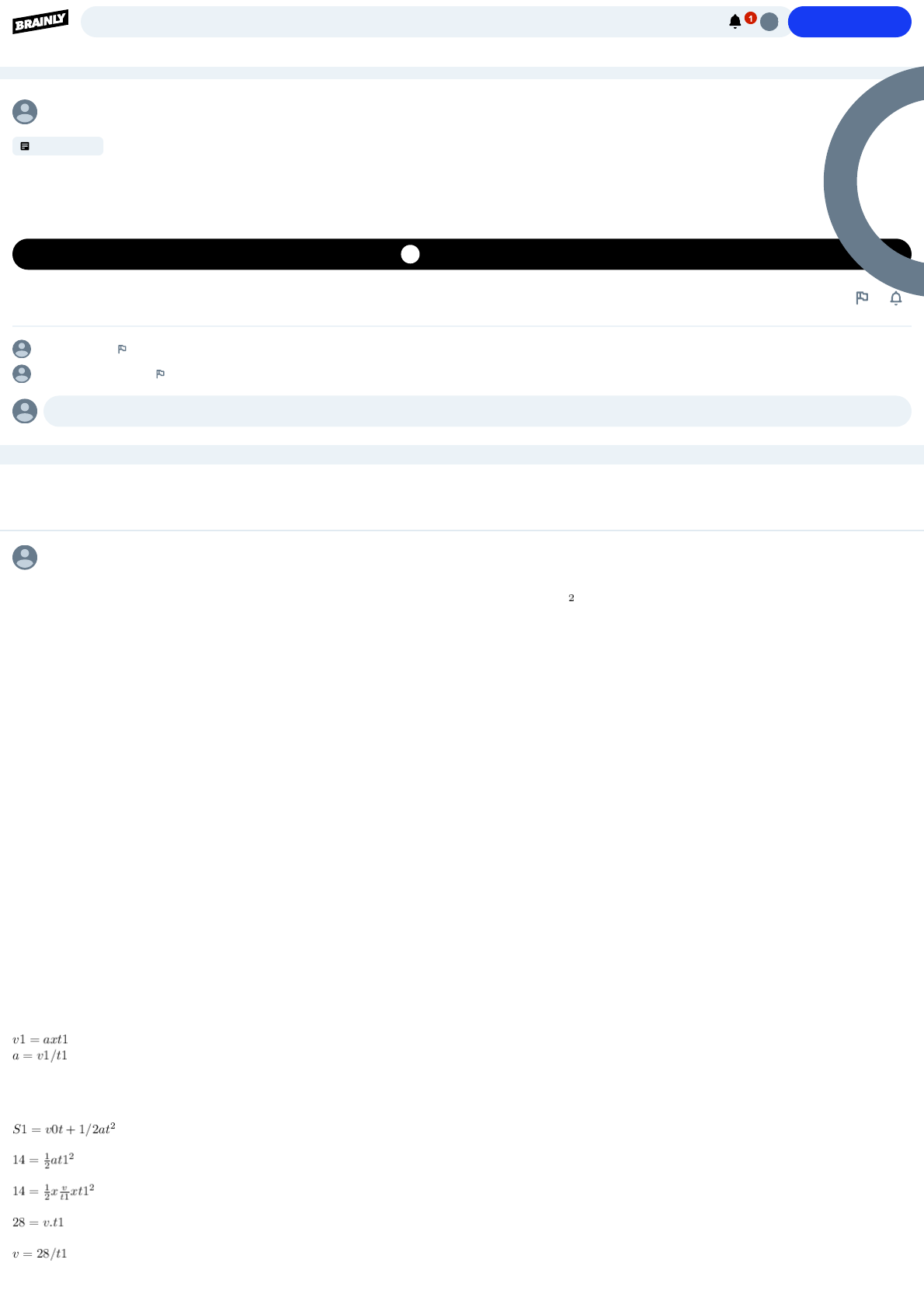 01: Em uma prova de futebol americano, um jogador corre um trecho de 36 m em 4,25 segundos. Se ele alcança a sua velocidade máxima na marca de 14 m com uma aceleração constante e depois mantém esta velocidade no restante da corrida, determine a sua aceleração nos primeiros 14 metros, sua velocidade máxima e o tempo de duração da aceleração. Qual é forma Como faço o cálculo eliasrodrigues8825 03.03.2023 • Física • Ensino superior respondido 1 VER A RESPOSTA Peça mais detalhes ao usuário eliasrodrigues8825 Resposta 5 pessoas acharam útil A partir da distância e tempo de corrida existentes, obtém-se uma aceleração de 4,94 m/s , uma velocidade máxima de 11,76 m/s e um tempo de deslocamento inicial de 2,38 s. Velocidade e Aceleração Deslocamento é a mudança na posição de um objeto medido do ponto inicial ao ponto final e é expresso em magnitude. A velocidade é uma quantidade vetorial que indica a rapidez com que um objeto pode se mover de um lugar para outro. A grandeza vetorial para a velocidade também é conhecida como velocidade. Na física, a velocidade é expressa em unidades de metros por segundo (m/s) ou ms−1. Aceleração é a mudança na velocidade de um objeto que ocorre em uma determinada unidade de tempo. Em inglês, a aceleração é chamada de aceleração. A existência de aceleração em um objeto ou objeto pode ser causada por uma força agindo sobre um objeto ou objeto. É conhecido s total = 36 m, s1 = 14 m, t total = 4,25 s s2 = stot - s1 = 22 m Se houver dois movimentos, a primeira aceleração ocorre até 14 m e depois a uma velocidade constante, então várias equações são usadas como segue. Substitua a equação da aceleração woiyoi Ambicioso • 248 respostas • 7 mil pessoas receberam ajuda Para estudantes Para pais e mães Código de conduta Soluções de Livros Didáticos Pesquise a resposta para qualquer pergunta... PERGUNTAR 1 ASSINAR AGORA https://brainly.com.br/perfil/alexandreebanda-66413257 https://brainly.com.br/perfil/alexandreebanda-66413257 https://brainly.com.br/perfil/ednaelsouzarocha123-40238196 https://brainly.com.br/materia/fisica https://brainly.com.br/materia/fisica/ensino_superior https://brainly.com.br/for-students?source=topbar https://brainly.com.br/for-parents?source=topbar https://brainly.com.br/codigo-de-conduta?source=topbar https://brainly.com.br/livros-didaticos?source=topbar https://brainly.com.br/ https://brainly.com.br/question/add?entry=6 As duas equações de velocidade são substituídas Entenda mais sobre velocidade e aceleração : brainly.com.br/tarefa/2611285 #SPJ1 Confira todas as respostas parecidas OBRIGADO 5 Escreva seu comentário Encontre as soluções dos livros de Física VEJA TODOS 3º Ano 2º Ano 1º Ano Compreendendo a Física - Mecânica, 1º ano 581 soluções Física para o Ensino Médio 3 - Eletricidade - Física Moderna, 3º ano 476 soluções Física para o Ensino Médio 1 - Mecânica, 1º ano 545 soluções Conexões com a Física - Estudo do Calor - Óptica geométrica - Fenômenos Ondulatórios, 2º ano 504 soluções Anúncio 3,3 (6 votos) Faça sua pergunta Para estudantes Para pais e mães Código de conduta Soluções de Livros Didáticos Pesquise a resposta para qualquer pergunta... PERGUNTAR 1 ASSINAR AGORA https://brainly.com.br/tarefa/2611285 https://brainly.com.br/perfil/ednaelsouzarocha123-40238196 https://brainly.com.br/livros-didaticos/b-compreendendo-fisica-mecanica-1o-ensino-medio-9788508163632 https://brainly.com.br/livros-didaticos/b-fisica-ensino-medio-3-eletricidade-moderna-3o-9788547205775 https://brainly.com.br/livros-didaticos/b-fisica-ensino-medio-1-mecanica-1o-9788547205737 https://brainly.com.br/livros-didaticos/b-conexoes-fisica-estudo-calor-optica-geometrica-fenomenos-ondulatorios-2o https://brainly.com.br/for-students?source=topbar https://brainly.com.br/for-parents?source=topbar https://brainly.com.br/codigo-de-conduta?source=topbar https://brainly.com.br/livros-didaticos?source=topbar https://brainly.com.br/ https://brainly.com.br/question/add?entry=6