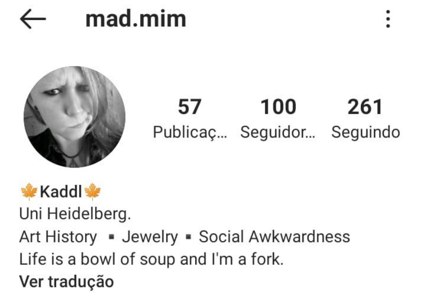 CEPMG AYRTON SENNA PROF. BRUNO SANTOS DISCIPLINA: LÍNGUA INGLESA SEGUNDO ANO CONTEÚDO: SOCIAL NETWORK PROFILES AND PREPOSITIONS PRAZO PARA ENTREGA: ATÉ 05 03 INSTRUÇÕES PARA ENTREGA: A ATIVIDADE DEVE SER MANDADA NO FÓRUM COM O SEGUINTE TÍTULO: ATIVIDADE 2 (SOCIAL NETWORK PROFILES AND PREPOSITIONS) – LÍNGUA INGLESA-PROF. BRUNO SANTOS. VOCÊ PODE ANEXAR UM ARQUIVO WORD / PDF COM AS RESPOSTAS OU ENVIAR FOTO DO CADERNO (NESTE SEGUNDO CASO, A ESCRITA DEVE ESTAR VISÍVEL). AS RESPOSTAS TAMBÉM PODEM SER INSERIDAS DIRETAMENTE NO FÓRUM. 1. Leia os perfis de rede social a seguir: a) Acerca do primeiro perfil, responda em inglês e português: quais são os gostos da usuária? b) Acerca do primeiro perfil, responda em português ou inglês: qual o sentido da frase “Life is a bowl of soup and I’m a fork”? c) Acerca do segundo perfil, responda em português ou inglês: como o humor é gerado pelo texto a seguir: “Laughter is the best medicine. I also can’t afford insurance so it’s like, my only medicine.”? d) Insira a tradução para o português das seguintes palavras (algumas podem ter mais de uma tradução) – medicine, afford, insurance, fork, laughter, laugh, sketch. e) Crie um perfil similar ao primeiro, para você. Escreva três gostos seus e coloque uma frase que represente suas ideologias, crenças ou personalidade. EM INGLÊS. Você não precisa criar o perfil no instagram. Apenas escreva as informações pedidas aqui. 2. Transforme os horários abaixo para as formas em inglês, conforme o exemplo abaixo: 17:40- (forty past five) ( 5:20 PM) (twenty to six) a) 00:30 b) 16:15 c) 20:30 d) 11:40 e) 19:45