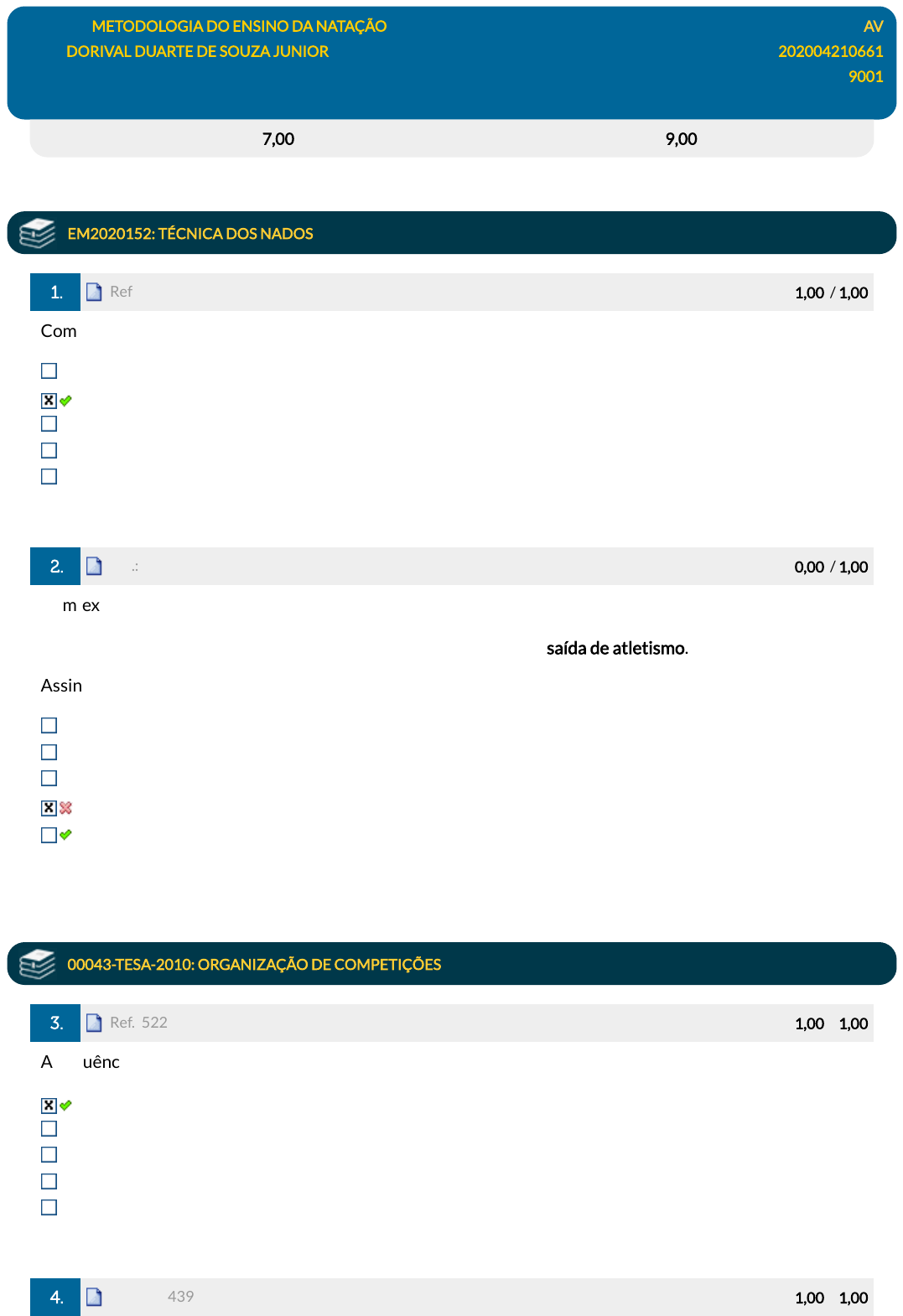 Avaliação: 7,00 pts Nota SIA: 9,00 pts