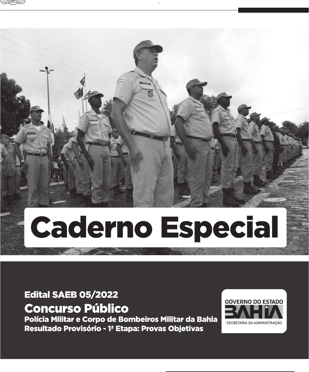 ESPECIAL República Federativa do Brasil - Estado da Bahia SALVADOR, QUARTA-FEIRA, 1º DE MARÇO DE 2023 - ANO CVII - No 23.611 EXEMPLAR DE ASSINANTE - VENDA PROIBIDA DIÁRIO OFICIAL <#E.G.B#763253#1#826216> < # E . G.B#763253#1#826216/> < # E . CÓPIA - Consulte informação oficial em www.dool.egba.ba.gov.br ESPECIAL SALVADOR, QUARTA-FEIRA, 1º DE MARÇO DE 2023 - ANO CVII - No 23.611 República Federativa do Brasil - Estado da Bahia DIÁRIO OFICIAL SECRETARIA DA ADMINISTRAÇÃO G.B#763265#2#826229> PORTARIA SRH/SAEB Nº 70 DE 28 DE FEVEREIRO DE 2023 O SUPERINTENDENTE DE RECURSOS HUMANOS DA SECRETARIA DA ADMINISTRAÇÃO DO ESTADO DA BAHIA, no uso de suas atribuições, tendo em vista o Edital de Abertura de Inscrições - SAEB/05/2022, de 27 de setembro de 2022, publicado no Diário Oficial do Estado da Bahia de 28 de setembro de 2022, para o Concurso Público para Seleção de Candidatos ao Curso de Formação de Soldado da Polícia Militar da Bahia e do Corpo de Bombeiros Militar da Bahia do quadro de pessoal da Polícia Militar da Bahia e do Corpo de Bombeiros Militar da Bahia, RESOLVE: 1. Informar que as respostas de todos os recursos serão levadas ao conhecimento dos candidatos inscritos no Concurso, por meio do site da Fundação Carlos Chagas (www.concursosfcc.com.br), não tendo qualquer caráter didático, e ficarão disponíveis pelo prazo de 07 (sete) dias a contar da data de sua divulgação. 2. Tornar Público o Resultado Provisório da 1ª Etapa - Provas Objetivas, observada a lista em ordem de classificação, em conformidade com o Capítulo 9 do Edital de Abertura de Inscrições SAEB/05/2022, constante no Anexo Único deste Edital. 3. Informar que, a partir da data de publicação desta Portaria, os resultados de todos os candidatos que realizaram as provas poderão ser verificados no site da Fundação Carlos Chagas (www.concursosfcc.com.br) e no site do RHBAHIA (www.rhbahia.ba.gov.br). ADRIANO TAMBONE Superintendente de Recursos Humanos ANEXO ÚNICO CANDIDATOS HABILITADOS EM ORDEM DE CLASSIFICAÇÃO (RESULTADO PROVISÓRIO DA 1ª ETAPA - PROVAS OBJETIVAS) SOLDADO POLÍCIA MILITAR/SOLDADO CORPO DE BOMBEIROS MILITAR Legenda: (N) CANDIDATOS NEGROS. CARGO/QUADRO DE PRAÇAS/SEXO: BPF10 - ALUNO SOLDADO BOMBEIRO MILITAR - FEMININO REGIÃO DE CLASSIFICAÇÃO-MUNICÍPIO/SEDE: REGIÃO 01 - SALVADOR E RMS NÚMERO NOME N O T A OBJ. CLASS 0046330j MARIA LETICIA DA CONCEICAO SILVA(N) 85.00 1 0077771h GABRIELA CARDOSO BULHOES 83.75 2 0047329h LAYLA NATTIELE SOARES DE ABREU 83.75 2 0045801g GISELE GOMES BARRETO(N) 81.25 4 0048153b LUCIANA MARCELLY DE ALBUQUERQUE SILVA 81.25 4 0050492a ESTEFANE DA SILVA DOS SANTOS(N) 80.00 6 0049886f GIOVANNA GABRIELLY CUSTODIO MACEDO 78.75 7 0048798d LARISSA SANTOS BRAZ OLIVEIRA(N) 78.75 7 0048963d ADRIELLE BRITO DA MATTA BASTOS 77.50 9 0050377a IOLANDA ARNOUT PAIXAO 77.50 9 0049553a LAISA NASCIMENTO FIUZA 77.50 9 0045336f RENATA COSTA HOHLENWERGER 77.50 9 0047606h ISABELA SANTANA DA SILVA 76.25 13 0050787i ITANA RODRIGUES FERREIRA 76.25 13 0007231k JAQUELINE CORREIA COSTA(N) 76.25 13 0046736e LOURDES MARIA SANTOS MONTEIRO SOUSA(N) 76.25 13 0049258j ANA BEATRIZ COELHO DA SILVA RIBEIRO 75.00 17 0008174h FERNANDA MEIRELLES MARTINS 75.00 17 0050135j FERNANDA NOVAES REGO(N) 75.00 17 0047066b JACINA SERRA DE FIGUEIREDO CONCEICAO 75.00 17 0047190c MAIARA SANTA ROSA DO ROSARIO ROCHA(N) 75.00 17 0046030i PRISCILA DA HORA NASCIMENTO 75.00 17 0007218h AMANDA DE JESUS SOUSA(N) 73.75 23 0050488j ARIELE DE OLIVEIRA SILVA 73.75 23 0048390e CAMILA SACRAMENTO MELO DE ALMEIDA 73.75 23 0007443d GABRIELA BARBOSA LEAL 73.75 23 0050623a REBECA TEIXEIRA DE ALMEIDA 73.75 23 0050838k ADRIELY MAGALHAES PEIXOTO DE JESUS(N) 72.50 28 0045174f CAROLINE STENDER MORAES SANTANA(N) 72.50 28 0007637f CIBELE CARNEIRO ASSUNCAO 72.50 28 0045688d JESSICA TEIXEIRA MARTINS(N) 72.50 28 0050077k RAQUEL SABACK EVANGELISTA 72.50 28 0034972a BIANCA FRANCA ESPERDIAO DE SOUZA 71.25 33 0048434j CAROLINE JESUS DE SOUSA(N) 71.25 33 0046192b CAROLINE NASCIMENTO VIEIRA 71.25 33 0048215i CLARA SALES NUNES 71.25 33 0050419b FERNANDA CAROLINA AMORIM BATISTA 71.25 33 0006660g FRANCINE LIMA VITORIA 71.25 33 0048738h GABRIELLE SANTANA DOS REIS SOUSA 71.25 33 0050769g SUENNY VENTURINI CHECON 71.25 33 0049533f ANA LUIZA SANTOS SENA 70.00 41 0048430b BRUNA LESSA SILVA 70.00 41 0007606f CLAUDIA MACIEL COSTA 70.00 41 0047804a DALVA ELOIZA SANTOS SILVA(N) 70.00 41 0048783b DOMINIQUE TEIXEIRA PAIM SOUSA(N) 70.00 41 0078256h EDUARDA SANTOS LACERDA(N) 70.00 41 0046419d EMMANUELE MARIA SANTOS PEREIRA(N) 70.00 41 0049003j GABRIELA FERREIRA SANTOS 70.00 41 0035184c JAQUELINE FERREIRA MACIEL 70.00 41 0045972a LUA JULLIE SIMOES ALMEIDA PEREIRA(N) 70.00 41 0045585e NICOLY LIMA E LIMA(N) 70.00 41 0048635i RAQUEL DANTAS DE FIGUEIREDO CAMPOS 70.00 41 0046338d REBECA REGIELI MACIEL DE DEUS(N) 70.00 41 0007347h RUTE CLEIDE SANTOS MOREIRA 70.00 41 0048423e SAMARA MASCARENHAS FERREIRA 70.00 41 0049668g STEFANY VILELA GOMES 70.00 41 0047442d TAYLINE CONCEICAO DE JESUS(N) 70.00 41 0049766g WANDERLEIA LUIZA DE SENA GAMA(N) 70.00 41 0048503c ADRYNNE DA SILVA SENA 68.75 59 0050295j ALEF CYNTILLE CAVALCANTE SILVA 68.75 59 0007906g AMANDA CRISTINA MATOS DA SILVA(N) 68.75 59 0048575f HELEN HELENITA PEREIRA SANTOS(N) 68.75 59 0049359e INES MARIA DOS SANTOS GONDIN FRANCA(N) 68.75 59 0046624e JADE OLIVEIRA DE SANTANA AZEVEDO(N) 68.75 59 0050987f JOANNA MARIA HAUI GONCALVES 68.75 59 0045573i LARISSA EMILY SANTOS BARRETTO 68.75 59 0007478a LORENNA DA SILVA AZEVEDO(N) 68.75 59 0046442j NATALIA ERDENS MARON DE FREITAS 68.75 59 0049998f RAYNAT SANTOS CORREIA 68.75 59 0050479i RENATA GONCALVES RIBEIRO DOS SANTOS(N) 68.75 59 0047233f SUSANA CAROLINE MAIA DA SILVA(N) 68.75 59 0048005i VALESCA DOS SANTOS REBOUCAS(N) 68.75 59 0045595h ANNA GABRIELLY SANTOS DE ALMEIDA(N) 67.50 73 0050298e ARIANIE SANTANA DE OLIVEIRA 67.50 73 0048646c ATENA LIRIEL SANTOS SOUZA 67.50 73 0045900i DANIELLE MOTA DE SOUZA LIMA 67.50 73 0046169g HELAINE MARINA TEIXEIRA BAR