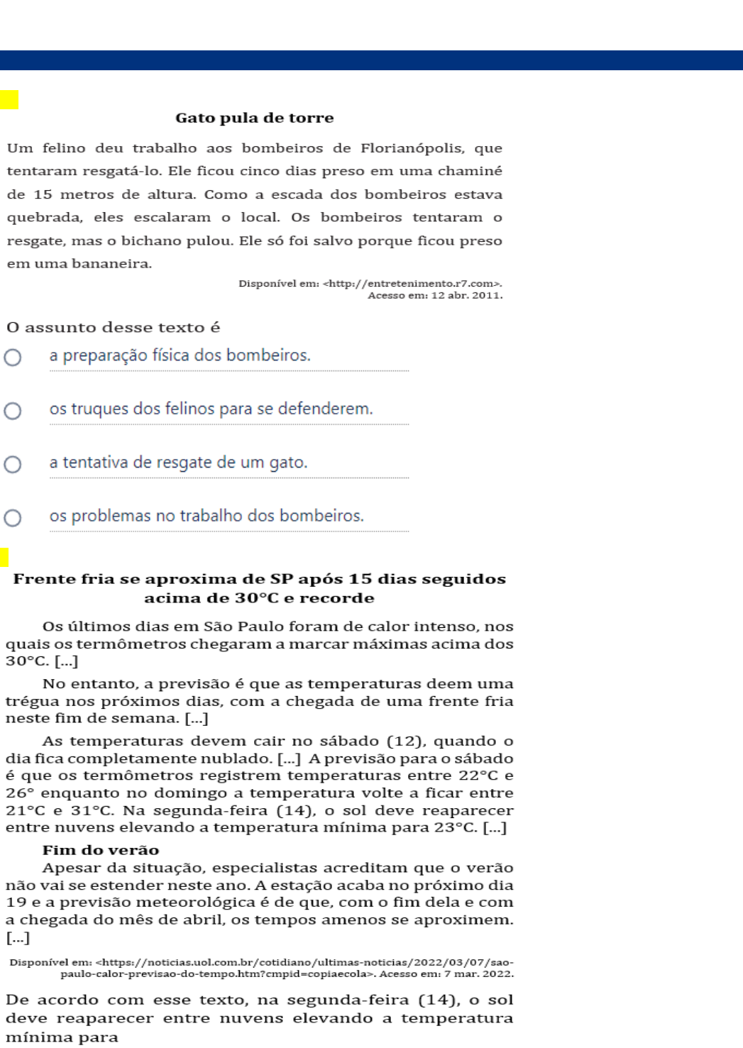 PROVA PAULISTA - LPT/CIE - 1º BIM - 6º ANO 03/04 Seção 1 LÍNGUA PORTUGUESA 1 - Leia o texto para responder à questão. 2- Leia o texto para responder à questão. 3- Leia o texto para responder à questão. 4- Leia o texto para responder à questão. 5- Leia o texto para responder à questão. 6- Leia o texto para responder à questão. 7- Leia o texto para responder à questão. 8- 9- Leia o texto para responder à questão. 10- Leia o texto para responder à questão. 11- Leia o texto para responder à questão. 12- Leia o texto para responder à questão. 13- Leia o texto para responder à questão. 14- Leia o texto para responder à questão. 15- Leia o texto para responder à questão. 16- Leia o texto para responder à questão. 17- Leia o texto para responder à questão. 18- Leia o texto para responder à questão. 19- Leia o texto para responder à questão. 20- Leia o texto para responder à questão. 21- Leia o texto para responder à questão. 22- eia o texto para responder à questão. 23 - Leia o texto para responder à questão. 24- Leia o texto para responder à questão. 25 -Leia o texto para responder à questão.