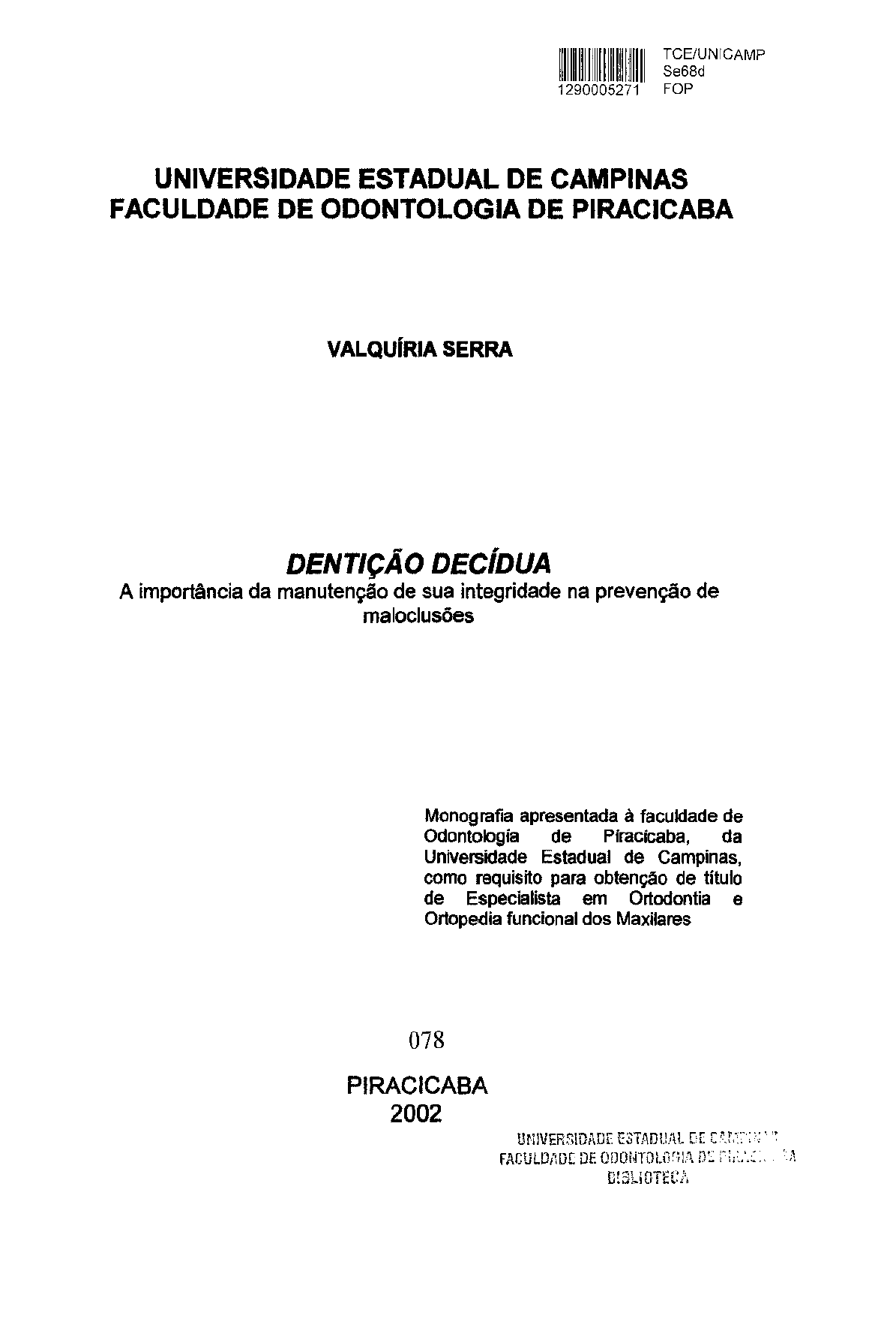 TCE/UNICAMP Se68d FOP UNIVERSIDADE ESTADUAL DE CAMPINAS FACULDADE DE ODONTOLOGIA DE PIRACICABA VALQuíR’ASERRA DENTIÇÃO DECíDUA A impOrlância da manuten여。 de sua integridade na preven혀。 de maloclusëes Monografia apresentada à faculdade de Odontologia de Piracicaba, da Universidade Estadual de Campinas, como requisito para obtenção de titulo de Especialista em Ortodontia e 。rtopedia funcional dos Max‘lares 078 PIRACICABA 2002 umVER~mi\Dε E;~TAmb1L ['[ c n FAGULDl'iO[ DE O!JOìHOLG';!':l. n:. 끼i' .•. _ 끼 C!SLiG?ECι UNIVERSIDADE ESTADUAL DE CAMPINAS FACULDADE DE ODONTOLOGIA DE PIRACICABA VALQuíRIA SERRA DENTlÇÃO DECíDUA A importância da manuten혀。 de sua integridade na preven영。 de maloclusões Monografia apresentada à faculdade de 。donl이ogia de Piracicaba, da Universidade Estadual de Campinas, como reqωsito para oblenção de titulo de Especialista em Ortodontia e Ortopedia funcional dos Maxilares Orien뻐dora: Profa. Dra. Cecilia Gatti Guirad。 PIRACICABA 2002 <•- ’ 써.' CIa뼈l↓ 1 %·‘ “‘” /* 펀1 j ’· fT뼈.、、 Unidade - FOPiUN!CAMP TCEl 니 N!C~rnP ιι 0..!?μι Ed V이 ” ““Ex Tombo ... ;_;.~_::r.i,.‘ .... ’‘ C口 o[희 Proc 4b P AtF니 I!þ,).ι) Pre9o QJ$4L씬 .... D려a ):iÇ,;'Uνιι Regisη。+~::r,?ε L Ficba Catalográfica Serra, Va1quíria Sε68d Dε따l여odεcídua ; a impor떠ncia da manut,。때.0 de sua ìntegridade na prevenção de m떠oclusðes. / Valquíria S응rra. - Piracicaba, SP : [s.n.], 2002 53f. : jl Orientadora : 'Prof' Dr" Cecília Gatti Guirado Monograδa (Especializa여0) • Universidade E었adual de Campinas, Faculdade de Odontologia de Piracicaba 1. Ortodontia. 1. Guirado, C∞ília Gatti. 11. Unîvεrsîdade E앙adu띠 de Campinas. Faculdadε de Odontologia dε Piracicaba 1II. Título Ficha cata1야맺fica el빼or혀ap엉aBφHotec삶ia Marilene Gîrello CRB/8-6159, da Bibli이ecadaFaαùdadε de Odonω.Jogia de Piracîcaba - UNICAf\.1P A Deus, fonte de amor, a minha gratidão. Agradeço a meus pais pelo apoio, incentivo e por ajudar a transfonnar um sonho em realidade; ao meu noivo Fåbio pel。 amor e comprl ‘ .ensã。 Agradecimentos À minha orientadora Prof. Dra . Cecília Gatti Guirado, pelo carinho, amizade, e dedica여o no transcorrer deste trabalho Ao Coordenador do Curso de especialização em 0π。dontia e Ortopedia Funcional dos Maxilares da FOP - Unicamp, Prof. Dr. Darcy Flávio Nouer, por guiar nosso leme durante toda a travessia sem nos deixar naufragar Às profs Dr'" Maria Helena Castro de Almeida e Maria Beatriz B. A Magnani, pela integridade na transmissão dos conhecimentos e ensinamentos À Nilza, e a Lícia cuja amizade tem - me amparado nas lutas de cada dia Aos colegas do curso de especializa행o pela amizade e companheirismo. Ao João por ter mostrado-me 0 caminho do aperfeiçoamento À Lígia e ao Roberto pela colaboração durante todo 0 curso. Ás demais pessoas que, embora não citadas que participaram de alguma forma, contribuindo para realiza혀o deste trabalho, meu agradeciment。 “。 dentista não pode esquecer que a criança é um aduJto em formação e que todo adulto tem sempre em si muito da criança que foi" Prof_ Dr_ Alael de Paiva Lino SUMARIO Lista de ilustrações 7 Resumo 8 Abstract 10 1 Introdução 12 2 Revisão de Literatura 15 3Discussã。 40 4 Conclusã。 44 Refen흩ncias Bibliográficas 46 LIST A DE ILUSTRAÇÕES F‘gura 1 - Conlalo poslerior dos rodeles gengivals. 17 Figura 2 - Relaçäo lerminal dos m미ares declduos em plano 1910. 22 Figura 3- R에ação lerminal dos moiares declduos em degrau mesial. 22 Figura 4 - Rela혀o lerminal dos molares declduos em degrau dislal. 23 F‘gura 5 - Arco lipo I de Baume. 24 Figura 6 - Arco lipo 11 de Baume. 25 Figura 7 - Mordida cruzada poslerior direfta. 27 Figura 8 - Perda denlária anlerior precoce 30 Figura 9 - Radiografia periapical inferior esquerda, pe여a precoce do denle 75. 31 F엠ura 10 - Sucção não - nutritiva da chupela acarrelando maloclusão. 32 Figura 11 - Face caraclerislica de pacienle com sindrome de respirador bucal 34 Figura 12 - Mordida aberta anlerior. 35 Figura 13 - Anqunose denloalveolar dente 74. 36 Figura 14 - Mesiodens. 39 Resumo Algumas alterações encontradas na dentição decídua se não intervindas ou bem acompanhadas podem vir a se tornar maloclusões na dentição permanente; com agravante n。 prognóstîco do caso. Desta maneira 0 presente estudo se faz necessário para abordar não só 0 desenvolvimento da dentiçåo decídua como alertar para possíveis alterações no seu desenv이씨mento a fim de prevenir futuras maloclusões PALAVRAS CHAVES: Prevenção, maloclusãα decídua Abstract Some changes found in primary dentition if you don't interfere or be wel1 f이lowed may become a maloclusion in permanent dentition Thereby the present study is necessary to explain the development 01 primary dentition and to be alert to some changes that could happen preventing lurther malocclusions Key World: Decíduos, prevention 12 1 INTRODUÇAO 13 A lendência alual no campo da saúde odonlol6gica é dar ênfase a um atendimenlo preventivo que se inicia já anlerior ao primeiro ano de vida; desta forma é necessårio que odonlopediatras e clínicos gerais tenham 。 conhecimento necessário sobre as caracteristicas morfoi6gicas de uma cavidade bucal considerada denlro dos padröes da normalidade desde 0 nascimento atξ 。 estabelecimento da oclusão definitiva. o conhecimento desse padrãO morfol6gico e das possiveis aileraçðeS da oclusão na dentição decídua é de fundamental impor!ãncia para 0 desenvolvimento e estabelecimento da oclusão na dentìção permanente Para TWEED, em 1963, 0 conhecimento gradualmente, substituirá a mecãnica severa e em um futuro muìto pr6xìmo, a grande maiorìa dos tratamentos or!odõnticos se desenvolverá durante 0 período da dentìçã。 mista, do crescimenlo e desenvolvìmento craniofacial, antes da