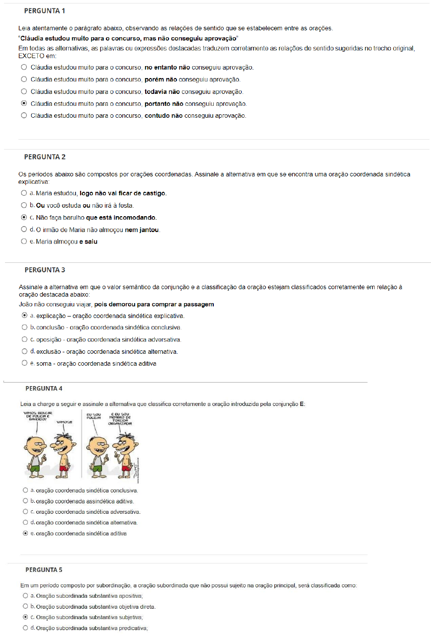 7) Classifica-se o trecho como um período composto por a) subordinação com três orações. b) coordenação com quatro orações. c) coordenação e subord...