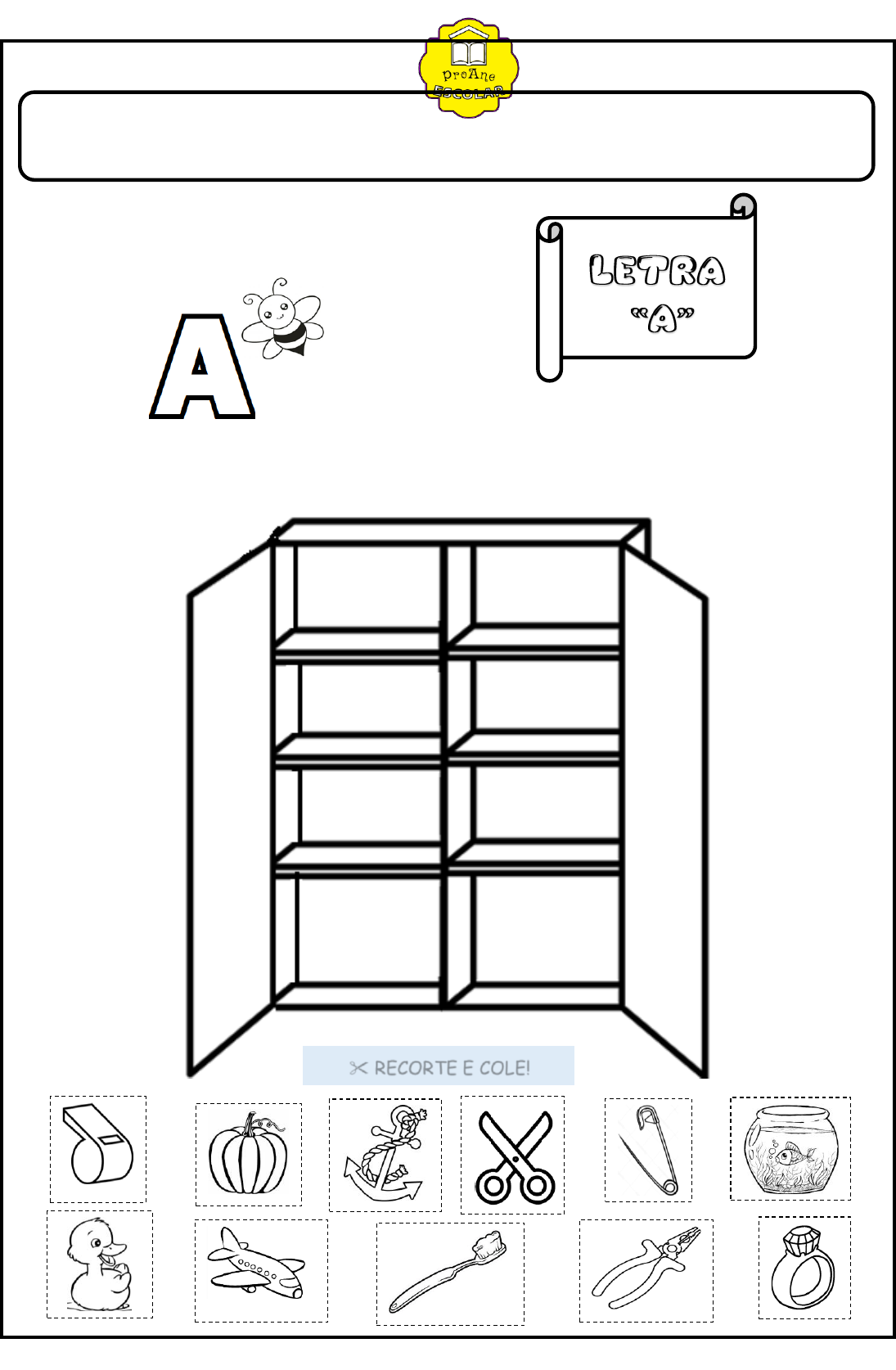 © Todos os direitos reservados ǀ https://proaneescolar.com.br/ AJUDE A ABELHINHA A GUARDAR NO ARMÁRIO QUE ESTÁ VAZIO, SEUS MATERIAIS QUE INICIAM COM A LETRA “A”. NOME: ____________________________DATA: ____/_____/___ RECORTE E COLE! RMÁRIO © Todos os direitos reservados ǀ https://proaneescolar.com.br/ PINTE APENAS OS CÍRCULOS DAS FIGURAS CUJO OS NOMES INICIAM COM A LETRA “B”. ORBOLETA NOME: ____________________________DATA: ____/_____/___ © Todos os direitos reservados ǀ https://proaneescolar.com.br/ AJUDE A BORBOLETINHA A GUARDAR NO BAÚ QUE ESTÁ VAZIO, SEUS OBJETOS QUE INICIAM COM A LETRA “B”. NOME: ________________________________DATA: ____/_____/___ RECORTE E COLE! AÚ © Todos os direitos reservados ǀ https://proaneescolar.com.br/ PINTE APENAS OS CÍRCULOS DAS FIGURAS CUJO OS NOMES INICIAM COM A LETRA “C”. NOME: ______________________________DATA: _____/_____/____ ORUJA © Todos os direitos reservados ǀ https://proaneescolar.com.br/ AJUDE O CANGURU A GUARDAR NA CAIXA QUE ESTÁ VAZIA, SEUS OBJETOS QUE INICIAM COM A LETRA “C”. NOME: ________________________________DATA: ____/_____/___ RECORTE E COLE! ANGURU © Todos os direitos reservados ǀ https://proaneescolar.com.br/ K PINTE APENAS OS CÍRCULOS DAS FIGURAS CUJOS OS NOMES INICIAM COM A LETRA “D”. NOME: ________________________________DATA: ____/_____/___ RAGÃO © Todos os direitos reservados ǀ https://proaneescolar.com.br/ AJUDE DANDARA A COLOCAR NO DIÁRIO QUE ESTÁ VAZIO, SUAS FIGURAS QUE INICIAM COM A LETRA “D”. NOME: ________________________________DATA: ____/_____/___ RECORTE E COLE! ANDARA © Todos os direitos reservados ǀ https://proaneescolar.com.br/ PINTE APENAS OS CÍRCULOS DAS FIGURAS CUJOS OS NOMES INICIAM COM A LETRA “E”. NOME: ______________________________DATA: _____/_____/____ STRELA © Todos os direitos reservados ǀ https://proaneescolar.com.br/ AJUDE A ESTRELINHA A GUARDAR NA ESTANTE SEUS OBJETOS QUE INICIAM COM A LETRA “E”. NOME: ________________________________DATA: ____/_____/___ RECORTE E COLE! STANTE © Todos os direitos reservados ǀ https://proaneescolar.com.br/ PINTE APENAS OS CÍRCULOS DAS FIGURAS CUJOS OS NOMES INICIAM COM A LETRA “F”. NOME: _______________________________DATA: _____/_____/____ LOR © Todos os direitos reservados ǀ https://proaneescolar.com.br/ RECORTE E COLE NAS FOLHAS SOMENTE AS FIGURAS QUE INICIAM COM A LETRA “F”. NOME: ________________________________DATA: ____/_____/___ RECORTE E COLE! OLHA © Todos os direitos reservados ǀ https://proaneescolar.com.br/ PINTE APENAS OS CÍRCULOS DAS FIGURAS CUJOS OS NOMES INICIAM COM A LETRA “G”. NOME: _______________________________DATA: _____/_____/____ ATO © Todos os direitos reservados ǀ https://proaneescolar.com.br/ RECORTE E COLE NAS GAIOLAS AS FIGURAS ABAIXO QUE INICIAM COM A LETRA “G”. NOME: ________________________________DATA: ____/_____/___ AIOLA © Todos os direitos reservados ǀ https://proaneescolar.com.br/ PINTE DE AZUL OS CÍRCULOS DAS FIGURAS QUE INICIAM COM A LETRA “H” E DE VERMELHO AS QUE INICIAM COM A LETRA “I”. NOME: _______________________________DATA: _____/_____/____ IDRANTE GLU © Todos os direitos reservados ǀ https://proaneescolar.com.br/ PINTE DE AMARELO OS CÍRCULOS DAS FIGURAS QUE INICIAM COM A LETRA “J” E DE AZUL AS QUE INICIAM COM A LETRA “K”. NOME: ______________________________DATA: _____/_____/____ ABUTI ARATÊ © Todos os direitos reservados ǀ https://proaneescolar.com.br/PINTE APENAS OS CÍRCULOS DAS FIGURAS QUE INICIAM COM A LETRA “L”. NOME: ______________________________DATA: _____/_____/____ ÁPIS © Todos os direitos reservados ǀ https://proaneescolar.com.br/ PINTE DE VERDE AS FIGURAS QUE INICIAM COM A LETRA “M” E DE VERMELHO AS QUE INICIAM COM A LETRA “N”. NOME: ______________________________DATA: _____/_____/____ ORCEGO AVIO © Todos os direitos reservados ǀ https://proaneescolar.com.br/ OLAVINHO PRECISA DE SUA AJUDA PARA ENCONTRAR AS FIGURAS QUE INICIAM COM A LETRA “O”. ENCONTRE-AS, RECORTE E COLE NOS ÓCULOS. NOME: ________________________________DATA: ____/_____/___ RECORTE E COLE! RELHÃO © Todos os direitos reservados ǀ https://proaneescolar.com.br/ PINTE APENAS OS CÍRCULOS DAS FIGURAS CUJOS OS NOMES INICIAM COM A LETRA “P”. NOME: _______________________________DATA: _____/_____/____ EIXE © Todos os direitos reservados ǀ https://proaneescolar.com.br/ PINTE DE LARANJA AS FIGURAS QUE INICIAM COM A LETRA “Q” E DE ROSA AS QUE INICIAM COM A LETRA “R”. UATI NOME: ______________________________DATA: _____/_____/____ Ã © Todos os direitos reservados ǀ https://proaneescolar.com.br/ PINTE APENAS OS CÍRCULOS DAS FIGURAS CUJO OS NOMES INICIAM COM A LETRA “S”. NOME: _______________________________DATA: _____/_____/____ ANFONA © Todos os direitos reservados ǀ https://proaneescolar.com.br/ ESOURA VEJA AS FIGURAS ABAIXO, RECORTE E COLE NA TARTARUGA APENAS AS FIGURAS QUE INICIAM COM A LETRA “T”. NOME: ________________________________DATA: ____/_____/___ RECORTE E COLE! © Todos os direitos reservados ǀ https://proaneescolar.com.br/ RECORTE E COLE NA UVA APENAS AS FIGURAS QUE INICIAM COM A LETRA “U”. RECORTE E COLE! NOME: ________________________________DATA: ____/_____/___ RNA © Todos os direitos reservados ǀ https://proaneescolar.com.br/ PINTE APENAS OS CÍRCULOS DAS FIGURAS CUJOS OS NOMES INICIAM COM A LETRA “V”. NOME: _______________________________DATA: _____/_____/____ ARINHA © Todos os direitos reservados ǀ https://proaneescolar.com.br/ PINTE DE VERDE O CÍRCULO DAS FIGURAS QUE INICIAM COM A LETRA “W”, DE VERMELHO AS QUE INICIAM COM A LETRA “X”, DE MARROM AS QUE COMEÇAM COM “Y” E AZUL AS QUE INICIAM COM “Z”. AZÁ NOME: _______________________________DATA: _____/_____/____ © Todos os direitos reservados ǀ https://proaneescolar.com.br/ SITES UTILIZADOS: PESQUISA DE IMAGENS: https://www.google.com/ PARA MAIS ATIVIDADES E DICAS ACESSE O SITE: https
