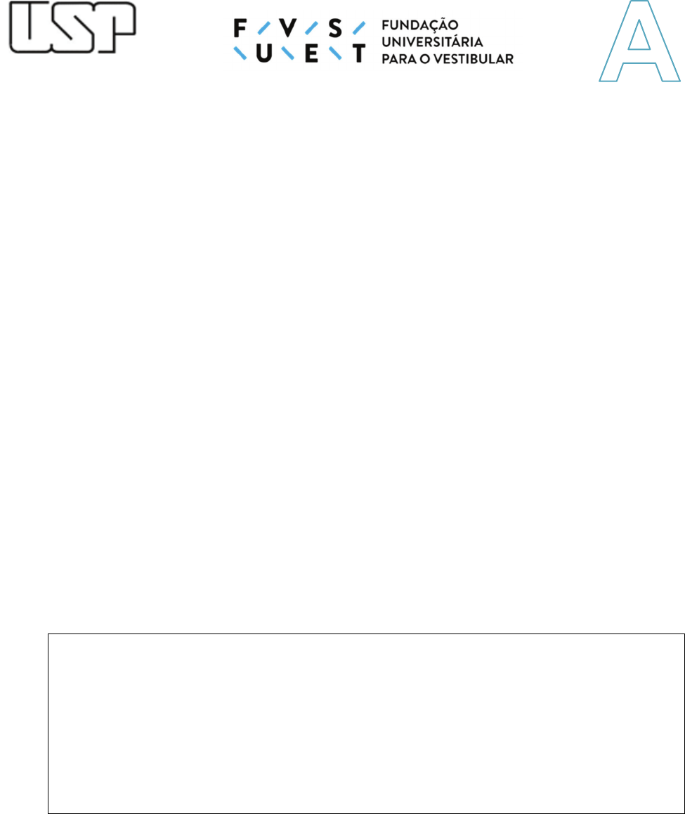 ESTE CADERNO CONTÉM TODAS AS 36 QUESTÕES DO 2º DIA DE PROVA, OU SEJA, 06 QUESTÕES DE CADA UMA DAS DISCIPLINAS: MATEMÁTICA (M), FÍSICA (F), QUÍMICA (Q), BIOLOGIA (B), GEOGRAFIA (G) E HISTÓRIA (H). DE ACORDO COM A CARREIRA ESCOLHIDA, NO 2º DIA DE PROVA O CANDIDATO RECEBEU UM CADERNO CONTENDO SOMENTE 12 QUESTÕES: 06 QUESTÕES DE DUAS DISCIPLINAS OU 04 QUESTÕES DE TRÊS DISCIPLINAS (NESTE CASO, SEMPRE AS QUATRO PRIMEIRAS DE CADA DISCIPLINA) OU 03 QUESTÕES QUATRO DISCIPLINAS (NESTE CASO, SEMPRE AS TRÊS PRIMEIRAS DE CADA DISCIPLINA). Universidade de São Paulo Brasil PROVA DE SEGUNDA FASE 2º DIA Instruções 1. Só abra este caderno quando o fiscal autorizar. 2. Verifique se o seu nome está correto na capa deste caderno. Informe ao fiscal de sala eventuais divergências. 3. Durante a prova, são vedadas a comunicação entre candidatos e a utilização de qualquer material de consulta e de aparelhos de telecomunicação. 4. Duração da prova: 4 horas. O(A) candidato(a) poderá retirar-se da sala definitivamente apenas a partir das 15 h. Não haverá tempo adicional para transcrição de respostas, que deverão ser redigidas em língua portuguesa. 5. O(A) candidato(a) deverá seguir as orientações estabelecidas pela FUVEST a respeito dos procedimentos de biossegurança adotados para a aplicação deste Concurso Vestibular. 6. Lembre-se de que a FUVEST se reserva ao direito de efetuar procedimentos adicionais de identificação e controle do processo, visando a garantir a plena integridade do exame. 7. Após a autorização do fiscal da sala, verifique se o caderno está completo. Informe ao fiscal de sala eventuais divergências. 8. Os espaços em branco nas páginas dos enunciados podem ser utilizados para rascunho. O que estiver escrito nesses espaços não será considerado na correção. 9. A resposta de cada questão deverá ser escrita exclusivamente no quadro a ela destinado, utilizando caneta esferográfica de tinta azul. Nas questões que exigem cálculo, é indispensável indicar a resolução na folha de respostas. 10. Ao final da prova, é obrigatória a devolução deste caderno de questões. Declaração Declaro que li e estou ciente das informações que constam na capa desta prova, bem como dos avisos que foram transmitidos pelo fiscal de sala. ___________________________________________________ ASSINATURA O(a) candidato(a) que não assinar a capa da prova será considerado(a) ausente da prova. M01 Uma sequência de números naturais é construída da seguinte forma: seu primeiro termo 𝑡 é escolhido como sendo um número natural qualquer. Se 𝑡 for par, então 𝑡 = e, se 𝑡 for ímpar, então 𝑡 = 3𝑡 + 1. Os termos seguintes 𝑡 são obtidos de acordo com essa mesma regra. Por exemplo, se 𝑡 = 3, então 𝑡 = 10, 𝑡 = 5, 𝑡 = 16 e assim por diante. Dessa forma, a partir de 𝑡 ∈ ℕ, para cada 𝑛 ∈ ℕ, 𝑛 ≥ 2, a sequência 𝑡 é definida como 𝑡 = 𝑡 2 , . se 𝑡 for par3𝑡 + 1 , . se 𝑡 for ímpar . a) Para 𝑡 = 22, determine 𝑡 . b) Determine todos os possíveis 𝑡 para os quais 𝑡 = 10. c) Para 𝑡 = 26, determine 𝑡 . M02 Uma função 𝑓 está definida no intervalo [−2 , 9] da seguinte forma: para 𝑥 ∈ [−2 , 2], 𝑓 leva 𝑥 em 𝑥 e, no restante do domínio, o seu gráfico é formado por dois segmentos de reta conforme mostra a figura. a) Apresente todos os intervalos do domínio da função 𝑓 nos quais ela é crescente. b) Determine os valores de 𝑓 nos pontos 𝑥 = − , 𝑥 = e 𝑥 = 8. c) Para cada valor de 𝑥 ∈ ]0 , 9[ , considere o retângulo 𝑅 com vértices nos pontos 𝐴 = (𝑥 , 0), 𝐵 = (9 , 0), 𝐶 = (9 , 𝑓(𝑥)) e 𝐷 = 𝑥 , 𝑓(𝑥) . Escreva a expressão da área de 𝑅 , em função de 𝑥, para 𝑥 no intervalo ]0 , 9[. 0 1 2 3 4 5 − − − − 0 1 2 3 4 5 − − − − [35] F U V E S T 2 02 2 P R O V A 2 F U V E S T 2 02 2 P R O V A 2 M03 Considere o conjunto 𝐶 de pontos do plano cartesiano da forma (𝑚 , 𝑛), com 𝑚 e 𝑛 pertencentes a {3, 4, 5, 6, 7, 8, 9}. a) Apresente todos os pontos (𝑚 , 𝑛) de 𝐶 para os quais o produto 𝑚 ∙ 𝑛 é maior do que 60. b) Sorteando-se um ponto (𝑚 , 𝑛) de 𝐶, com iguais probabilidades para todos os pontos, qual é a probabilidade de que a fração seja redutível? c) Sorteando-se, com iguais probabilidades, dois pontos distintos de 𝐶, qual é a probabilidade de que a distância entre eles seja igual a √13? Note e Adote: Uma fração é redutível quando 𝑚 e 𝑛 possuem um divisor natural em comum, além do 1. M04 Uma pirâmide 𝐏 tem base quadrada 𝐴 𝐵 𝐶 𝐷 de lado medindo 1 𝑢. 𝑚., apoiada em um plano Π, e quatro faces que são triângulos equiláteros, ligando a base ao ápice 𝐸 de 𝐏. Os dezesseis pontos 𝐴 , 𝐴 , 𝐴 , 𝐵 , 𝐵 , 𝐵 , 𝐶 , 𝐶 , 𝐶 , 𝐷 , 𝐷 , 𝐷 , 𝐸 ,𝐸 , 𝐸 e 𝐸 , indicados na figura, dividem cada aresta da pirâmide em três segmentos de igual medida. Um novo sólido 𝐒, em destaque na figura, é produzido subtraindo-se de 𝐏 as cinco pirâmides 𝐴 𝐴 𝐴 𝐴 , 𝐵 𝐵 𝐵 𝐵 , 𝐶 𝐶 𝐶 𝐶 , 𝐷 𝐷 𝐷 𝐷 e 𝐸 𝐸 𝐸 𝐸 𝐸 . Determine: a) o perímetro da face de 𝐒 que se apoia em Π, cujos vértices são 𝐴 , 𝐴 , 𝐵 , 𝐵 , 𝐶 , 𝐶 , 𝐷 e 𝐷 . b) o volume de 𝐒. c) a distância entre 𝐴 e 𝐸 . 0 1 2 3 4 5 − − − − 0 1 2 3 4 5 − − − − [35] F U V E S T 2 02 2 P R O V A 2 F U V E S T 2 02 2 P R O V A 2 M05 Considere, no plano cartesiano, a circunferência com centro no ponto (0 , 3) e com raio 2 e, para cada 𝑎 ∈ ℝ, 𝑎 ≠ 0, a parábola cuja equação é 𝑦 = 𝑎𝑥 + 1. a) Para 𝑎 = −1, encontre o ponto comum entre a circunferência e a parábola. b) Para 𝑎 = 1, apresente 3 pontos em comum entre a circunferência e a parábola. c) Encontre todos os valores de 𝑎 para os quais a circunferê