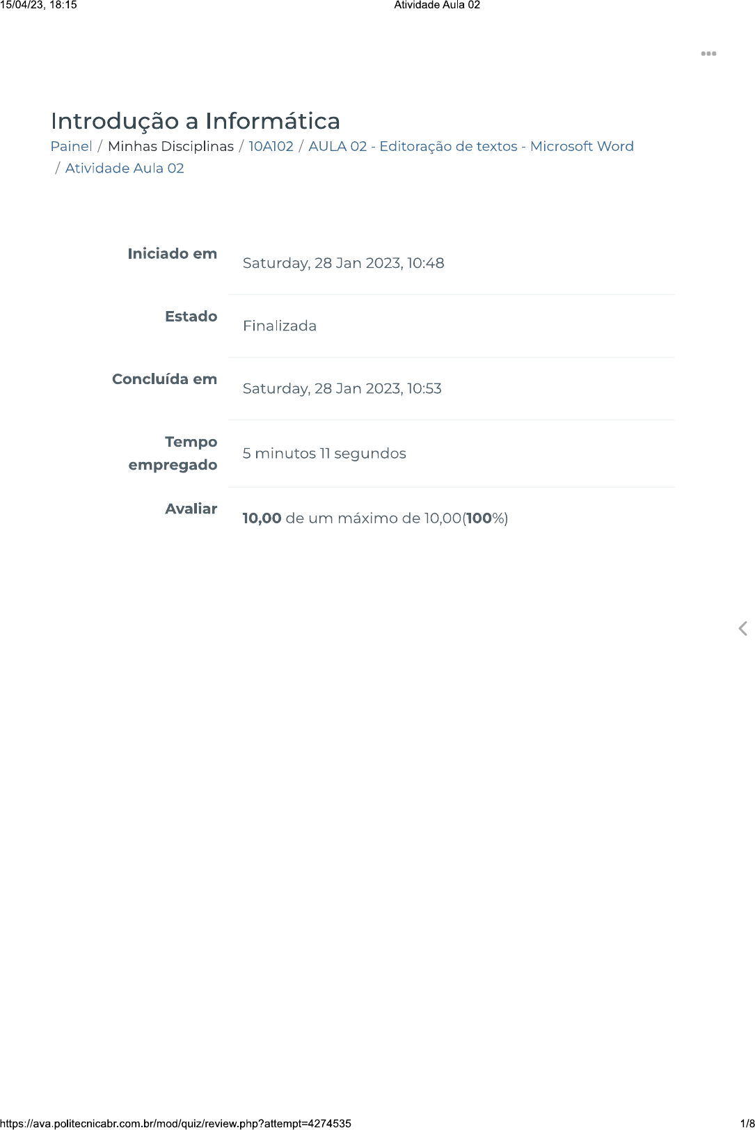 2ª etapa: Você deve responder a pergunta “Como funciona a disciplina Introdução à Informática/Informática Básica/Informática Instrumental (LIC-PED)...