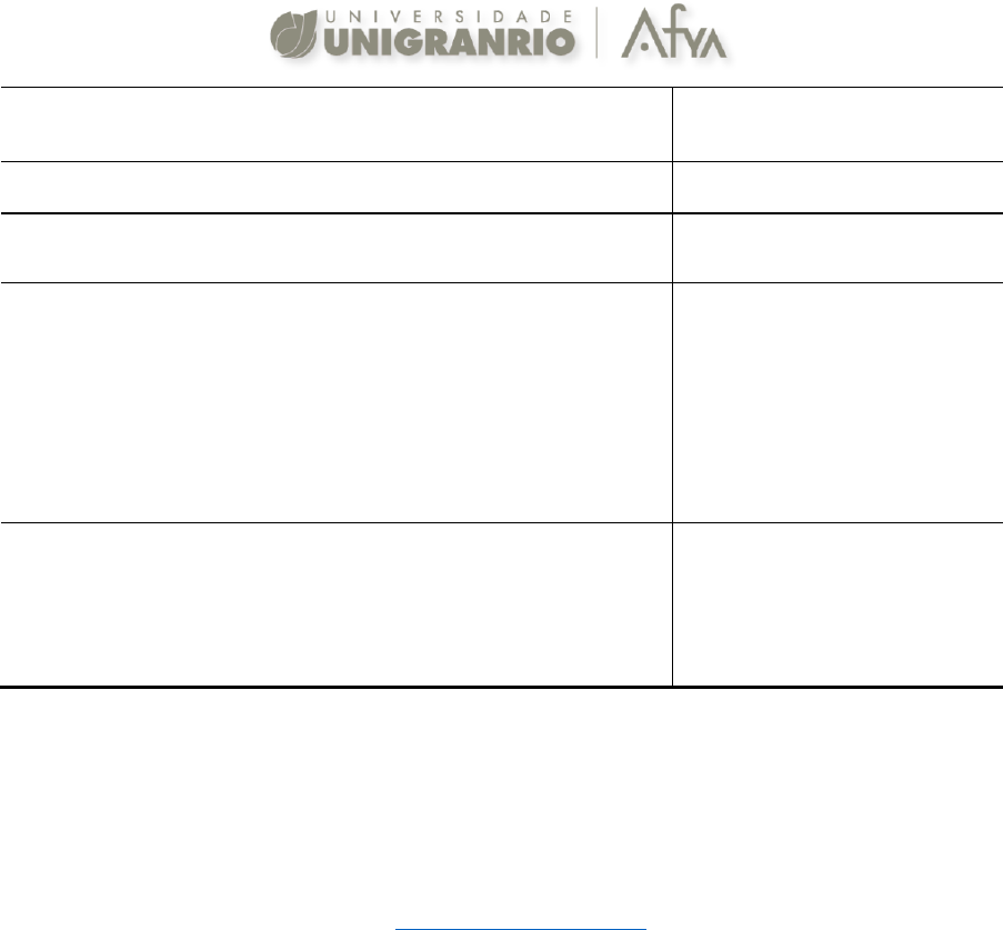 Curso: Nutrição Caxias / NI Valor da Avaliação: 20 pontos Disciplina – ANT002/NUT024 ( X ) AP1 ( ) AP3 Professora: Angela Pereira Accioly Prazo final da entrega: 12/04/23 Aluno(a): Ágatha Neves Chinellato Aline Carneiro Maia Ligiane das Neves Carvalho Silva Mayara Bastos de Oliveira Rodrigues dos Santos Núbia dos Santos Ferreira Reis Suelen vitória Albuquerque kroff Pereira Matrícula: 0073403 0073461 0073524 0073475 0073538 0073474 OBS: 1. Atividade grupo até seis (06) componentes 2. A atividade deve ser entregue pelo canvas em tarefas N1. 3. Entregue este documento preenchido. Nota: MAPA MENTAL Mapa mental, ou mapa da mente é um tipo de diagrama, sistematizado pelo psicólogo inglês Tony Buzan, voltado para a gestão de informações, de conhecimento e de capital intelectual; para a compreensão e solução de problemas; na memorização e aprendizado; na criação de manuais, livros e palestras; como ferramenta de brainstorming (tempestade de ideias); e no auxílio da gestão estratégica de uma empresa ou negócio. Os mapas mentais procuram representar, com o máximo de detalhes possíveis, o relacionamento conceitual existente entre informações que normalmente estão fragmentadas, difusas e pulverizadas no ambiente operacional ou corporativo. Trata-se de uma ferramenta para ilustrar ideias e conceitos, dar-lhes forma e contexto, traçar os relacionamentos de causa, efeito, simetria e/ou similaridade que existem entre elas e torná-las mais palpáveis e mensuráveis, sobre os quais se possa planejar ações e estratégias para alcançar objetivos específicos. Os desenhos feitos em um mapa mental partem de um único centro, a partir do qual são irradiadas as informações relacionadas. Podem ser elaborados por meio de canetas coloridas sobre folhas de papel ou um programa de computador dedicado. Pode ser aplicado a qualquer tarefa, atividade, profissional, ou lazer, de modo individual ou em https://pt.wikipedia.org/wiki/Gest%C3%A3o_da_informa%C3%A7%C3%A3o grupo para planejar qualquer tipo de evento. Trata- se de um método para planejamento e registro gráfico cada vez mais usado em todas as áreas de conhecimento humano. Mapas mentais são úteis não apenas para "fixar matéria", mas para registrar de forma inteligente e que permita revisões ultrarrápidas os assuntos compreendidos em forma de resumos, que sintetizam o entendimento das matérias. Buzan sugere as seguintes diretrizes para a criação de mapas mentais: • Iniciar no centro com uma imagem do assunto, usando pelo menos três cores. • Use imagens, símbolos, códigos e dimensões em todo o seu mapa mental. • Selecione as palavras-chave e as escreva usando letras minúsculas ou maiúsculas. • Coloque cada palavra/imagem sozinha e em sua própria linha. • As linhas devem estar conectadas a partir da imagem central. As linhas centrais são mais grossas, orgânicas e afinam-se à medida que irradiam para fora do centro. • Faça as linhas do mesmo comprimento que a palavra/imagem que suportam. • Use várias cores em todo o mapa mental, para a estimulação visual e também para codificar ou agrupar. • Desenvolva seu próprio estilo pessoal de mapeamento da mente. • Use ênfases e mostre associações no seu mapa mental. • Mantenha o mapa mental claro, usado hierarquia radial, ordem numérica ou contornos para agrupar ramos. ATIVIDADE Construa dois mapas mentais sobre: Um mapa de ligações químicas. Um mapa sobre forças intermoleculares. Itens que precisam fazer parte nos dois mapas mentais: a) Nome das ligações químicas b) Definições dos tipos de ligações químicas com exemplos c) Nome dos tipos forças intermoleculares com exemplos. d) Uma imagem relacionada