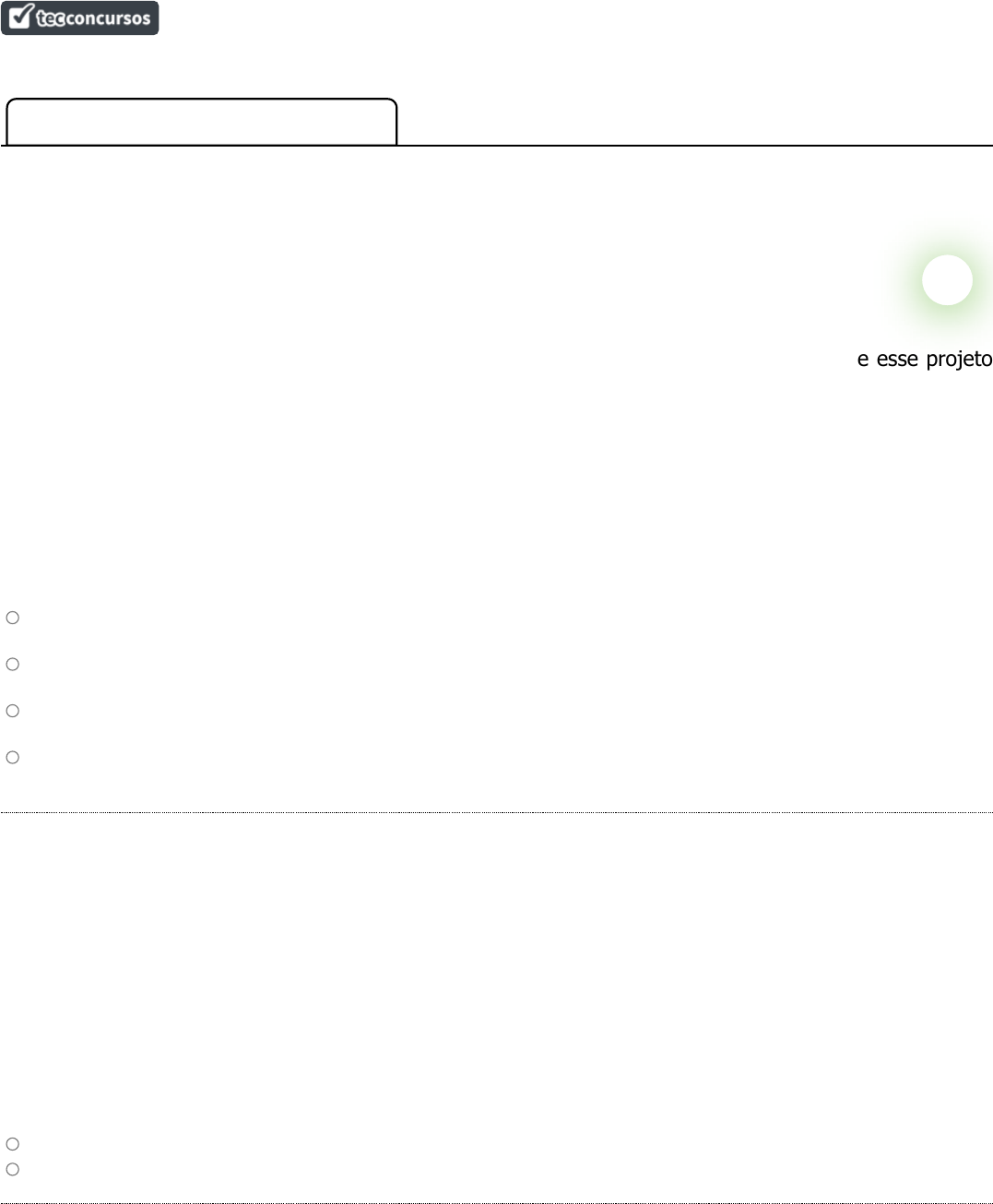 Gestão de Projetos para Agente (CRM MG) 2023 ( https://www.tecconcursos.com.br/s/Q2dKbI ) Ordenação: Por Matéria Gestão de Projetos (PMBOK) Questão 201: ADM&TEC - AAEd (C Leopoldina)/Pref Col. Leopoldina/2019 Assunto: Tópicos Mesclados de Áreas de Conhecimento (PMBOK) Leia as afirmativas a seguir: I. O caminho crítico do diagrama de rede do projeto determina a duração mínima que esse projeto pode ter. II. Utilizar senhas com elevada complexidade é uma boa prática de segurança na internet. Marque a alternativa CORRETA: a) As duas afirmativas são verdadeiras. b) A afirmativa I é verdadeira, e a II é falsa. c) A afirmativa II é verdadeira, e a I é falsa. d) As duas afirmativas são falsas. Esta questão possui comentário do professor no site. www.tecconcursos.com.br/questoes/1424692 Questão 202: CEBRASPE (CESPE) - Tec (SERPRO)/SERPRO/Programação e Controle de Serviços de Tecnologia da Informação/2013 Assunto: Noções Introdutórias de Administração ou Gestão de Projetos Considerando que a gerência de projetos é uma área de estudos importante relacionados aos serviços de tecnologia da informação (TI), julgue o item subsecutivo. Os projetos são fundamentais para o alcance das estratégias corporativas. Conforme definido em A Guide to the Project Management Body of Knowledge (PMBOK® Guide), 5th edition, PMI, 2012, um projeto é um esforço temporário empreendido para criar um produto, serviço ou um resultado exclusivo. Certo Errado Esta questão possui comentário do professor no site. www.tecconcursos.com.br/questoes/441380 Questão 203: CEBRASPE (CESPE) - TJ (TRE BA)/TRE BA/Apoio Especializado/Operação de Computadores/2010 Assunto: Conceitos Gerais de Áreas de Conhecimento e Grupos de Processo Julgue o item a seguir, acerca de gerenciamento de projetos e PMBOK. Os processos do grupo de iniciação descrevem os objetivos do projeto incluindo sua autorização, bem como a produção da declaração do escopo preliminar do projeto e, com base nesta, na sequência, o desenvolvimento do termo de abertura do projeto. Certo Errado Esta questão possui comentário do professor no site. www.tecconcursos.com.br/questoes/416548 Questão 204: CETREDE - Tec (UFC)/UFC/Tecnologia da Informação/2022 Assunto: Gerenciamento do Escopo do Projeto Sobre a declaração do escopo do projeto, de acordo com o PMBOK, 6ª edição, é correto afirmar que: a) a declaração do escopo do projeto é a descrição do escopo do projeto, principais entregas, premissas e restrições. b) a declaração do escopo do projeto não documenta o escopo do produto. c) as partes interessadas do projeto não conseguem ter um entendimento comum do escopo do projeto por meio da declaração do escopo do projeto. d) em termos de detalhes, o termo de abertura do projeto contém descrição detalhada dos elementos do escopo, enquanto a declaração do escopo do projeto contém informações de alto nível. Esta questão possui comentário do professor no site. www.tecconcursos.com.br/questoes/1925951 Questão 205: CEBRASPE (CESPE) - Tec (SERPRO)/SERPRO/Programação e Controle de Serviços de Tecnologia da Informação/2013 Assunto: Gerenciamento do Escopo do Projeto No que se refere à alocação de recursos relativos aos projetos organizacionais, julgue o item subsequente. Uma vez estabelecido o cronograma de alocação de recursos de um projeto, pode ocorrer que os recursos disponíveis a serem mobilizados ou alguma restrição contratual não atendam às quantidades exigidas para o cumprimento do projeto. Nesse caso, fazem-se necessárias certas alterações na estrutura analítica do projeto. Certo Errado Esta questão possui comentário do professor no site. www.tecconcursos.com.br/questoes/441381 Questão 206: ADM&TEC - AAEd (C Leopoldina)/Pref Col. Leopoldina/2019 Assunto: Gerenciamento do Cronograma (Tempo) do Projeto Leia as afirmativas a seguir: I. Um cronograma realista contribui favoravelmente para o gerenciamento do tempo em um projeto. II. A administração por objetivos permite aos dirigentes da entidade estabelecer os objetivos para cada departamento. Marque a alternativa CORRETA: a) As duas afirmativas são verdadeiras. b) A afirmativa I é verdadeira, e a II é falsa. c) A afirmativa II é verdadeira, e a I é falsa. d) As duas afirmativas são falsas. Esta questão possui comentário do professor no site. www.tecconcursos.com.br/questoes/1424690 Questão 207: CEBRASPE (CESPE) - TJ (TRE BA)/TRE BA/Apoio Especializado/Operação de Computadores/2010 Assunto: Gerenciamento do Cronograma (Tempo) do Projeto Julgue o item a seguir, acerca de gerenciamento de projetos e PMBOK. Para desenvolvimento do cronograma de um projeto, é necessário embasar-se, entre outros, nos resultados dos processos de descrição do escopo do projeto, de definição das atividades e do sequenciamento de atividades, sendo os dois últimos da área de conhecimento de gerenciamento de tempo do projeto. Certo Errado Esta questão possui comentário do professor no site. www.tecconcursos.com.br/questoes/416556 Questão 208: CEBRASPE (CESPE) - Tec (SERPRO)/SERPRO/Programação e Controle de Serviços de Tecnologia da Informação/2013 Assunto: Noções Introdutórias de Administração ou Gestão de Projetos Com relação ao processo de gerenciamento de projetos, julgue o próximo item. O gerenciamento de tempo em projetos é um fator crítico de sucesso que envolve a elaboração de um plano de gerenciamento do projeto, com o respectivo cronograma e as informações acerca do desempenho do trabalho. Certo Errado Esta questão possui comentário do professor no site. www.tecconcursos.com.br/questoes/441389 Questão 209: CEBRASPE (CESPE) - TJ (TRE BA)/TRE BA/Apoio Especializado/Operação de Computadores/2010 Assunto: Gerenciamento da Integração do Projeto Julgue o item a seguir, acerca de gerenciamento de projetos e PMBOK. Assim como no COBIT, o PMBOK descreve explicitamente um processo que visa gerenciar
