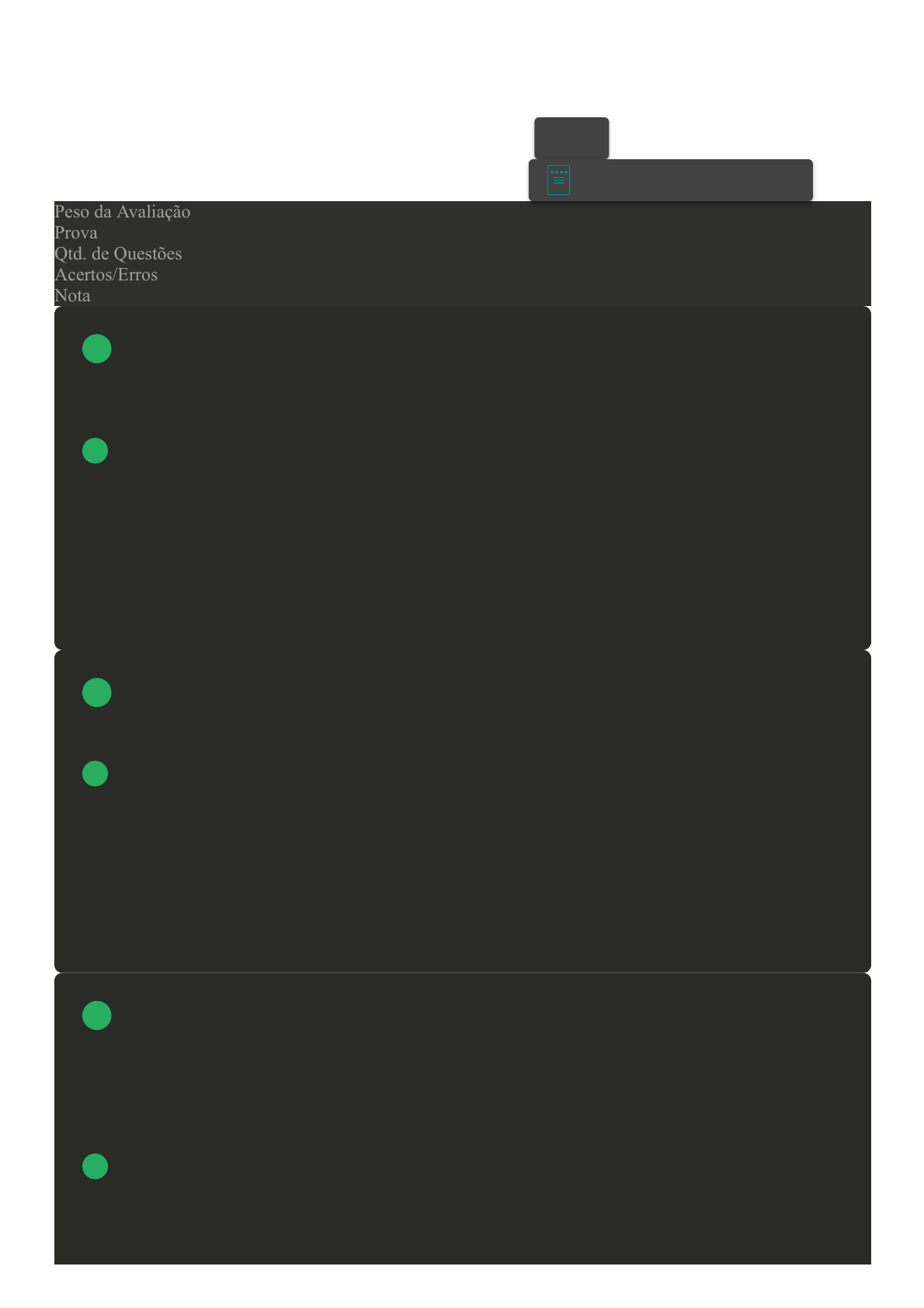 17/04/2023 22:28 Avaliação Final (Objetiva) - Individual about:blank 1/6 Prova Impressa GABARITO | Avaliação Final (Objetiva) - Individual (Cod.:745728) Peso da Avaliação 3,00 Prova 44819252 Qtd. de Questões 12 Acertos/Erros 12/0 Nota 10,00 As variáveis são qualitativas e quantitativas, mas falando especificamente da quantitativa, ainda podemos classificá-la em dois tipos. Quais são esses tipos? A Discreta e contínua. B Numeral e específica. C Transversal e direta. D Nominal e ordinal. As medidas de tendência têm como objetivo descrever a distribuição das variáveis observadas em um determinado estudo estatístico. Quanto à sua assimetria, uma distribuição pode ser classificada como: A Simétrica, assimétrica à direita e assimétrica à esquerda. B Simétrica, assimétrica e dissimétrica. C Simétrica positiva, simétrica negativa e dissimétrica. D Simétrica à direita, simétrica à esquerda e assimétrica. A referência sobre um conjunto de métodos e processos quantitativos que serve para estudar e medir os fenômenos coletivos, diz respeito à matemática aplicada. De que parte da matemática aplicada estamos falando? A Probabilidade estatística. B Estatística. C Dados estatísticos. D Probabilidade de dados VOLTAR A+ Alterar modo de visualização 1 2 3 17/04/2023 22:28 Avaliação Final (Objetiva) - Individual about:blank 2/6 D Probabilidade de dados. Um professor aplicou uma prova a seus quarenta alunos de Astronomia. Os resultados ele organizou em uma tabela que você pode visualizar nessa questão. Com base nos dados da tabela, classifique V para as sentenças verdadeiras e F para as falsas: ( ) A média das notas desses alunos é de 5,15. ( ) O desvio padrão das notas desses alunos é 0,45. ( ) O coeficiente de variação desses alunos é de 43%. Assinale a alternativa que apresenta a sequência CORRETA: A V - F - F. B F - F - V. C V - V - V. D V - F - V. O gráfico a seguir ilustra a quantidade de africanos que foram trazidos ao Brasil por causa do tráfico de escravos, entre 1800 e 1850. Com base nas informações, pode-se dizer que: 4 5 17/04/2023 22:28 Avaliação Final (Objetiva) - Individual about:blank 3/6 A O menor número de desembarque foi entre os anos de 1801 a 1830. B O limite superior da 5ª classe é de aproximadamente 200 mil escravos. C Entre 1816 e 1825, foram trazidos ao Brasil, aproximadamente, 370 mil escravos. D A amplitude de cada classe é de 4 meses. Observe a distribuição de frequências com intervalos de classes e classifique V para as sentenças verdadeiras e F para as falsas: A F - F - V - F 6 17/04/2023 22:28 Avaliação Final (Objetiva) - Individual about:blank 4/6 A F F V F. B V - V - F - V. C F - V - V - V. D V - F - F - V. Foram registradas as alturas, em metros, de 25 alunos de uma turma de Estatística. Os dados organizados estão na lista a seguir: 1,75 1,54 1,86 1,90 1,67 1,63 1,70 1,82 1,59 1,82 1,82 1,68 1,70 1,43 2,07 1,88 1,79 1,79 1,57 1,63 1,68 1,75 1,55 1,74 1,72. Qual é, aproximadamente, a altura média dos alunos dessa turma? A A altura média é aproximadamente 1,67 m. B A altura média é aproximadamente 1,81 m. C A altura média é aproximadamente 1,72 m. D A altura média é aproximadamente 1,91 m. O gráfico a seguir apresenta a participação dos atores pedagógicos, exceto acadêmicos, na última avaliação institucional organizada pela Comissão Própria de Avaliação da UNIASSELVI (CPA). Analise o gráfico a seguir e assinale a alternativa CORRETA: FONTE: Dados fictícios. A Essa distribuição tem desvio-padrão nulo. B A participação modal desses atores é de 938. 7 8 17/04/2023 22:28 Avaliação Final (Objetiva) - Individual about:blank 5/6 C A participação mediana desses atores é de 75. D A participação média desses atores é de 215,5. Sabe-se que a Comissão Própria de Avaliação (CPA) organiza a Avaliação Institucional da UNIASSELVI a partir de dimensões. Três das dez dimensões avaliadas são: Responsabilidade Social, Conhecimento sobre a CPA e suas ações e Política e Atendimento ao Estudante. Verificou-se no último ciclo avaliativo a média e o desvio padrão das dimensões citadas, obtendo os seguintes dados: A A dimensão Conhecimento sobre a CPA é mais homogênea. B A dimensão Política e Atendimento ao Estudante é mais homogênea. C A dimensão Responsabilidade Social é mais homogênea. D As três dimensões têm o mesmo grau de homogeneidade. Numa pesquisa para uma eleição presidencial, deseja-se garantir um erro amostral que não ultrapasse 2,5%. Qual deve ser o tamanho de uma amostra aleatória simples? A 2500 eleitores. B 1600 eleitores. C 1000 eleitores. D 1500 eleitores. (ENADE, 2009) Um laboratório está avaliando a compra de uma estufa de certa marca, que possui temperatura média de operação igual a 200 graus Fahrenheit, com desvio padrão de 10 graus Fahrenheit. Para elaborar um manual de operação, a temperatura deve ser medida em graus Celsius. Usando a expressão simplificada C = 0,6 F - 18 para converter graus Fahrenheit em graus Celsius, o Estatístico responsável encontrou que a temperatura média e o desvio padrão da temperatura de operação da estufa são, respectivamente: A 102 graus Celsius e 6 graus Celsius. 9 10 11 17/04/2023 22:28 Avaliação Final (Objetiva) - Individual about:blank 6/6 B 120 graus Celsius e 6 graus Celsius. C 120 graus Celsius e 36 graus Celsius. D 102 graus Celsius e 36 graus Celsius. (ENADE, 2015) Os gestores de uma empresa realizaram avaliação de duas alternativas de investimentos (A e B), com probabilidades de ocorrência para situações de mercado em recessão, em estabilidade e em expansão, respectivamente, de 25%, 50% e 25%. A tabela a seguir apresenta o retorno esperado em cada situação. A comparação das alternativas será feita com base na média ponderada dos retornos por suas probabilidades de ocorrência. Nesse caso, os retornos esperados para as alternativas A e B são, respectivamente,