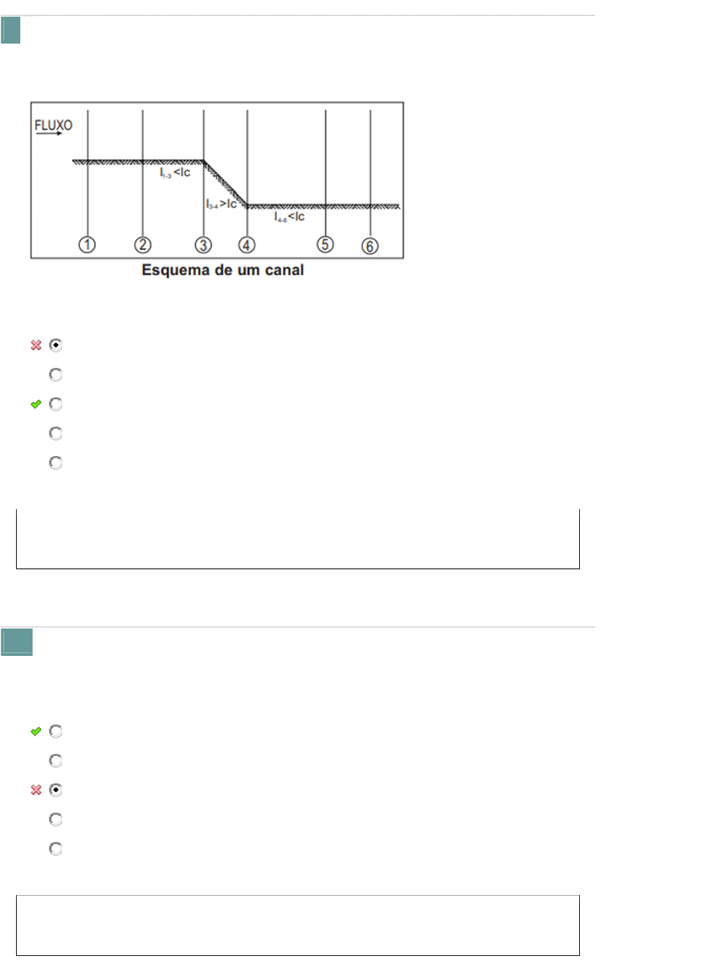 1. (INEA - Engenheiro Hidráulico - 2008) Considerando que a seção do canal mostrado na figura é constante, que os trechos 1-3 e 4-6 têm a mesma declividade (I) e que na seção 2 e na seção 5 ocorrem alturas normais (hn ), que tipo de escoamento ocorre em cada trecho (2-3; 3-4 e 4-5) da linha de água para a figura, sabendo-se que Ic indica a declividade crítica para o escoamento? Fonte: Autor. Ressalto lento, ressalto hidráulico regime lento. Regime rápido, ressalto hidráulico e regime lento. Ressalto lento, regimento rápido e ressalto hidráulico. Regime rápido, regimento lento e ressalto hidráulico. Ressalto hidráulico, regimento lento e regime rápido. Data Resp.: 18/04/2023 15:17:37 Explicação: A resposta certa é: Ressalto lento, regimento rápido e ressalto hidráulico. 2. (INEA - Engenheiro Hidráulico − 2008) Alterando-se a declividade de um canal (I), qual será a influência na altura de água no interior do canal (h)? (Suponha que o escoamento ocorra em regime permanente e uniforme, que v é velocidade no interior do canal e que As é a área molhada no canal.) Se I ↑ v ↑ As↓h ↓ Se I ↑ v ↑ As ↑h ↑ Se I ↑ v ↓ As↓h ↑ Se I ↑ v ↑ As↑h ↓ Se I ↑ v ↓ As↓h ↓ Data Resp.: 18/04/2023 15:17:40 Explicação: A resposta certa é: Se I ↑ v ↑ As↓h ↓ EM2120634ESCOAMENTO EM CONDUTOS FORÇADOS 3. (CEDAE - Engenheiro Civil - 2009) Em um sistema de abastecimento de água, a perda de carga por atrito nos condutos é determinada, em geral, por meio de fórmulas empíricas, que foram obtidas para condições experimentais específicas. De acordo com a fórmula de Hazen-Williams, as perdas de carga são tão maiores quanto: Maior for o diâmetro do tubo, menor for a vazão de escoamento e menor for o coeficiente de rugosidade. Menor for o diâmetro do tubo, menor for a vazão de escoamento e maior for o coeficiente de rugosidade. Maior for o diâmetro do tubo, maior for a vazão de escoamento e maior for o coeficiente de rugosidade. Menor for o diâmetro do tubo, maior for a vazão de escoamento e maior for o coeficiente de rugosidade. Menor for o diâmetro do tubo, maior for a vazão de escoamento e menor for o coeficiente de rugosidade. Data Resp.: 18/04/2023 15:17:43 Explicação: A resposta certa é: Menor for o diâmetro do tubo, maior for a vazão de escoamento e menor for o coeficiente de rugosidade. 4. Calcule a vazão total de uma rede de distribuição para um bairro com 8.000 habitantes, considerando consumo per capita de 160L/hab.dia, 18 horas de funcionamento diário e coeficiente de dia e hora de maior consumo de 1,25 e 1,50, respectivamente. 30L/s 20L/s 37L/s 25L/s 28L/s Data Resp.: 18/04/2023 15:17:47 Explicação: A resposta certa é: 37L/s EM2120637ESTRUTURAS HIDRÁULICAS E HIDROMETRIA 5. A respeito da classificação dos vertedouros, assinale a alternativa correta. I - Podem ser delgados se a espessura da parede for inferior a 2/3 da carga e espessa, caso ocorra o contrário. II - Podem ser de descarga livre ou submersa, sendo o segundo constituído por um nível de água de saída superior ao da soleira. III - Pode ser sem contrações laterais, se a largura da soleira for igual à largura do canal de chegada, e com contrações de laterais, se a largura da soleira foi superior à largura do canal de chegada. Somente I e II são verdadeiras. Todas as afirmativas estão corretas. Somente a II é verdadeira. Somente a I é verdadeira. Somente II e III são verdadeiras. Data Resp.: 18/04/2023 15:17:51 Explicação: A resposta certa é: Somente I e II são verdadeiras. 6. Determine a perda e carga de um orifício de diâmetro de 10 cm, descarga de 3,8 m/s e carga de 3,6 m. 1,38 m 2,86 m 1,15 m 1,57 m 2,04 m Data Resp.: 18/04/2023 15:17:54 Explicação: A resposta certa é: 2,86 m EM2120635BOMBEAMENTO DE FLUÍDOS 7. As curvas de carga versus vazão de duas tubulações (1 e 2) ramificadas logo após ao bocal de recalque de uma bomba são exibidas na figura posterior, incluindo a curva obtida pela soma das vazões para cada carga (1+2). Fonte: Gabriel de Carvalho Nascimento e Elson Antonio do Nascimento Qual é a diferença entre a vazão bombeada para as duas tubulações e a vazão operada quando um registro, localizado no início da tubulação 2, está fechado? 0,34 m³/s 1,05 m³/s 0,53 m³/s 0,20 m³/s 1,50 m³/s Data Resp.: 18/04/2023 15:17:58 Explicação: A resposta certa é: 0,34 m³/s