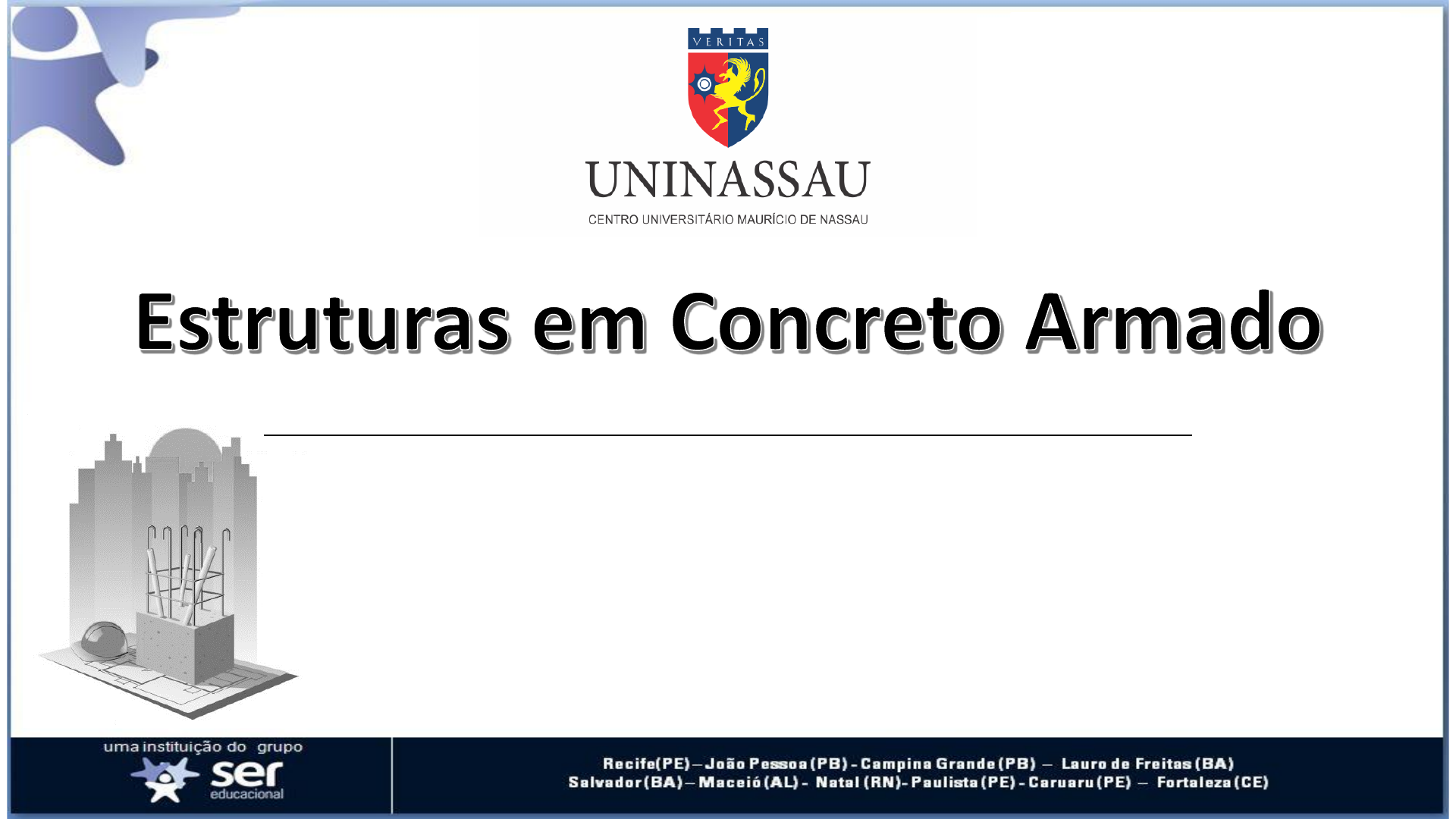 AULA 1 – Bases do dimensionamento e Pilar Intermediário Prof. Pabllo da Silva Araujo Eng. Civil, Me. Campina Grande-PB Fevereiro de 2023 CURSO DE BACHARELADO EM ENGENHARIA CIVIL 1 2 Pilares 3 4 5 6 7 8 9 10 11 12 13 14 15 16 ÁREA DE INFLUÊNCIA ▪ Processo geométrico para estimar as cargas verticais (força normal) nos pilares. ▪ A cada pilar está associada uma área de influência (Ai), ou seja, “quinhão de carga”. ▪ É necessário conhecer (ter idéia) da carga vertical por unidade de área. 17 18 CARREGAMENTO DOS PILARES 19 20 21 CARGA CORRIGIDA 22 23 24 25 26 27 28 29 30 31 32 33 34 35 36 37 38 39 40 41 42 43 44 45 46 47 Pilar Intermediário 48 49 50 51 52 53 (1º) Baseado nas informações a seguir, faça o dimensionamento do pilar P5 (20 cm x 20 cm). Dados: fck= 25 MPa, aço CA-50 e CA-60, cobrimento de 3,0 cm, biapoiado, comprimento de 3,0 m. Obs.: Realizar o cálculo da carga de serviço (Fk). 54 55 56 57 (2º) Baseado nas informações seguir, faça o dimensionamento do pilar intermediário. Dados: fck= 20 MPa, aço CA-50 e CA-60, cobrimento de 3,0 cm, biapoiado, comprimento de 4,0 m, Fk= 1200 kN. 58 (3º) Baseado nas informações seguir, faça o dimensionamento do pilar intermediário. Dados: fck= 20 MPa, aço CA-50 e CA-60, cobrimento de 2,5 cm, comprimento equivalente de 4,0 m, Fk= 857 kN. 59 (4º) Dimensione a armadura do pilar intermediário. Dados: fck= 25 MPa, aço CA- 50 e CA-60, cobrimento de 2,5 cm, comprimento equivalente de 2,80 m, Fk= 220 kN. 60 (5º) Dimensionar um pilar intermediário em concreto armado com seção retangular: hy=30cm e hx= 40cm. Dados: fck= 25 MPa, aço CA-50 e CA-60, cobrimento de 2,5 cm, comprimento equivalente de 3,0 m, Fk= 1000 kN. (6º) Dimensionar um pilar intermediário em concreto armado com seção retangular: hy=25cm e hx= 50cm. Dados: fck= 25 MPa, aço CA-50 e CA-60, cobrimento de 3,0 cm, comprimento equivalente de 3,0 m, Fk= 1250 kN. 61 (7º) Dimensionar um pilar intermediário em concreto armado com seção retangular: hy=30cm e hx= 60cm. Dados: fck= 40 MPa, aço CA-50 e CA-60, cobrimento de 2,5 cm, comprimento equivalente de 2,8 m, Fk= 3000 kN. (8º) Dimensionar um pilar intermediário em concreto armado com seção retangular: hy=30cm e hx= 60cm. Dados: fck= 40 MPa, aço CA-50 e CA-60, cobrimento de 3,0 cm, comprimento equivalente de 3,0 m, Fk= 2000 kN. Dúvidas??? Prof. Pabllo da Silva Araujo – Eng. Civil, Me. 040109036@prof.uninassau.edu.br 62 Slide 1: Estruturas em Concreto Armado AULA 1 – Bases do dimensionamento e Pilar Intermediário Slide 2 Slide 3 Slide 4 Slide 5 Slide 6 Slide 7 Slide 8 Slide 9 Slide 10 Slide 11 Slide 12 Slide 13 Slide 14 Slide 15 Slide 16 Slide 17 Slide 18 Slide 19 Slide 20 Slide 21 Slide 22 Slide 23 Slide 24 Slide 25 Slide 26 Slide 27 Slide 28 Slide 29 Slide 30 Slide 31 Slide 32 Slide 33 Slide 34 Slide 35 Slide 36 Slide 37 Slide 38 Slide 39 Slide 40 Slide 41 Slide 42 Slide 43 Slide 44 Slide 45 Slide 46 Slide 47 Slide 48 Slide 49 Slide 50 Slide 51 Slide 52 Slide 53 Slide 54 Slide 55 Slide 56 Slide 57 Slide 58 Slide 59 Slide 60 Slide 61 Slide 62