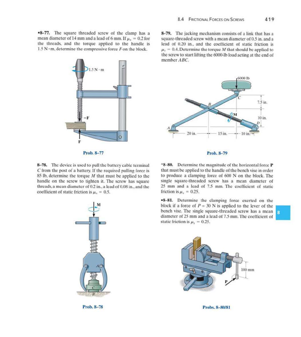' 8411. Detcrmlnc Ihe clamping force exerted on Ihe