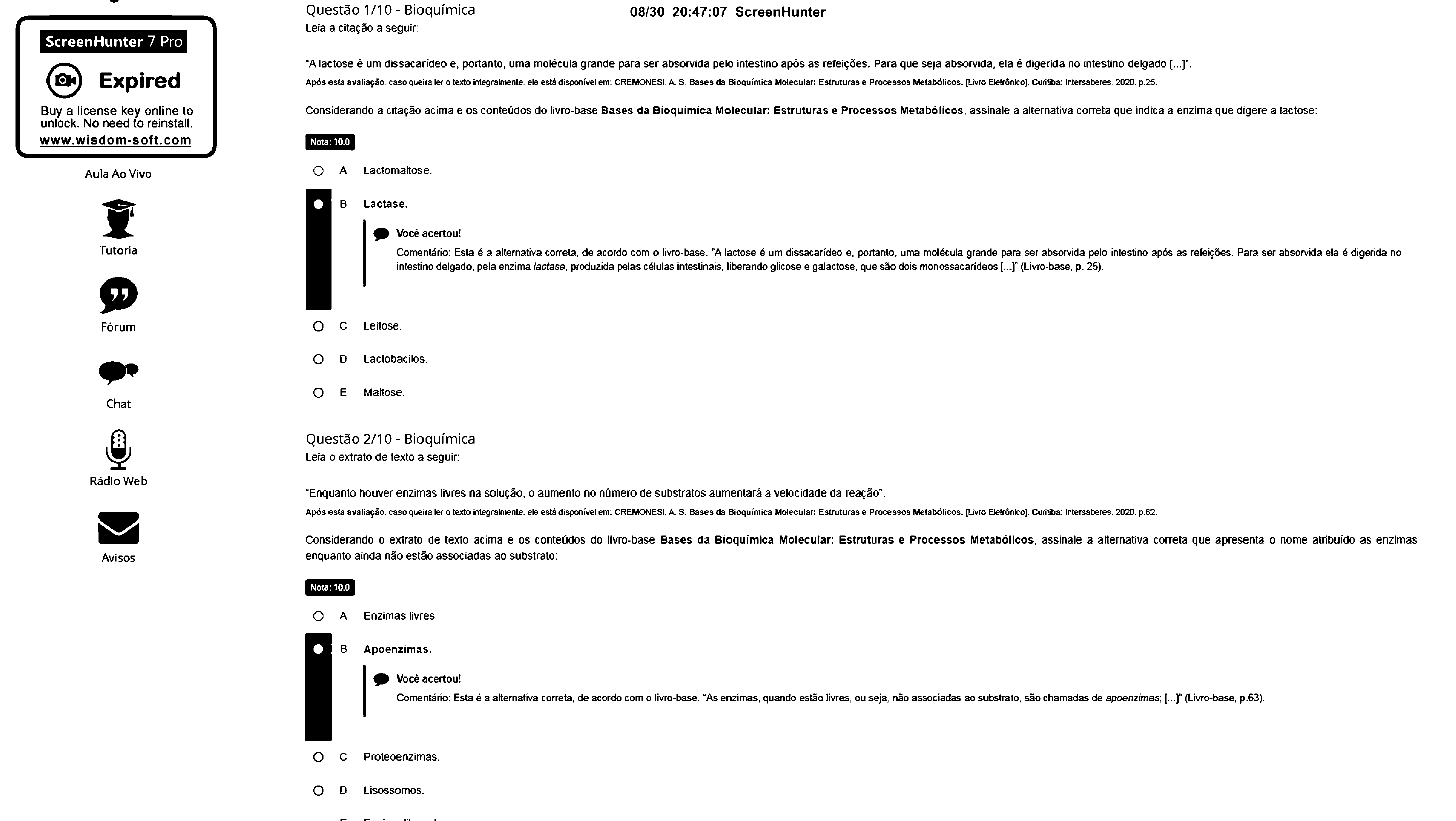 Após esta avaliação, caso queira ler o texto integralmente, ele está disponível em: CREMONESI, A. S. Bases da Bioquímica M olecular: Estruturas e Processos Metabólicos. [Livro Eletrônico]. Curitiba: Intersaberes. 2020. p.149.