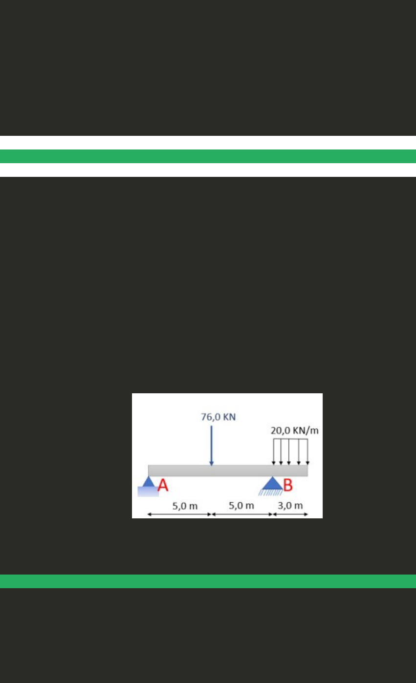 1 Os problemas de equilíbrio de forças, sejam eles no plano, são resolvidos usando um procedimento específico. Sobre esse procedimento, assinale a alternativa CORRETA: A Diagrama de corpo livre e equações de desequilíbrio. B Diagrama de corpo livre e equações de equilíbrio. C Diagrama de corpo preso e equações de equilíbrio. D Diagrama de corpo livre e teoremas de equilíbrio. 2As funções de cisalhamento e momento podem ser representadas em gráficos denominados diagramas de força cortante e momento fletor, em que as direções positivas indicam que a carga distribuída age para baixo na viga e a força cortante interna provoca uma rotação em sentido horário (HIBBELER, 2011). Para a viga anexa, determine o valor do Momento fletor no apoio direito (B) e assinale a alternativa CORRETA: FONTE: HIBBELER, R. C. Mecânica para engenharia. 12. ed. São Paulo: Pcarson Prentict Hall, 2011. A -85,0 KN.m. B -60,0 KN.m. C -90,0 KN.m. D -80,0 KN.m. 3Dois sistemas de forças mecanicamente equivalentes aplicados em um mesmo sólido rígido levam-no a apresentar o mesmo movimento, e esta é a origem do termo mecanicamente equivalentes. Para a viga anexa, analise as sentenças a seguir: I- A força resultante no sistema equivalente de forças é de 120 KN. II- O momento resultante no ponto A é de 1985,625 KN.m. III- A posição da força resultante é de 4,34 metros em relação ao ponto A. Assinale a alternativa CORRETA: A As sentenças I e II estão corretas. B Somente a sentença II está correta. C Somente a sentença I está correta. D As sentenças I e III estão corretas. 4É possível afirmar que dois sistemas de forças (S e S') são equivalentes quando suas reduções em um mesmo ponto genérico A levam aos mesmos esforços solicitantes. Com relação ao sistema equivalente de forças, classifique V para as sentenças verdadeiras e F para as falsas: ( ) A força resultante no sistema equivalente de forças é de 85 KN. ( ) O momento resultante no ponto A é de 720,625 KN.m. ( ) A posição da força resultante é de 4,34 metros em relação ao ponto A. ( ) É considerado sistema equivalente quando dois sistemas de esforços aplicados em um mesmo corpo rígido o levam a apresentar o mesmo movimento. Assinale a alternativa CORRETA: A F - V - V - V. B F - F - V - V. C V - V - V - F. D V - F - F - V. 5 Esse método de solução se baseia no fato de que o sistema original e o reduzido sejam mecanicamente equivalentes, possibilitando que a determinação do ponto de redução procurada seja feita indiretamente, de modo a responder à pergunta que se faz: Qual deve ser o valor da posição x do ponto Q em que os dois sistemas se tornam equivalentes mecanicamente? A qual método o exposto se refere? A Método direto. B Método tentativa e erros. C Método tentativa. D Método indireto. 6 É possível observar que o momento de uma força em relação a um ponto possui a dimensão do produto de uma força por uma distância, sendo mensuradas de forma específica. Sobre essa mensuração, assinale a alternativa CORRETA: A N.n, kgf.cm², tf.m². B N.n, kgf.cm, tf.m. C N.n, kgf.m², tf.m. D N.n, kgf.cm², tf.m. 7 É possível afirmar que dois sistemas de forças são equivalentes quando suas reduções em um mesmo ponto genérico A levam aos mesmos esforços solicitantes. Sobre esses sitemas de forças, assinale a alternativa CORRETA: A S' e S". B S e S’. C S° e S". D S e S. 8A partir do conceito de vínculos e considerando as formas de ligação entre as barras (rígida ou articulada), é possível determinar o grau de estaticidade de uma estrutura. Para a estrutura do pórtico anexo, classifique V para as sentenças verdadeiras e F para as falsas: ( ) A estrutura possui grau 2 de estaticidade. ( ) Trata-se de uma estrutura hipostática. ( ) A estrutura possui dois apoios de 2º gênero e um apoio de 3º gênero. ( ) A rótula, na posição em que está localizada no pórtico, fornece duas equações. Assinale a alternativa que apresenta a sequência CORRETA: A V - V - F - F. B F - V - V - F. C V - F - V - V. D F - F - V - F. 9 Ao realizar essa tarefa se faz necessário considerar a deformabilidade do material que a constitui, e para ser possível então iniciar esse estudo, deve-se estar com o conceito de tensão bem consolidado. A que tarefa o exposto se refere? A Projetar uma estrutura. B Projeção. C Projetar uma diagonal. D Projetar uma superfície. 10 A teoria da análise estrutural é baseada no princípio da superposição, o qual trata que o deslocamento total ou cargas internas em um ponto de uma estrutura sujeita a várias cargas externas podem ser determinadas pela soma dos deslocamentos ou cargas internas causadas por cada uma das cargas externas atuantes separadamente. Para que apenas essa declaração é válida? A Material com comportamento elástico-linear, ou seja, obedece à Lei de Hooke e, dessa maneira, a carga será proporcional ao deslocamento.A geometria da estrutura não pode passar por mudança significativa quando as cargas são aplicadas, ou seja, podendo haver grandes deslocamentos da estrutura de forma a mudar a orientação e posição das cargas. B Material com comportamento não elástico-linear, ou seja, obedece à Lei de Hooke e, dessa maneira, a carga será proporcional ao deslocamento. A geometria da estrutura não pode passar por mudança significativa quando as cargas são aplicadas, ou seja, não pode haver grandes deslocamentos da estrutura de forma a mudar a orientação e posição das cargas. C Material com comportamento elástico-linear, ou seja, obedece à Lei de Hooke e, dessa maneira, a carga será desproporcional ao deslocamento. A geometria da estrutura não pode passar por mudança significativa quando as cargas são aplicadas, ou seja, não pode haver grandes deslocamentos da estrutura de forma a mudar a orientação e posição das cargas. D Material com comportamento elástico-linear, ou seja, obedece à Lei de Hooke e, dessa man
