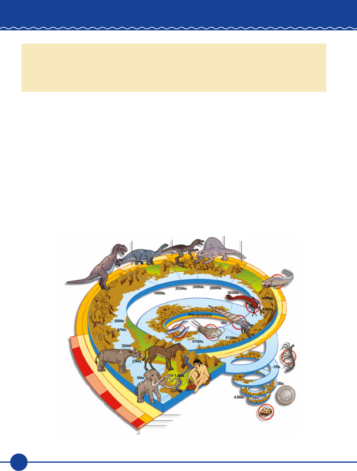 116 Unidade III Unidade III Após o contato com as noções sobre o tempo geológico e da Paleontologia, é possível uma investigação mais proveitosa da história da vida na Terra. Até onde a ciência conhece, a vida é característica exclusiva da Terra e, portanto, falar em “vida na Terra” seria redundante. No entanto, serve um pouco como provocação. Nesse livro- texto, ficarão evidentes os caminhos seguidos pela vida em nosso planeta, ao longo de todo o tempo geológico. Sabendo da imensidão do universo e que nele existem muitos outros Sóis e Terras, talvez seja um bom exercício de raciocínio pensar que o que aconteceu aqui pode ter se repetido em muitos outros lugares. A história da vida será dividida, inicialmente, em seus dois Éons, os quais, embora tenham muita diferença de duração, correspondem a uma divisão importante para diferenciar as condições em que a vida se manifestava em cada um deles. Essa história é bastante longa e cheia de personagens e pode ser ilustrada de diversas maneiras nos livros e em outros materiais. Alguns representam como espirais, outros como retas, com desenhos, imagens, pequenos textos, números, enfim, são muitas as possibilidades que têm como objetivos principais resumir os pontos principais e permitir a fixação das informações mais facilmente (SALGADO-LABOURIAU, 2001; FAIRCHILD, 2009; CARVALHO, 2011). Holocênico Pleistocênico Piocênico Mocênico Olgocênico Eocênico Paleocênico Cretáceo M ez oz oi co Jurássico Triássico Permiano Carbonífero Devoniano Siluriano Or do vic ian o Cambr iano Terciário Cenozoico Pale ozo ico Época PeríodoQuaternário Era Rochas conhecidas mais antigas Fósseis mais antigos Evolução das células com núcleo Figura 94 – Espiral representativa da história da vida 117 GEOLOGIA E PALEONTOLOGIA A seguir poderemos relacionar a história do planeta à do universo, permitindo observar a associação entre Big Bang e o surgimento da Terra. Inclui, também, uma projeção sobre o fim do Sol e, consequentemente, da Terra. Origem dos eucariontes Seres multicelulares Seres Humanos Fim da biosfera Morte do sol Hoje - 13,7 bilhões de anosHoje - 13,7 bilhões de anos Humanidade-FuturoHumanidade-Futuro 10 bilhões de anos10 bilhões de anos Evolução da vida na TerraEvolução da vida na Terra Origem da vida Origem do Sistema Solar Aceleração expansão Origem dos dinossauros Figura 95 – Representação da evolução do universo desde o Big Bang, com destaque especial para a evolução da Terra até um futuro bastante distante 7 ÉON PRÉ-CAMBRIANO Éon Pré-cambriano é a divisão do tempo geológico corresponde a 85% de toda a história da Terra, sendo considerado desde seu início, há aproximadamente 4,5 bilhões de anos, até 540 milhões de anos atrás, perfazendo um total de quase 4 bilhões de anos de história. O início corresponde à época de formação e resfriamento superficial do planeta. Será que os seres vivos já existiam nessa época? Quando a vida surgiu, afinal? A resposta para essa última pergunta não existe. Nem ao certo sabemos se ela se originou em nosso planeta. Sobre os temas que cercam a vida primitiva, é preciso ter muito cuidado com o que se lê, o que se escuta e o que se fala. Conforme será tratado adiante, o fóssil mais antigo conhecido tem cerca de 3,5 bilhões de anos. Ele pode ser considerado o momento da origem da vida? Provavelmente, não. Trata-se apenas do registro mais antigo que o homem foi capaz de encontrar. Representa, entretanto, um limite. Nos mostra que, em algum momento entre 4,5 e 3,5 bilhões de anos, a vida surgiu no planeta. Quando e como foi são duas perguntas que dificilmente terão uma resposta definitiva. Mas existem teorias. 7.1 O surgimento da vida na Terra Atualmente existem duas correntes mais proeminentes que tentam explicar essa questão. Uma delas trabalha com elementos terrestres e a outra, com extraterrestres. Ao final das explicações, será possível, inclusive, considerar que elas não se excluem. 118 Unidade III A Teoria da Abiogênese conjectura que a vida teve origem na Terra, tendo surgido a partir de seus próprios componentes inorgânicos. É comum a ideia de que a vida surgiu na água, e ela parece estar certa (SALGADO-LABOURIAU, 2001; FAIRCHILD, 2009; CARVALHO, 2011). Contudo, alguns aspectos devem ser analisados, tais como: • os primeiros organismos foram formas de vida simples que evoluíram ao longo do tempo de maneira lenta e gradual, segundo o darwinismo; • a composição da atmosfera era muito diferente do que é hoje em dia, afetando as características da água; • a crosta terrestre havia se constituído há pouco e não se comportava como atualmente; • alguns processos, embora ainda ocorram, aconteciam com intensidade diferente, como chuvas e queda de meteoros. Como a origem da vida ocorreu não se sabe ao certo. São muitas variáveis a serem consideradas e nenhum registro aparente do processo. Mas muitos estudos tentaram avançar nesse conhecimento. Um dos mais famosos foi realizado no começo da década de 1950, que ficou conhecido como experimento de Urey-Miller, dando origem à Teoria da Sopa ou caldo primordial (SALGADO-LABOURIAU, 2001; FAIRCHILD, 2009; CARVALHO, 2011). Água em ebulição Corrente elétrica Condensador CH4 NH3 H2O H2 Faísca Figura 96 – Experimentos sobre a origem da vida. A) Thomas Miller, um dos autores dos experimentos. B) Esquema representativo do experimento realizado Os cientistas americanos Stanley Miller e Harold Urey desenvolveram um experimento cujo objetivo principal era observar se substâncias hoje produzidas por seres vivos poderiam ser feitas a partir do que se acreditava ser as condições da Terra no início de sua existência. Para isso, usaram tubos de vidro estéreis contendo uma mistura de água, amônia, metano e hidrogênio, que foi aquecida para que evaporasse. Enquanto o vapor de água e outros gases se moviam, pelos tubos, eles eram est