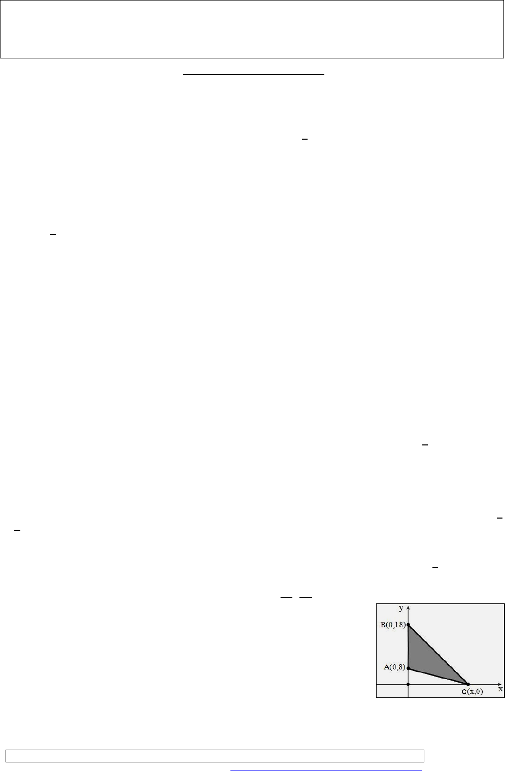 COLÉGIO TÉCNICO DE TERESINA – CTT/UFPI 3ª SÉRIE – MATEMÁTICA – PROF. PACHECO ALUNO (A): ________________________________________ TURMA: _______ Geometria Analítica – Pontos 1. (FUVEST) No plano cartesiano, os pontos (1,0) e (-1,0) são vértices de um quadrado cujo centro é a origem. Qual a área do quadrado? a) 1 b) 2 c) 3 d) 4 e) 5 2. (UFSC) Dados os pontos A(-1,-1), B(5, -7) e C(x,2), determine x sabendo que o ponto C é equidistante dos pontos A e B. a) 8 b) 6 c) 15 d) 12 e) 7 3. (PUC) Sendo A(3, 1), B(4, -4) e C(-2, 2) os vértices de um triângulo, então esse triângulo é: a) retângulo e não isósceles b) retângulo e isósceles c) equilátero d) isósceles e não retângulo 4. (UECE) Se o triângulo de vértices nos pontos P1(0, 0), P2(3, 1) e P3(2, k) é retângulo, com ângulo reto em P2, então k é: a) 3 b) 4 c) 5 d) 8 e) 10 5. (UFJF) Se (2,1), (3,3) e (6,2) são os pontos médios dos lados de um triangulo, quais são os seus vértices? a) (-1,2),(5,0),(7,4) b) (2,2), (2,0), (4,4) c) (1,1), (3,1), (5,5) d) (3,1), (1,1), (3,5) 6. (PUC) Sendo A(-2,-1), B(2,3), C(2,6) e D(-2,2) vértices de um paralelogramo, então o ponto de intersecção de suas diagonais é: a) (-2,1/2) b) (0,5/2) c) (0,7/2) d) (2,5/2) e) (2,7/2) 7. (UFMG) Os pontos (0,0), (1,3) e (10,0) são vértices de um retângulo. O quarto vértice é o ponto: a) (9,-3) b) (9,-2) c) (9,-1) d) (8,-2) e) (8,-1) 8. (ULBRA) As coordenadas do baricentro G do triângulo ABC onde M(-1/2,3/2), N(1,3/2) e P(1/2,0) são os pontos médios doso lados do triângulo ABC: a) (1/2,2/3) b) (1/3,1) c) (1/2,3/2) d) (1/4,2) e) (2/3,1) 9. (PUC) Os pontos (1,3), (2,7) e (4,k) do plano cartesiano estão alinhados se e somente se k for igual a: a) 11 b) 12 c) 13 d) 14 e) 15 10. (FMU) Os pontos A(k, 0), B(1, - 2) e C(3, 2) são vértices de um triângulo. Então: a) k = - 1 b) k = - 2 c) k = 2 d) k - 2 e) k 2 11. (UFRS) Os pontos A(- 1,2), B(3,1) e C(a,b) são colineares. Para que C esteja sobre o eixo de abscissas, a e b devem ser, respectivamente, iguais a: a) 0 e 4 b) 0 e 7 c) 4 e 0 d) 7 e 0 e) 0 e 0 12. (UFRS) Se A(0,0), B(2,y), C(- 4,2y) e a área do triangulo ABC é igual a 8, então o valor de y é: a) 2 b) 4 c) 6 d) 8 e) 10 13. (OSEC) Na figura, o triângulo ABC é isósceles, com AB AC . Calcule a área do triângulo ABC. a) 54 b) 50 c) 30 d) 72 14. (FESP) Se A(0,3), B(1,1) C(3,0), D(2,2), então a área da região plana limitada pelo quadrilátero ABCD é: a) 3 b) 4 c) 5 d) 6 e) 7 Respostas: 1) b; 2) a; 3) d; 4) b; 5) a; 6) b; 7) a; 8) b; 9) e; 10) e; 11) d; 12) a; 13) c; 14) a. Disponível em: http://professorwaltertadeu.mat.br/exerciciosEM2013.html Acesso em: 04 jun 2020 http://professorwaltertadeu.mat.br/exerciciosEM2013.html