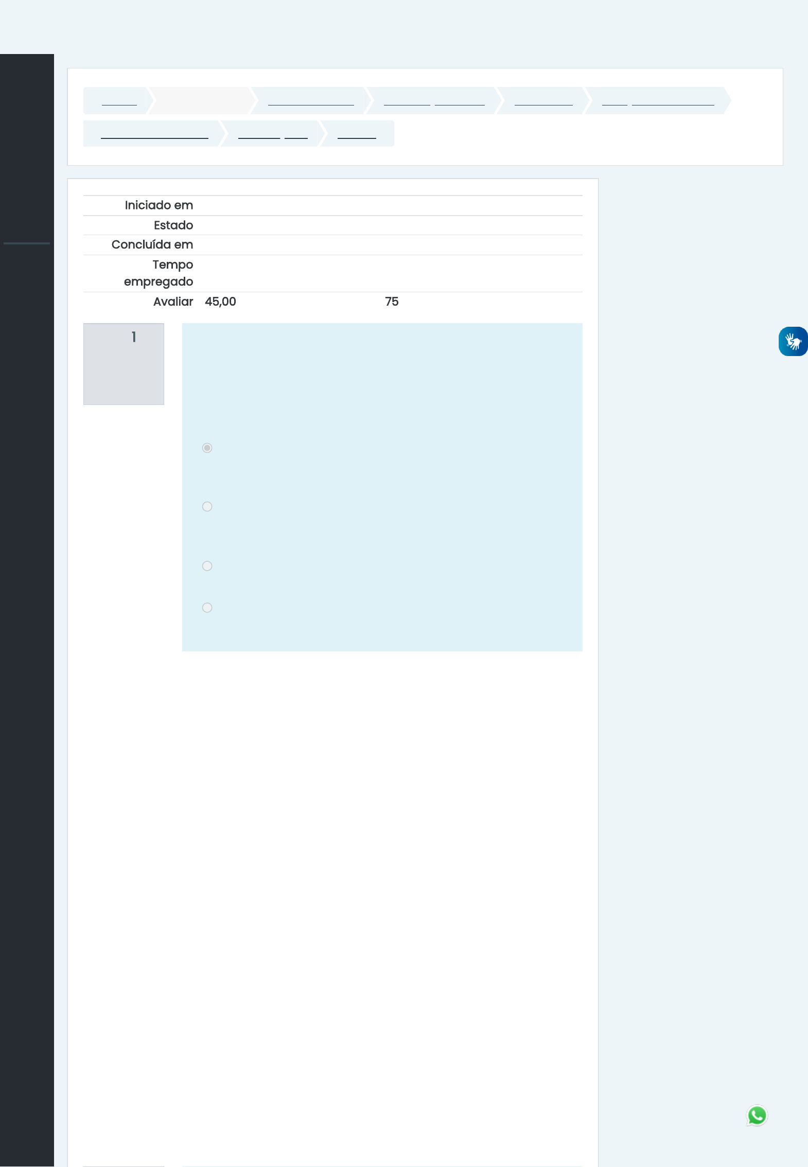 07/04/2023, 21:38 PROVA https://ava.funec.br/mod/quiz/review.php?attempt=419808&cmid=13067 1/12 Painel Meus cursos CURSOS FUNEC Graduação - EAD Aluno EAD JUNÇÕES DE TURMA Grandes Culturas I AVALIAÇÕES PROVA Questão 1 Completo Atingiu 3,00 de 3,00 Iniciado em Friday, 7 Apr 2023, 20:00 Estado Finalizada Concluída em Friday, 7 Apr 2023, 21:38 Tempo empregado 1 hora 37 minutos Avaliar 45,00 de um máximo de 60,00(75%) Basicamente, existem duas formas para a criação de uma maior variabilidade genética em mandioca: introdução de cultivares de outras regiões ou melhoramento genético. Busca-se, com isso, cultivares que: Escolha uma opção: a. sejam tolerantes às principais doenças, principalmente bacteriose, antracnose, super alongamento e podridão radicular. b. apresentem raízes tuberosas mal direcionadas que facilitem a colheita, principalmente a passagem de afofadores. c. possuam elevados teores de amido e matéria seca desde o segundo ciclo. d. produzam manivas que apresentem elevado vigor e boa brotação, além de pouca resistência à armazenagem. https://ava.funec.br/my/ https://ava.funec.br/course/index.php?categoryid=10 https://ava.funec.br/course/index.php?categoryid=17 https://ava.funec.br/course/index.php?categoryid=19 https://ava.funec.br/course/index.php?categoryid=77 https://ava.funec.br/course/view.php?id=800 https://ava.funec.br/course/view.php?id=800#section-6 https://ava.funec.br/mod/quiz/view.php?id=13067 javascript:void(0); https://ava.funec.br/user/index.php?id=800 https://ava.funec.br/badges/view.php?type=2&id=800 https://ava.funec.br/admin/tool/lp/coursecompetencies.php?courseid=800 https://ava.funec.br/grade/report/index.php?id=800 https://ava.funec.br/my/ https://ava.funec.br/?redirect=0 https://ava.funec.br/calendar/view.php?view=month&course=800 javascript:void(0); https://ava.funec.br/user/files.php https://ava.funec.br/course/view.php?id=870 https://ava.funec.br/course/view.php?id=757 https://ava.funec.br/course/view.php?id=322 https://ava.funec.br/course/view.php?id=865 https://ava.funec.br/course/view.php?id=1181 https://ava.funec.br/course/view.php?id=921 https://ava.funec.br/course/view.php?id=928 https://ava.funec.br/course/view.php?id=1636 https://ava.funec.br/course/view.php?id=1644 https://ava.funec.br/course/view.php?id=530 https://ava.funec.br/my/ 07/04/2023, 21:38 PROVA https://ava.funec.br/mod/quiz/review.php?attempt=419808&cmid=13067 2/12 Questão 2 Completo Atingiu 3,00 de 3,00 Questão 3 Completo Atingiu 3,00 de 3,00 Responda F (falso) ou V (verdadeiro), corrigindo as frases falsas. ( ) O Brasil e o maior produtor mundial de feijão-comum e também e o maior consumidor dessa leguminosa. ( ) As primeiras plantas cultivadas de feijão foram encontradas na Europa (Roma) por volta de 7000 A.c. ( ) No estado de Minas Gerais as áreas plantas com feijão reduziram, mais isso não reduziu produção do estado por ano, pois ocorreu uma melhora no nível tecnológico adotado pelos produtores. ( ) A planta do feijão é formada por órgãos que são designados como raiz, caule, folha e semente. ( ) A função da micrópila e permitir a penetração de água nas vagens. ( ) As baixas temperaturas quando ocorrem após a semeadura da semente de feijão no solo, podem impedir, reduzir ou atrasar a germinação das mesmas e a emergência das plântulas e, consequentemente, baixa a produtividade. ( ) O excesso de água no solo, ou seja, solos encharcados, promovem um grande crescimento no sistema radicular das plantas, favorecendo o desenvolvimento das mesmas. ( ) Alta umidade relativa do ar associada a baixas temperaturas aumenta a demanda de água pela planta, que passa a transpirar mais. Escolha uma opção: Escolha uma opção: a. VFVFFVFF b. VVFFVVFF c. FFVVVFVF d. FVFVVFFV Na cultura do Feijoeiro Comum há uma divisão das pragas, esta divisão está relacionada ao local de dano na cultura. Marque a alternativa em que todas as pragas são consideradas como das sementes, plântulas e raízes na cultura do feijão. Escolha uma opção: a. Lagarta do cartucho (Spodoptera frugiperda), Lagarta da soja (Anticarsia gemmatalis), Tamanduá-da-soja (Sternechus subsignatus) e Lagartas das vagens (Thecla jebus). b. Lagarta rosca (Agrotis ipsilon), Lagartas das vagens (Thecla jebus), Minadora (Liriomyza sp.) e Lagarta das folhas (Omiodes indicata). c. Lagarta rosca (Agrotis ipsilon), Larvas de vaquinhas (Diabrotica speciosa), Lagarta elasmo (Elasmopalpus lignosellus) e Gorgulho do solo (Teratopactus nodicollis). d. Lagarta da soja (Anticarsia gemmatalis), Lagarta elasmo (Elasmopalpus lignosellus), Broca das axilas (Epinotia aporema) e Gorgulho do solo (Teratopactus nodicollis). javascript:void(0); https://ava.funec.br/user/index.php?id=800 https://ava.funec.br/badges/view.php?type=2&id=800 https://ava.funec.br/admin/tool/lp/coursecompetencies.php?courseid=800 https://ava.funec.br/grade/report/index.php?id=800 https://ava.funec.br/my/ https://ava.funec.br/?redirect=0 https://ava.funec.br/calendar/view.php?view=month&course=800 javascript:void(0); https://ava.funec.br/user/files.php https://ava.funec.br/course/view.php?id=870 https://ava.funec.br/course/view.php?id=757 https://ava.funec.br/course/view.php?id=322 https://ava.funec.br/course/view.php?id=865 https://ava.funec.br/course/view.php?id=1181 https://ava.funec.br/course/view.php?id=921 https://ava.funec.br/course/view.php?id=928 https://ava.funec.br/course/view.php?id=1636 https://ava.funec.br/course/view.php?id=1644 https://ava.funec.br/course/view.php?id=530 https://ava.funec.br/my/ 07/04/2023, 21:38 PROVA https://ava.funec.br/mod/quiz/review.php?attempt=419808&cmid=13067 3/12 Questão 4 Completo Atingiu 3,00 de 3,00 Questão 5 Completo Atingiu 3,00 de 3,00 A podridão das raízes é a doença mais limitante da produção de mandioca na Região Nordeste, afeta severamente a cultura da mandioca implantada sob condições de solos dos Tabuleiros Costeiros, particularmente em áreas formadas pela co