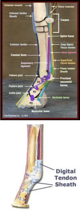 AULA 23/08 Afecções tendíneas e sinoviais Processos tendíneos Anatomia: o Em amarelo: tendão flexor digital superficial o Em azul claro: tendão flexor digital profundo o Bainha digital flexora: estrutura sinovial que engloba esses tendões o Roxo: Ligamento suspensório- tem dois ramos de inserção, um em cada sesamoide proximal e depois ele emite um ramo extensor o Embora a tendinite flexora possa afetar os membros posteriores, esse processo é mais comum nos membros anteriores o Podemos ver a bainha digital flexora- é uma bainha sinovial, está presente no terço distal da canela até o terço médio da quartela aproximadamente, por dentro da bainhas passam os tendões flexores Atividades atléticas: o Com menor e maior grau de impacto e de demanda elástica: corrida, hipismo, adestramento, etc o Esses exercícios vão acometer estruturas diferentes o Animais de corrida tem maior incidência de tendinite no tendão flexor superficial Tendinite: o É um processo traumático que ocorre quando a carga recebida excede o limite elástico do tendão solicitado o Em equinos atletas podemos classificar as tendinites: flexoras em tendinites extratecais e intratecais o Lesões extratecais: ocorrem na região onde não existe a bainha sinovial, ou seja, no terço médio da canela o Lesões intratecais: ocorrem dentro da bainha no terço distal da canela- como tem envolvimento de uma estrutura sinovial, recebe o nome de tendosinovite o Na tendinite flexora extratecal: o tendão afetado é o tendão flexor digital superficial e não há envolvimento de estruturas sinoviais- tendinite ( exercício em alta velocidade) o Na tendinite flexora intratecal: o tendão afetado é o tendão flexor digital profundo e a bainha digital flexora está envolvida, dai o nome tendosinovite flexora o Em qualquer um dos casos, o exercício de alto impacto (alta velocidade), a fadiga e a falta de condicionamento são fatores de risco importantes Tendinite flexora- Tendão flexor digital superficial- clínica e diagnóstico: processo extratecal o Principais manifestações clínicas: apoio com o membro semi- flexionado(aliviar a tensão), a claudicação em diversos graus e o aumento de volume na face palmar da canela (face posterior), geralmente em seu terço médio- geralmente ocorre após um episodio de exercício, corrida o As setas vermelhas apontam o aumento de volume característico da tendinite do tendão flexor digital superficial. Raramente vê em membros posteriores por questão de biomecânica o Clínica e diagnóstico: Além da inspeção com o animal parado e em movimento, que revela a presença do aumento de volume e da claudicação. O exame clínico inclui a palpação profunda dos tendões flexores em busca de resposta dolorosa e o teste de flexão do membro distal (boleto) , que deve exacerbar a claudicação Achados no caso da tendinite: dor a palpação do local afetado (no caso terço médio da canela), a resposta do animal pode ser difícil de interpretar, existem animais que reagem sempre que aplica pressão em qualquer lugar. O que pode ser feito é: fazemos a manobra no membro que não é suspeito, se suspeita que é na mão direita, primeiro examina a mão esquerda e depois faz o mesmo na mão direita, para conseguirmos ver o que é realmente dor e o que é reação de defesa da manipulação Flexionar o boleto e depois boleto e carpo o Diagnóstico complementar: Quando o exame clínico deixar duvida quanto à sede da dor, podemos realizar o bloqueio anestésico dos nervos palmar e metacarpiano palmar na região proximal da canela, idealmente devemos anestesiar primeiro o casco e o boleto, garantindo a localização da dor na região da canela (bloqueio 4 pontos altos) Ultrassonografia: o Passo final para o diagnóstico é o exame ultrassonográfico, a fim de confirmar a localização da lesão o Esse exame permite a identificação da estrutura lesada e a determinação do grau (% área) e da extensão da lesão (cm) o Imagens abaixo de seção transversal e longitudinal das estruturas palmares da canela o Nota-se a diferença de ecogenicidade do tendão flexor digital superficial, destacado em azul indicando ruptura de fibras o O segundo mais globoso é o profundo, ligamento acessório desse tendão que só está presente no terço superior da canela e o ligamento suspensório o Quanto menos denso for o tecido, mais escuro ele será o Tendão com perda de fibras- edema o Exemplo de achado ultrassonográfico clássico da tendinite flexora, que é a lesão circunscrita ou em ‘’core’’ semelhante a um vacúolo o Quando vê em corte transversal, por exemplo, conseguimos estimar a porcentagem de área que foi perdida e isso da uma ideia do tempo que vai demorar em preencher o Na longitudinal também vemos a perda de fibra, mas ela nos da outro dado que é: qual é a extensão da lesão, geralmente medimos em centímetros abaixo do acessório do carpo (ex: começa em 3cm e termina em 10cm) o Cicatrização no tendão é lenta, pois ele é mal irrigado o Os primeiros 30 dias de tratamento para o preenchimento da lesão, após os primeiros 30 dias se repete a primeira ultrassonografia, a lesão já estando preenchida começa-se o protocolo fisioterapêutico com o incremento gradativo o Aumento gradativo com 20 minutos, passa para 30, com 60 dias repete a ultrassonografia, se estiver melhorando repete com 90 dias e se o animal não apresentou recidiva neste período, vamos aos poucos reintroduzindo atividade atlética Tratamento: o Envolve o controle da inflamação para que ocorra a reconstituição no tecido lesado o E se divide em métodos: Químicos Físicos Biológicos o Que tem por objetivo ajudar ou contribuir para que o tecido que se forma, que vai preencher a lesão, ou seja, o tecido que vai de fato ser depositado ali seja um tecido com a mesma característica do tecido original o Temos a entreposição de tecido, mas é um colágeno de qualidade inferior, é um tecido cicatr